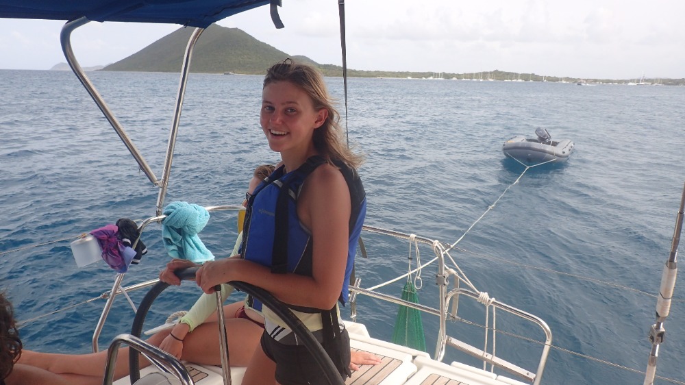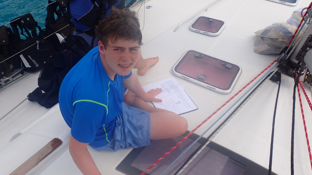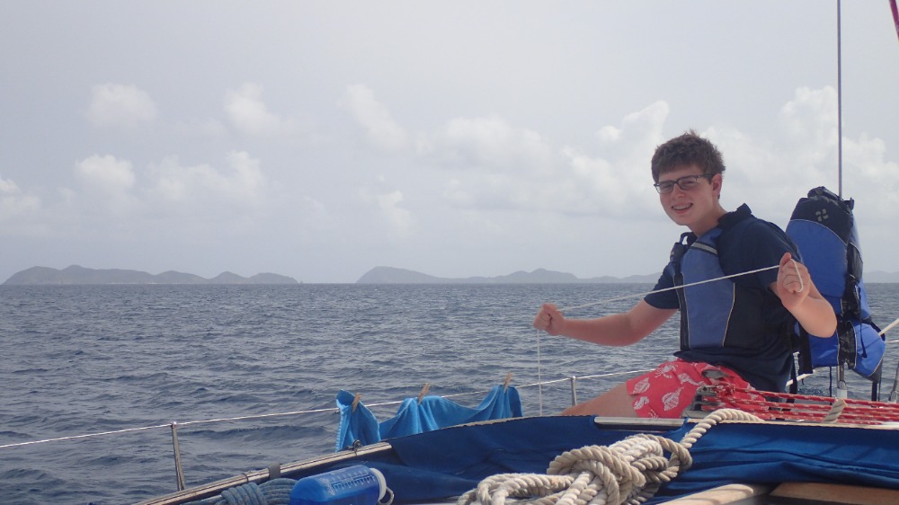 Today started when everybody woke up and went outside we realized that we were in a completely different place than the night before. We found ourselves at a scuba site called the Chimneys. Since our boat was the first to be scuba diving, by 8am we found ourselves 40ft under water with a belly full of cereal. In the dive I saw many cool fish, various types of coral reef, and a huge lobster. After the dive everyone on Sailing Curls did some boat appreciation and cleaned the boat inside out using a jumbo box of Clorox wipes and a gallon of bleach. Once we got our boat clean we were rewarded with a movie day. We watched non other than the legendary Monsters, Inc. Right as the movie finished we went up for a yummy lunch of quesadillas and salsa. Once lunch ended the boat set off again to a small island called Marina Cay. We got to a small island called Marina Cay. We got to have some time with our phones to call our parents and also explore the only store on the island. We later headed back to the boat for a delicious dinner of cheese tortellini and tomato sauce with Gwen’s famous garlic bread. Once dinner and clean up ended everyone on our boat headed to Marina Cay to join with the whole program for an eye-opening Lifeworks forum. Afterwards everyone’s eyelids were drooping because they were so tired, so we headed back to the boat to go to bed. What a day!