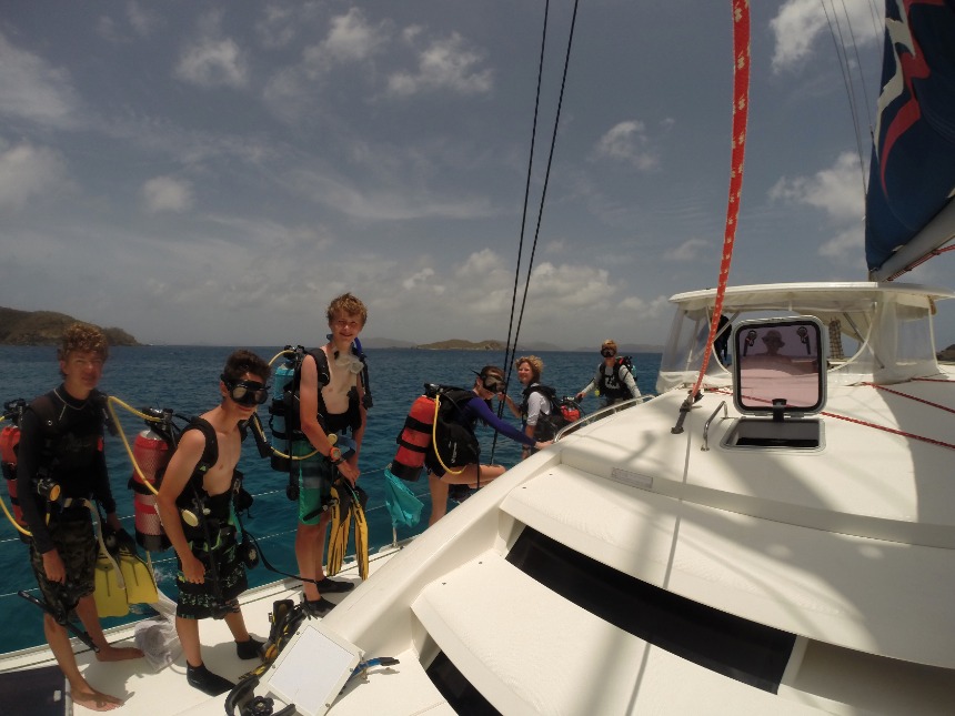 This morning we slept in after movie night watching Ferris Bueller’s Day Off. There were for pancakes for breakfast, and we rolled out a little after 8:00. The jib sail was put out, and we reached Mario after three tacks. Everyone went diving, except Alex, who sat surface. The Dolphins did a fish survey on their research dive with Taylor while the Neptunes and Rescue guys had a fun dive with Cat. There was a footrace underwater across a sandy patch without fins, and supposedly mortal combat-although it was mostly exaggerated. There were Crasins and Goldfish for lunch along with sandwiches with toppings of the crew’s choice. Immediately after lunch, we left for Trellis Bay and had freshwater showers underway. Everyone wandered around town for about an hour and got their phones back. After getting back to the boat, the chefs and Alex started to prepare dinner. And after eating garlic bread and pasta, we cleaned up and headed for Lifeworks.