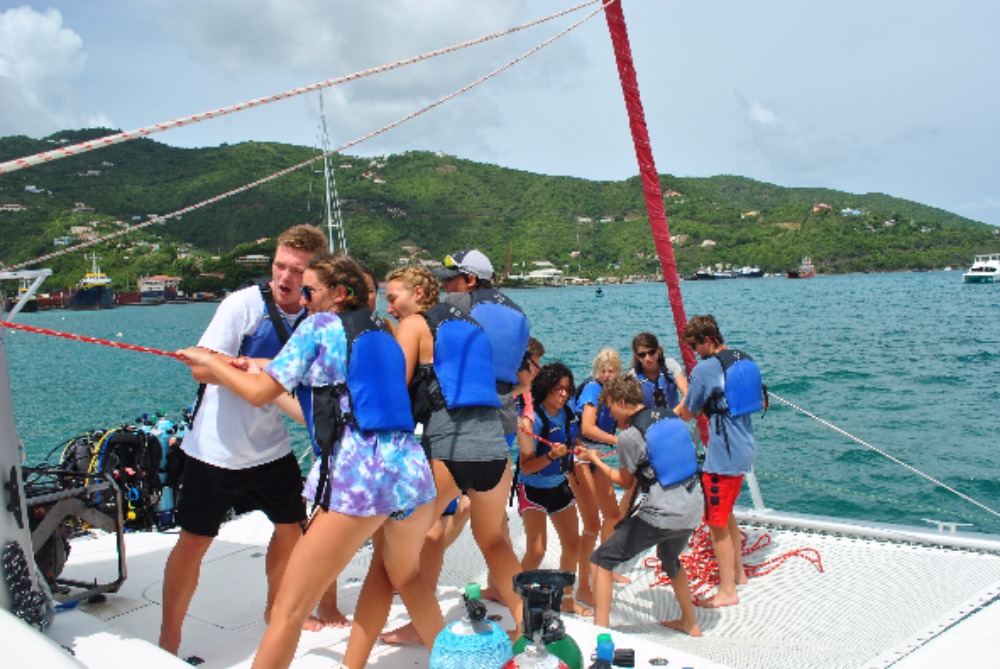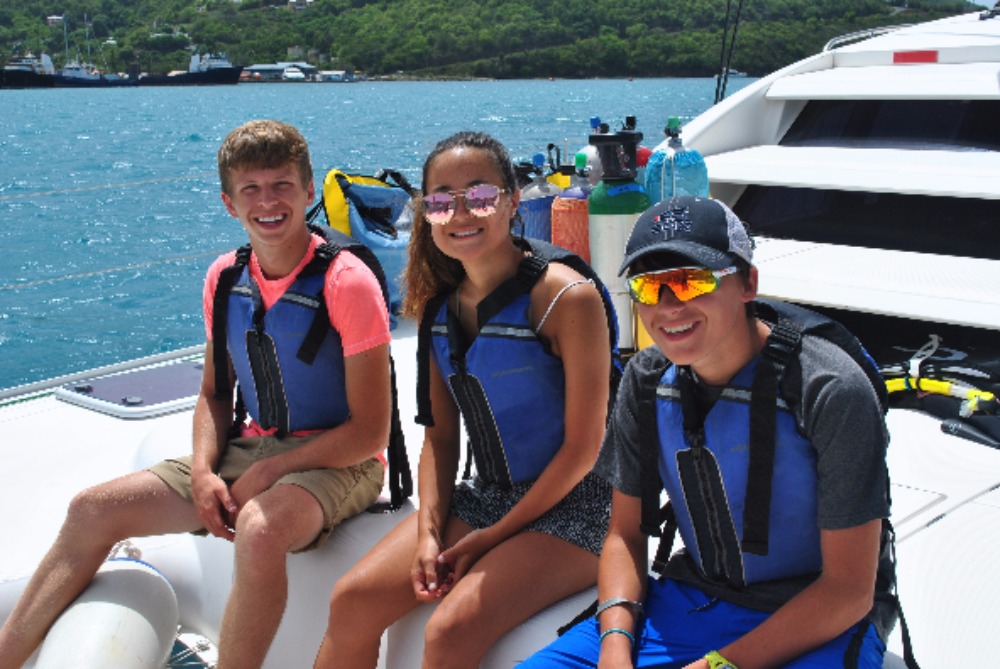 The sun shined bright as the boat woke up from a great sleep. We had cereal, bagels and yogurt as we quickly got underway towards Road Town. Once at Road Town, the boat all gathered to go buy groceries and shop for clothes and such. I was able to get myself a hardy 3-layered grilled cheese. When we got back to our boat, we listened to music and played card games, and Doug and I won twice. The boat then set sail for about a few hours towards Mario’s Reef on Ginger Island. I was able to start on my book Elena let me borrow, and for anybody that is curious it is called “Miss Peregrines Home for Peculiar Children”. I highly recommend it. When we got to our dive site, we set up our dive gear and briefed our dive. The Neptune’s were able to do their second boat dive where they navigated their own dive all by themselves. On the other hand, the dolphins worked on their research doing various data collections underwater. When we got out of the water, we motored over to Marina Cay where we are about to have a delicious dinner and a gigantic lifeworks meeting, which will take about an hour and a half. This has been your boy Jackson, keeping it classy in the Caribbean Sea.