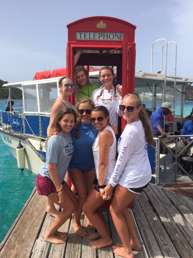 We woke up at 6:45 and were in the water by 8 working on performing “demonstration quality” skills and in water rescues. We picked up anchor at 10 o’clock to head to port. On the way there Cha Cha surprised us with a stop at The Dogs for a dive. We stopped to pick up tanks, but due to a compressor malfunction there were no enough tanks available. Fortunately we are all “Surprisingly” good snorkelers and were able to still see the beautiful reef below. The next stop we made was to Trellis Bay to grab lunch and stock up on essentials like candy, soda, and cold water. After an hour of shore time enjoying the WiFi we headed to Marina Cay to fill up our fresh water tanks and top off the fuel in the dinghies. We dropped anchor and spent some time with Simon doing scuba theory review. Later, Katja and I headed out on a dinghy where I learned to drive while also picking up our coffee percolator and some new food. For dinner we had tortellini. During cleanup Jordan fell into the water while getting into a dinghy to help pick up fresh linens.