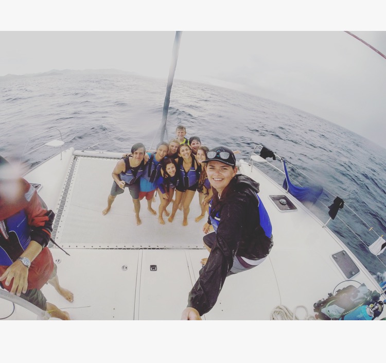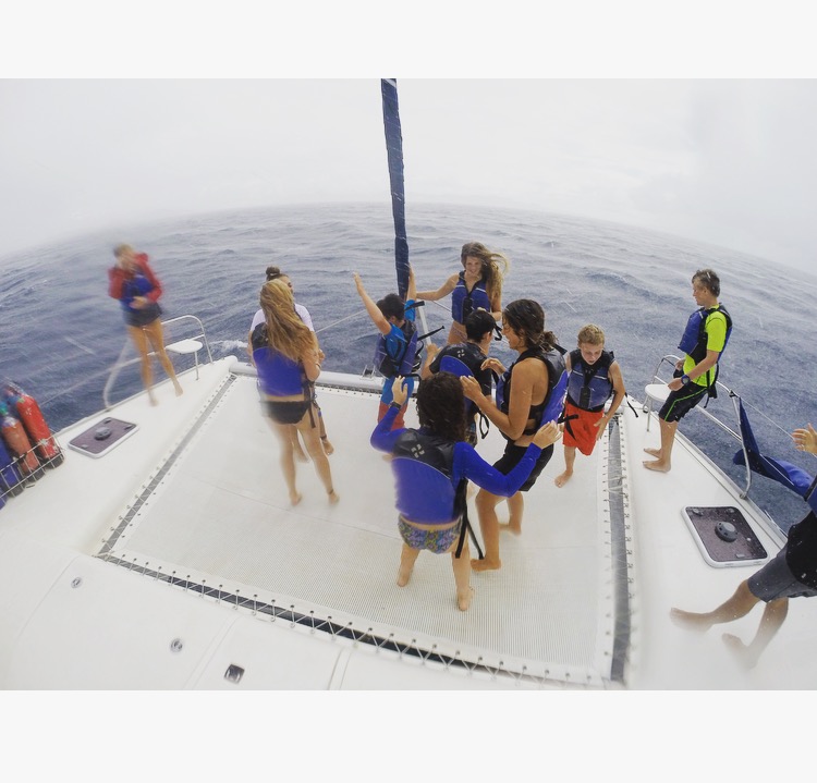 The day began in Marina Cay with a delicious pancake breakfast. As soon as we finished cleaning, the crew had a dance party while waiting to depart. Finally, we grabbed our PFD’s and rushed to the bow to raise the sails It was a long sail; the islands slowly disappeared from our view until we couldn’t see anything but ocean. Choppy seas awaited us at our dive site, the wreck of the Chikuzen. The visibility wasn’t great, but the dive was still really cool and we saw large schools of fish. Once we surfaced, sails were opened and the journey to Musk Melon Bay began. It was a stormy sail with several rainy dance parties. Once we arrived, a dinner of chili and rice was served. During cleanup, the dive gear was set up in preparation for our third night dive, this time we’re going alone! Anyway, I have to go get my BCD on for tonight’s dive, but today was another great day in the BVI’s!