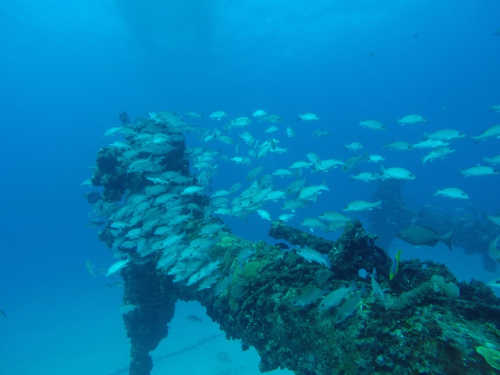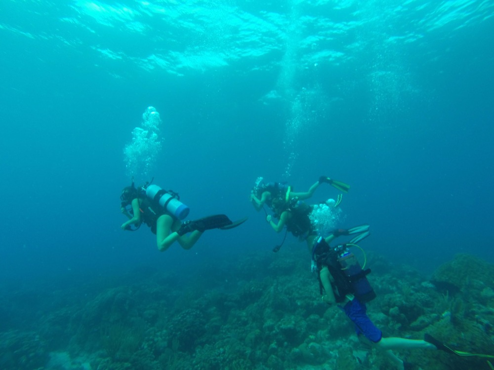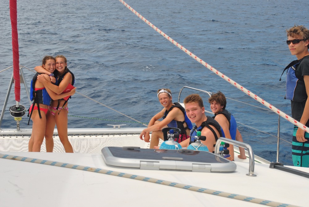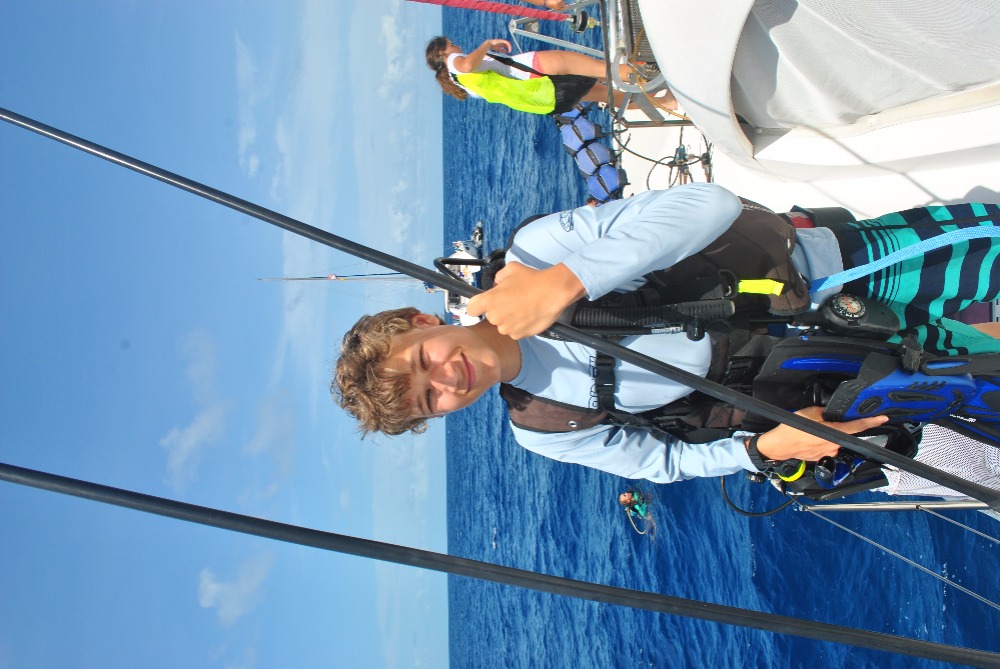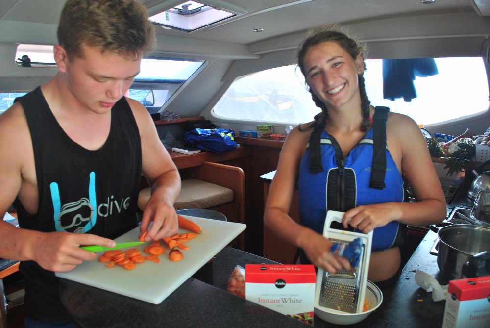 The chefs woke up extra early this morning to make pancakes. They gave the first batch to the staff before they went to their staff meeting. We ate the rest of them with Nutella and syrup. Then we cleaned the whole boat before the staff got back. They were really happy about this. After some free time we headed out for a big sail to the dive site. Our dive site was the wreck of the Chikuzen. It was a really cool dive. There were lots of fishes, including trunkfish, Cat’s favorite! We swam through the inside of the wreck, it was a refrigerator barge, so it was an awesome swim through. On our sail back we was a rainbow and flying fishes. Just before we arrived into Muskmelon Bay, we found out that our 13th shipmate (an egg named Harold) had died and we gave him a Viking burial. Then we did a quick clean up before Mike, the director of ActionQuest, came over for dinner. Dinner was chili with rice and corn bread. Today’s squeeze question was “what has been your most serious injury”. We had a lot of freaky stories. Now we are getting ready to go on a night dive. Cat said she would make us brownies afterwards. Today was a good day – except for Harold – RIP Harold.