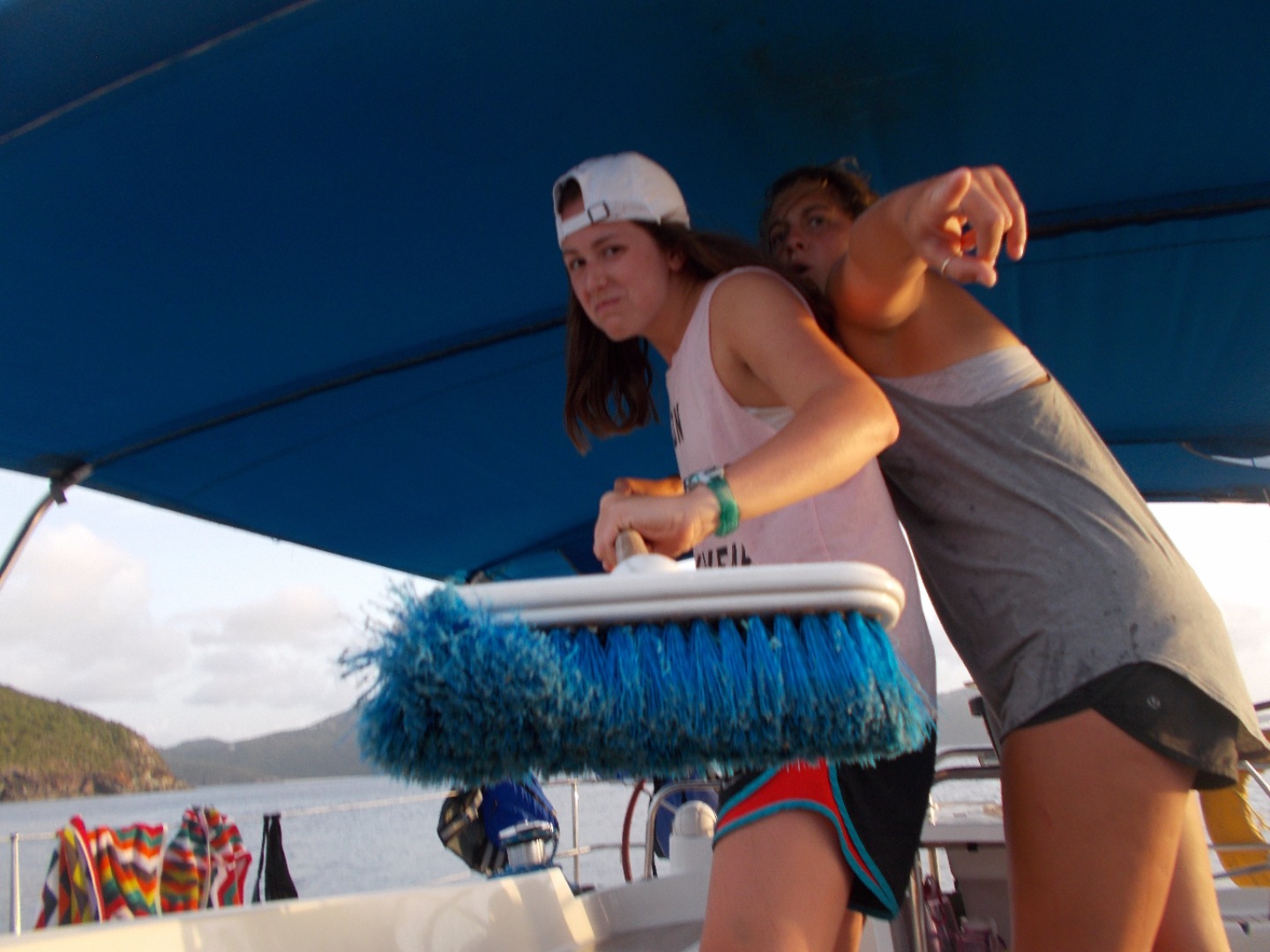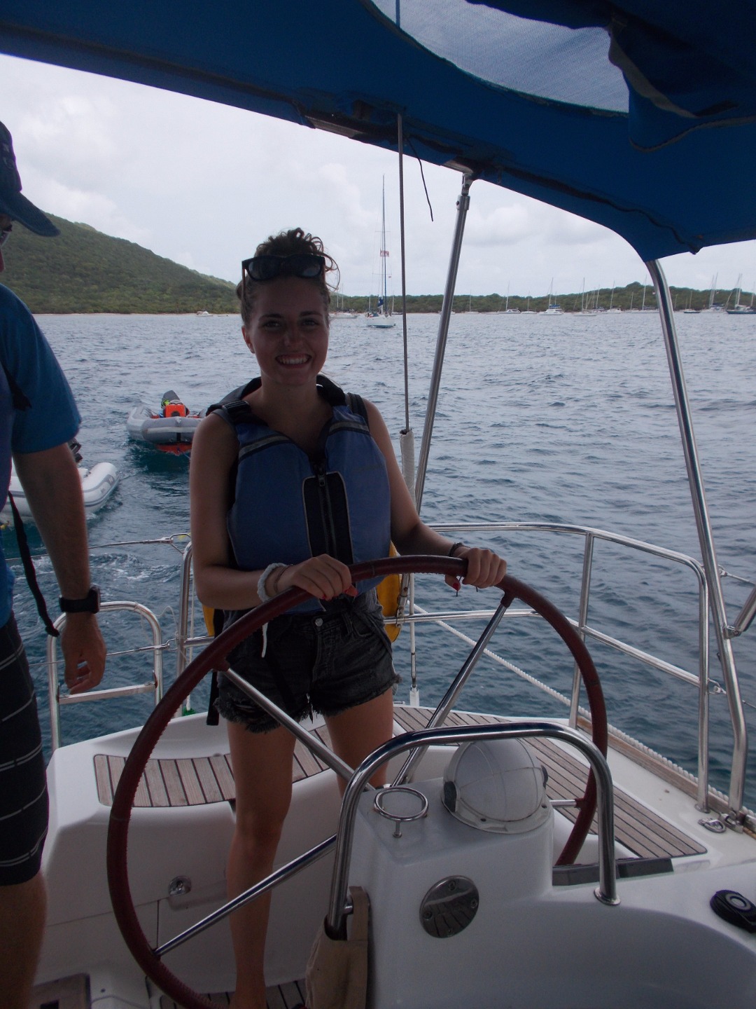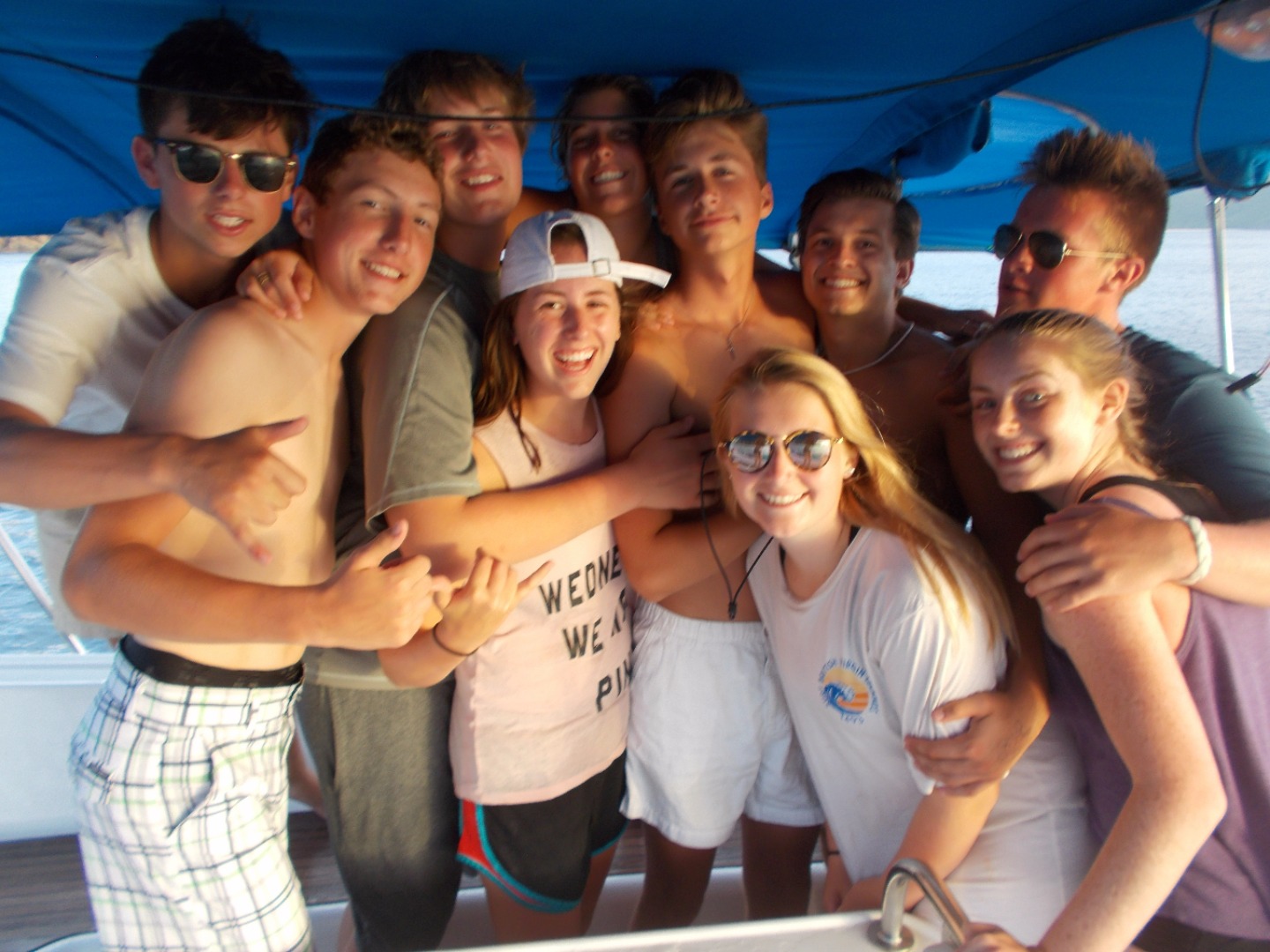 Aujourd’ hui c’etait une super journee, une de plus! On a commence la journee en mangeant des pancakes, puis apres on a range et le bateau, nettoye et on a mit nos gilets de sauvetages, et on s’est repose a l’avant du bateau. Une fois Ian, Jay, et Anna arrives, nous sommes partis et on s’est situe en direction d’un restaurant, et on avati recupere nos telephones, on a donc pu telephoner a nos proches. On a super bien mange. Apres le repas, nous avons navigue afin de se poser dans un superbe endroit pour finir la journee, nous avons prit une douch dans la mer, puis nous avons dinner.