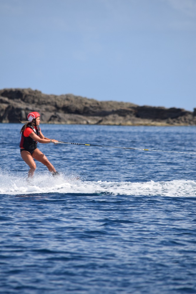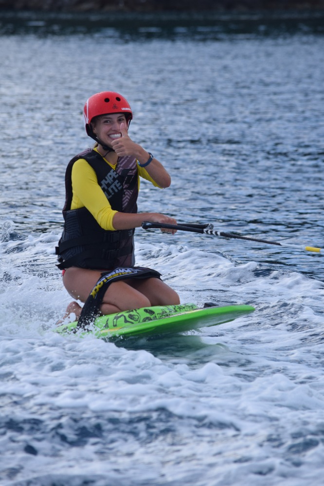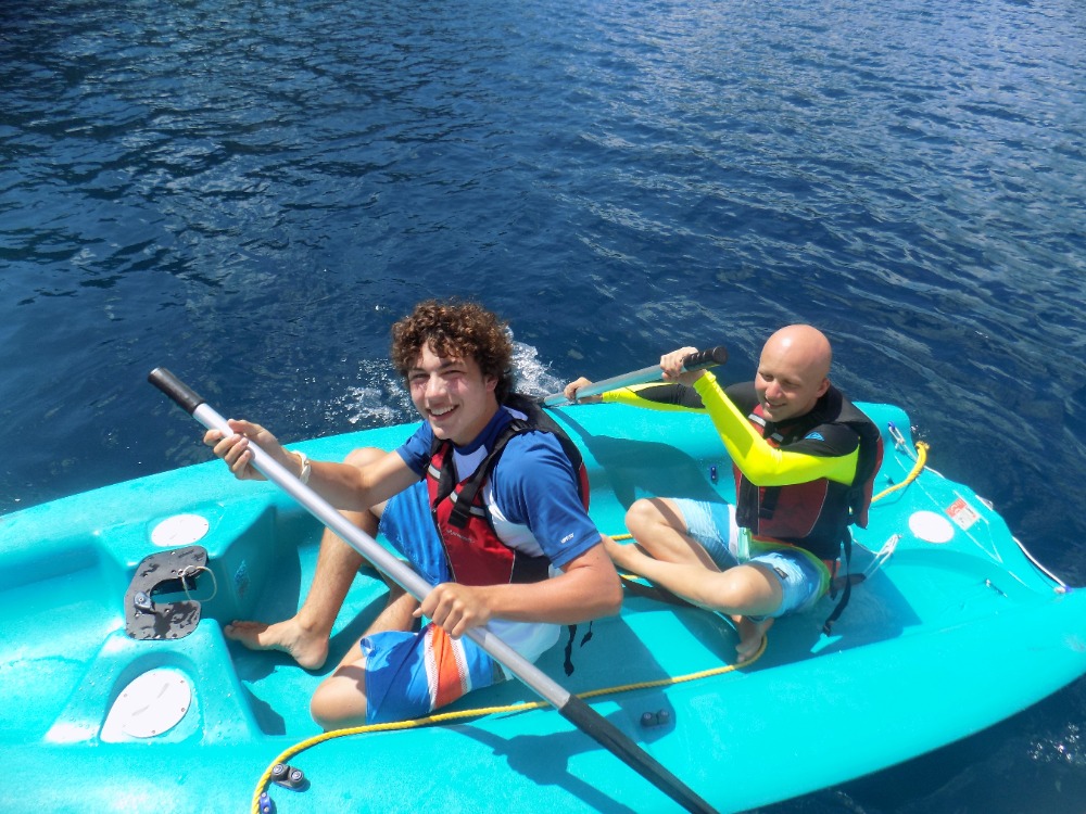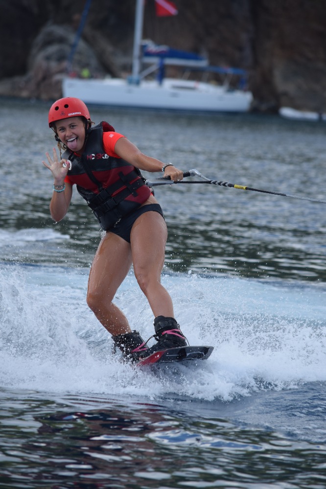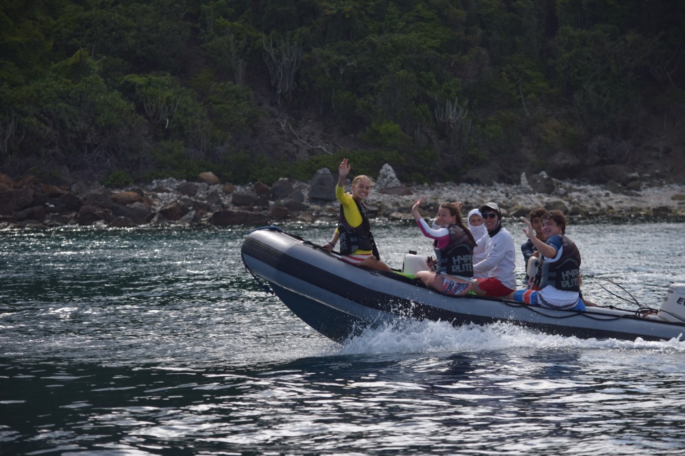 Today was another awesome day. We woke up early to begin a set of rotations. First, I jumped on the wakeboard with Anna and others. We are planning to try backflips the next time we go! Our next rotation was sailing the Picos for the last time on our trip. We had a classic boys vs. girls relay race with the boats. The boys won of course. After Pico sailing, Jess joined us for lunch and we ate the best vegetable soup I have ever had. After our meal, we went and met with our dive instructors for our second to last open water-training dive. We are all so excited to get our dive certification. Later that evening all the shipmates played cards together in the salon while we motored over towards the beach for a BBQ with all of the other boats. The BBQ was fun an it was nice meeting new people. We are all ready for a well-deserved sleep.