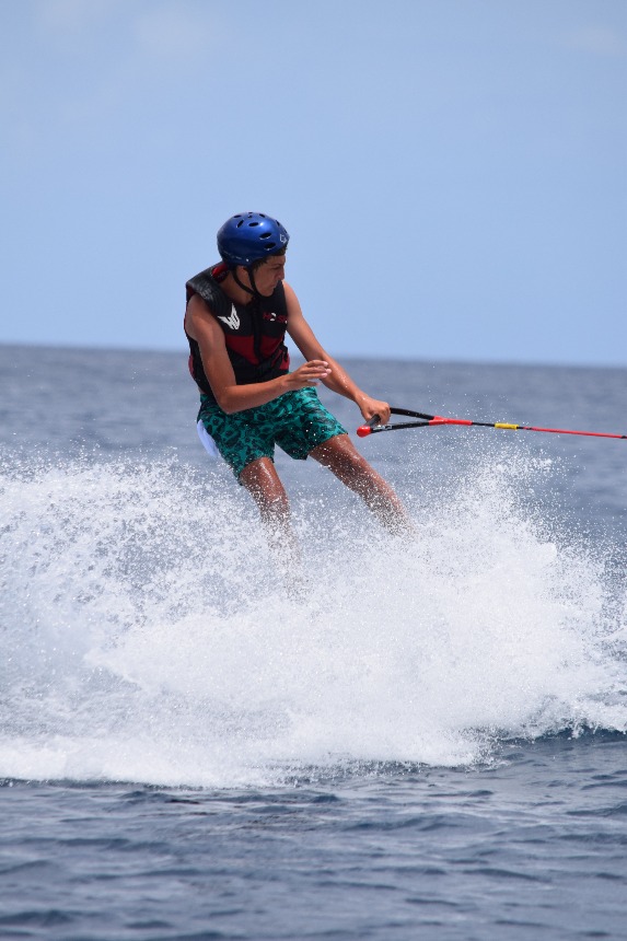 Today was a quiet day and yet full of surprises. We woke up early in the morning to enjoy scrambled eggs with a beautiful welcome of a rainbow on the mountains in front of us. After that, we went to make Turk’s Head bracelets, which were as beautiful as challenging to make them. It was really impressive to watch what appeared simple and plain lashing lines turn into such a beautiful object that could last until 15 years! We then went back to the boat where most of the people went waterskiing, and I say most because some just stayed on the boat to chill and talk. After that, we had an amazing experience learning about boat mechanics (engines, engine checks, water…). We then had lunch, where we had soup and finished the evening with a beautiful dive on a calm and clear sea. The Barracudas went in to finish their fish ID dive, which is done to identify fish, and the Vegas went for an open water dive. We saw many fish, including parrotfish, jackfish, and some hermit crabs changing its shell, but just as we were ascending a stingray just came to finish the dive as a wonderful image. We then returned to the boat to change and go to an evening BBQ where we dined on burgers on a sun setting, perfect end of a day!