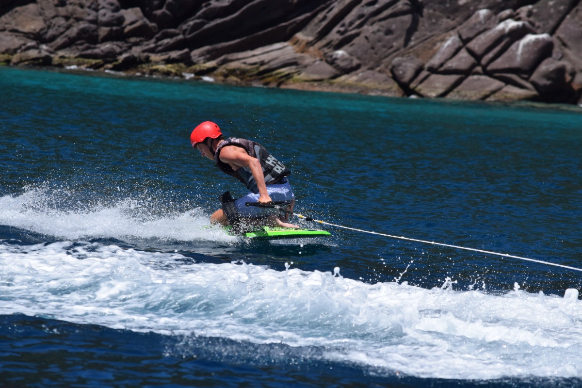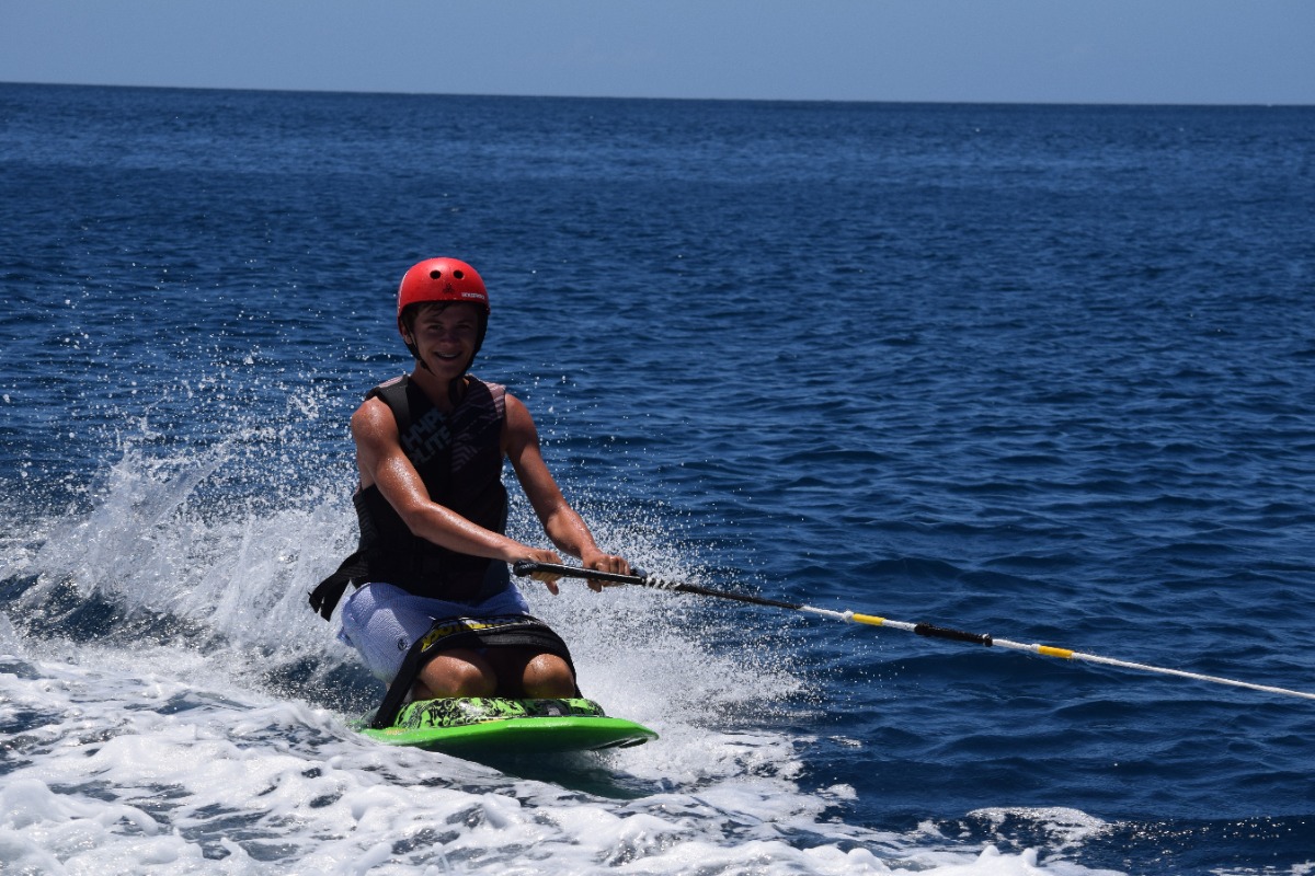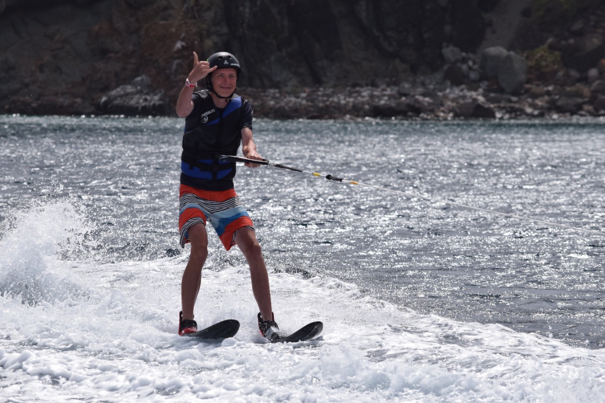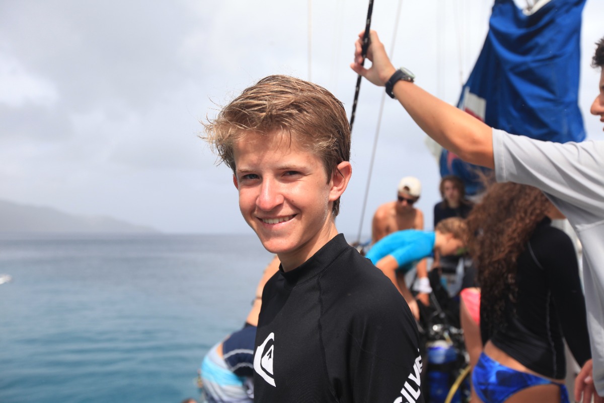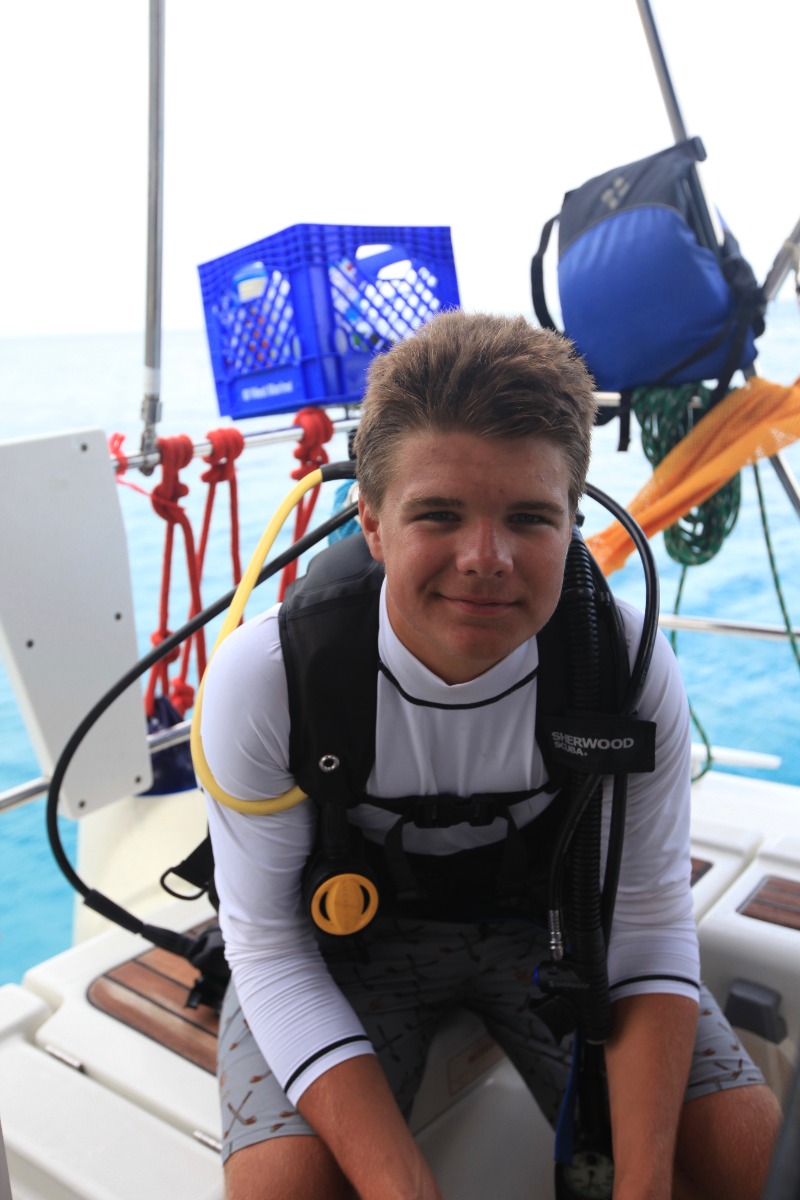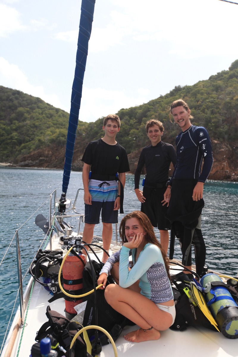 So today was the last rotation day of the trip. We woke up with our daily song and while eating oatmeal for breakfast I had to leave Squeaky brat because we had to go to do our last open water dive which means that we are certified! We were then picked up to do waterskiing, where I did slalom but during it, I saw Haynes wakeboarding for more than ten seconds, which made me very happy. Sorry, before waterskiing we watched a cool video about sailing on Lady Aubrey with David. We then had a quick lunch and started our motor over to Cane Garden Bay where we got fuel and water. We are now bout to start our sail chat as we’ve already had dinner and squeezed where the question was: If you could be a fictional or non-fictional character of a movie or a book, who would you be?