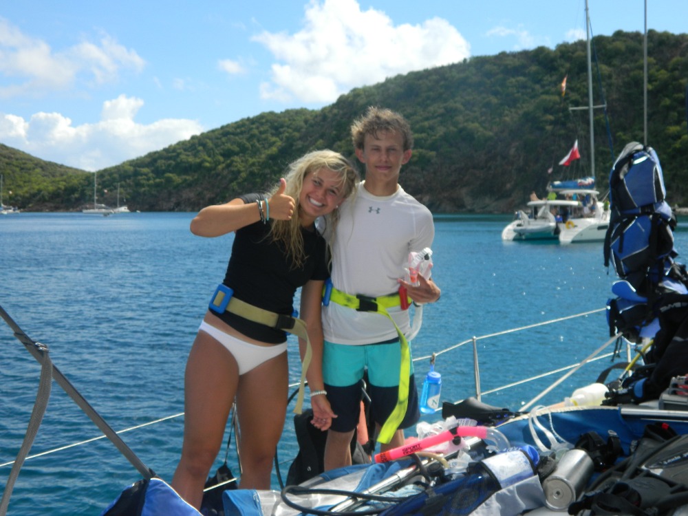 “Only Time” by Enya flowed through the boat’s speakers this morning as our routine wake up call. Shipmates lay scattered across Squeaky B’s blue lagoon due to a slight rain. We rushed through breakfast in order to make it to rotations on time. Today’s rotation was different in that we split up into three groups, integrating with other sail side A boats. While two groups improved our watersports skills and watched sailing videos about Irving Johnson, the remaining group completed open water dive #4. Parents be proud: we are now certified open water scuba divers! Woohoo! Unfortunately I am not yet certified due to sinus congestion, but I will become certified very soon and be able to dive with my friends at our next dive, the RMS Rhone. We are very excited! Lunch was supposed to be tuna sandwiches, but instead we ate PB+J with fruit, then motored to Cane Garden Bay for the night. We took fresh water showers and have zero complaints about it! Anna and Ethan prepared a delicious Thai dinner, which was devoured within minutes. For the squeeze of the day, I asked “If you could describe our crew as a whole, what animal would we be?” Answers include dolphins, meerkats, honey badgers, shrimp, a wolf pack, sea otters, and turtles. Although these are random, on characteristic displayed by some of these animals is companionship. The bond that has grown these past 14 days is unreal. I never thought I would meet such incredible, honest people, especially in such a short amount of time. We have more inside jokes than I’ve ever had in my personal life. With one week left, the only thing against us is time. It will never overcome the experiences we’ve had and the memories we’ve made.