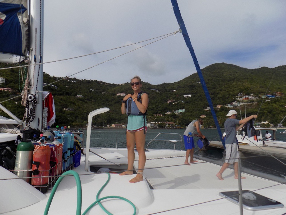 We started off the day at Sommer’s Beach with oatmeal for breakfast. In Muskmelon Bay the divemasters led the open water students on their final dive, concluding their first scuba certification. Welcoming them to the big leagues, each individual was anointed into the PADI family with a safety sausage. Then once again we found ourselves underway to a new adventure with a new beginning. Sailing into Cane Garden Bay we were able to gander upon the great Mt. Sage, which we prepare to summit tomorrow morning. In the evening we had Thai peanut chicken and an exam. It was early lights out tonight.