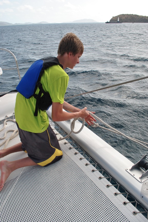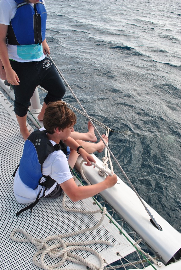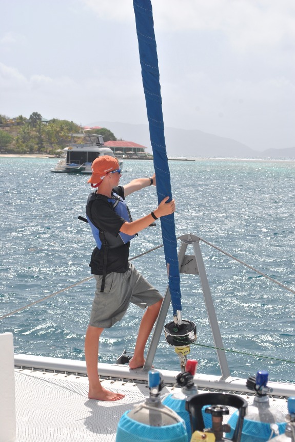 Today we woke up well rested in Sommer’s beach. Quality sleep and large amounts of oatmeal fueled us for our long sail to our dive site. Today I was at the helm for the sail. The winds were super strong, and my shoulders are still sore from wrestling with the wheel all day. It was nice to be at the helm again after so long. We arrived at our first dive, the pinnacles. There were a bunch of stone pillars crawling with marine life. My favorite part of the dive was the massive trench. It reminded me of the tall trench in Nemo. After a wonderful lunch of quesadillas and salsa, we rafted up with another boat. This dive site was called Shark Point. Unfortunately, the dive had no sharks. This was one of the few dives with little marine life. On the bright side, there were a couple of swim-throughs that were really good. Then we left for Kane Garden Bay. We arrived, fueled up, refilled our water tanks, and settled down. Can’t wait for what tomorrow brings!