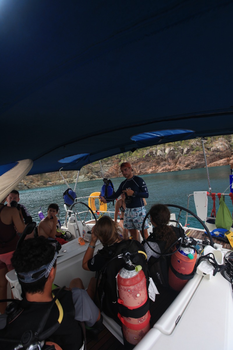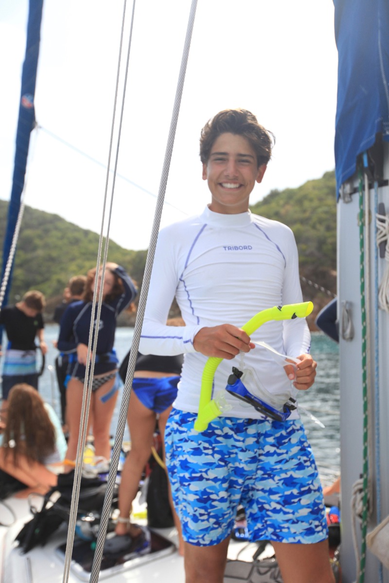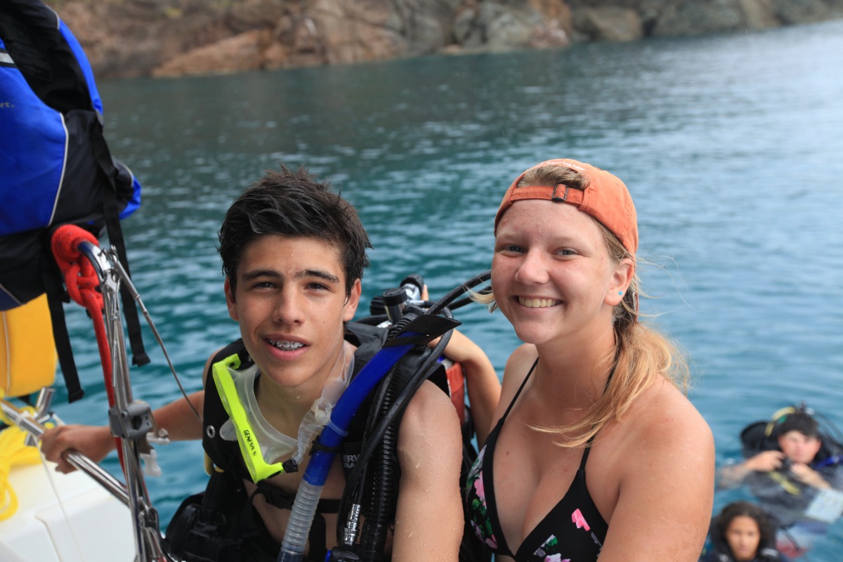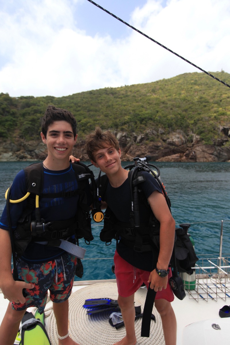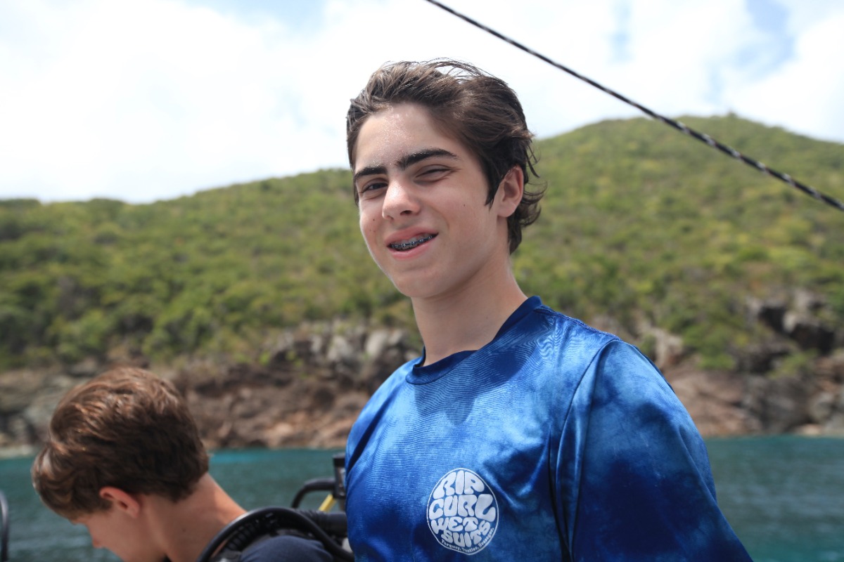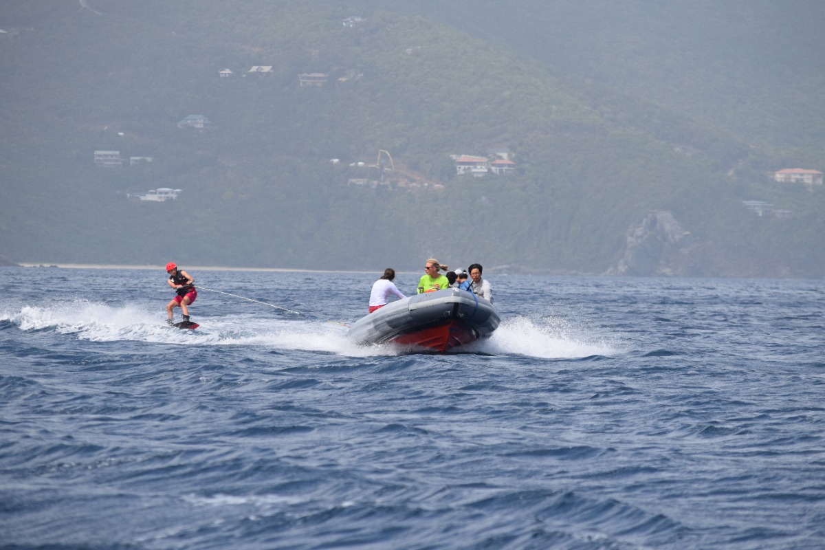 Today was another enjoyable and interesting day at ActionQuest. The boat was divided into three groups that rotated around three activities: skiing, scuba diving and video. The activity that I enjoyed the most was waterskiing. It is a sport that I have never tried before and I was eager to learn. After the three activities we had lunch, and after that we started to go to Cane Garden Bay. The journey was fun, especially when we jibed by accident and scared people because the boom went swinging. With the music on and full of enthusiastic people, Lady Aubrey kept on getting closer to our objective. Once we arrived at Cane Garden Bay we took a shower and then we docked to receive more fresh water. After docking we went outside the port to anchor for the night. I really enjoyed day 14 at ActionQuest.