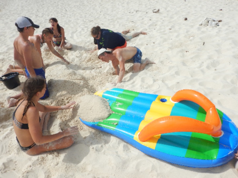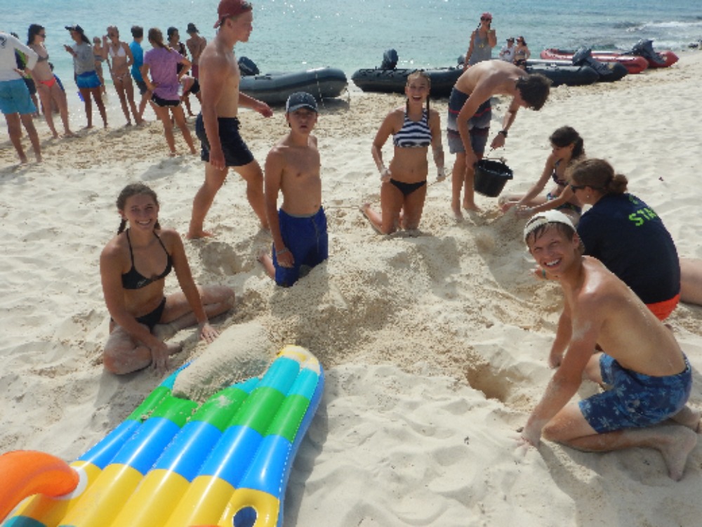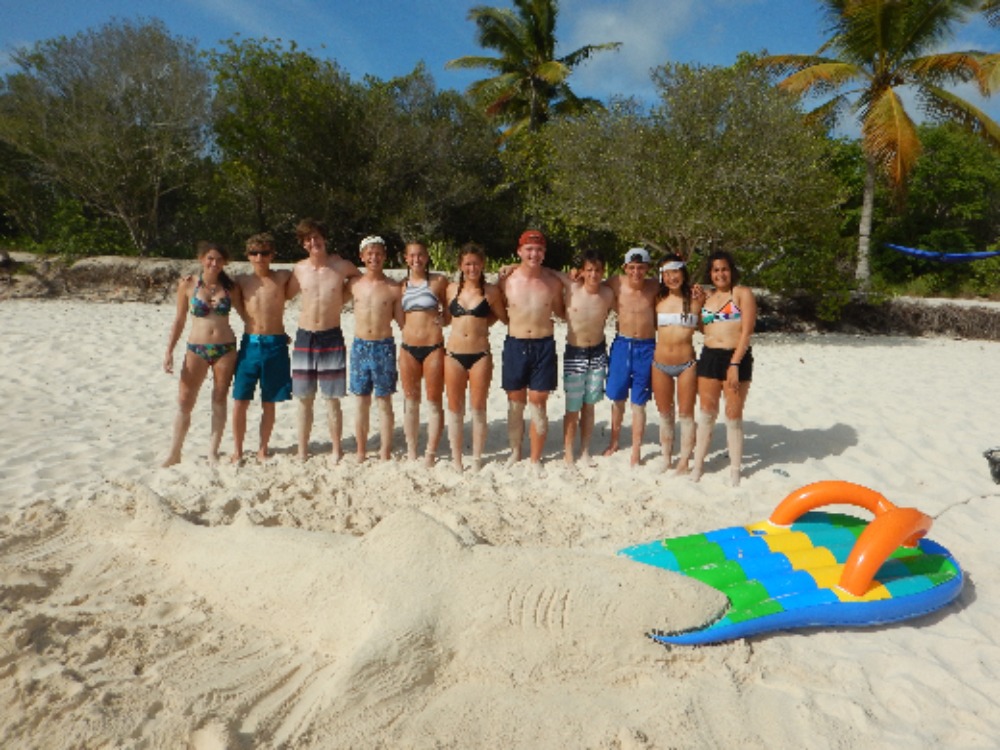 We started the day bright and early. At around 6:00am we head the alarms go off as we rush to eat breakfast and get ready for the hike. After a quick meeting on the docks, we started the three and a half mile uphill journey to the top of the tallest mountain in the BVI’s, Mount Sage. The hike was hard, but well rewarded. Once we reached the top we could buy some delicious banana smoothies before embarking on the journey back. Despite just climbing a mountain, the day wasn’t over. After some time exploring Cane Garden Bay, we all sailed around the corner. It was there where we had our sandcastle building competition. Our boat built a massive great white shark eating a flip-flop. Seems a bit strange, but it worked! We won first place for the best sandcastle. However, the day wasn’t over. We all hopped back on the boats, took a quick shower and sailed for Sidney’s Peace and Love for our beach BBQ. We stayed there for most of the night eating, dancing and exploring the little shops in the are. 11:00pm signaled the end of the day. Once back on the boat, everyone was exhausted. The “Longest Day Ever” was crammed full of activity, but at the same time, it flew by. There was never a dull moment. Now we are all going to bed to recover and get ready for a new day full of adventure.