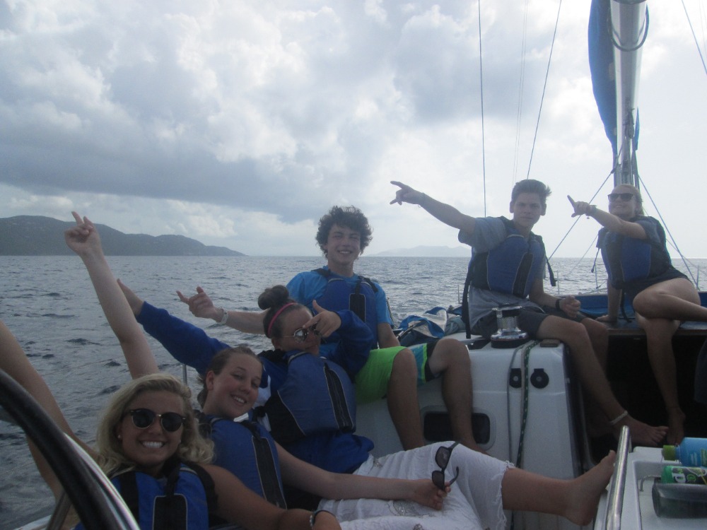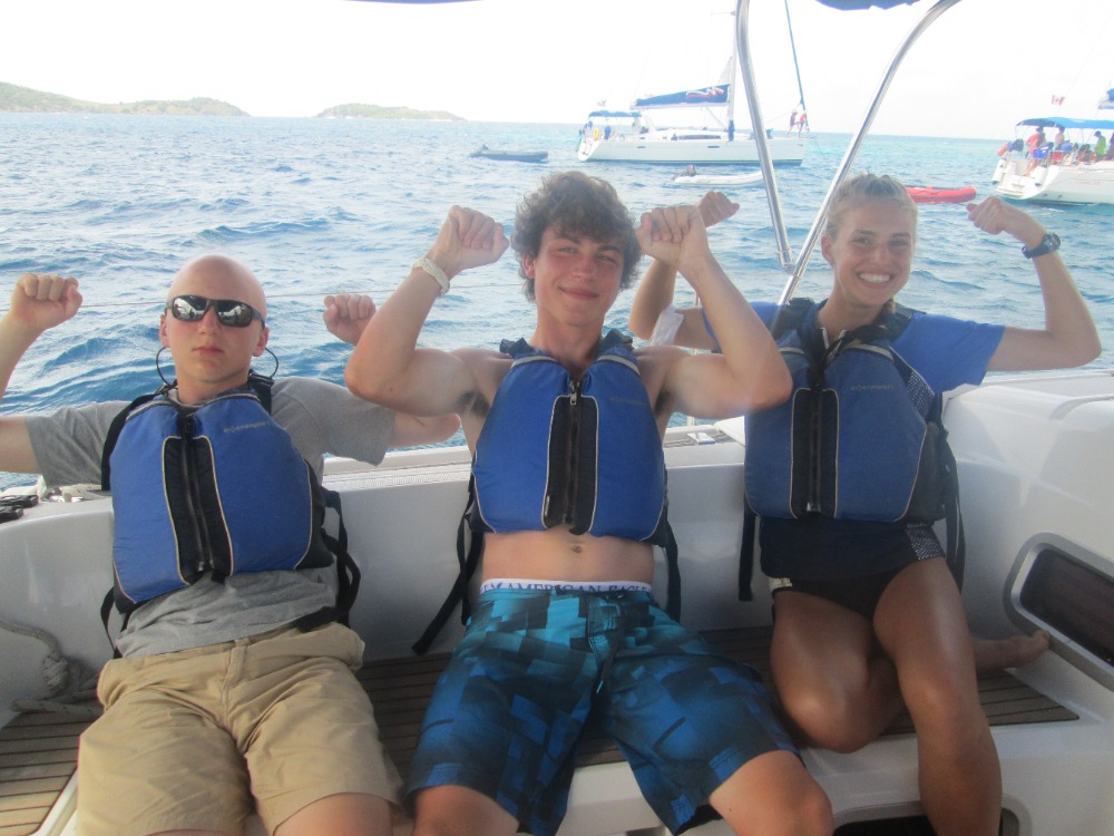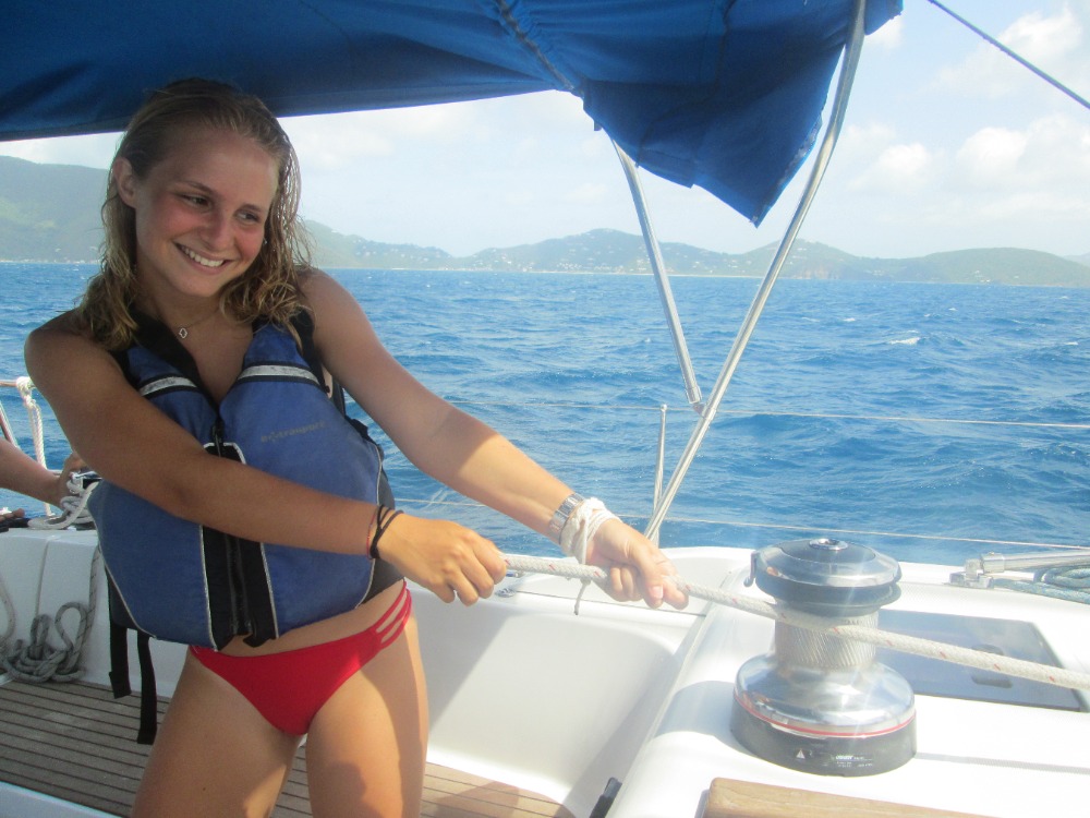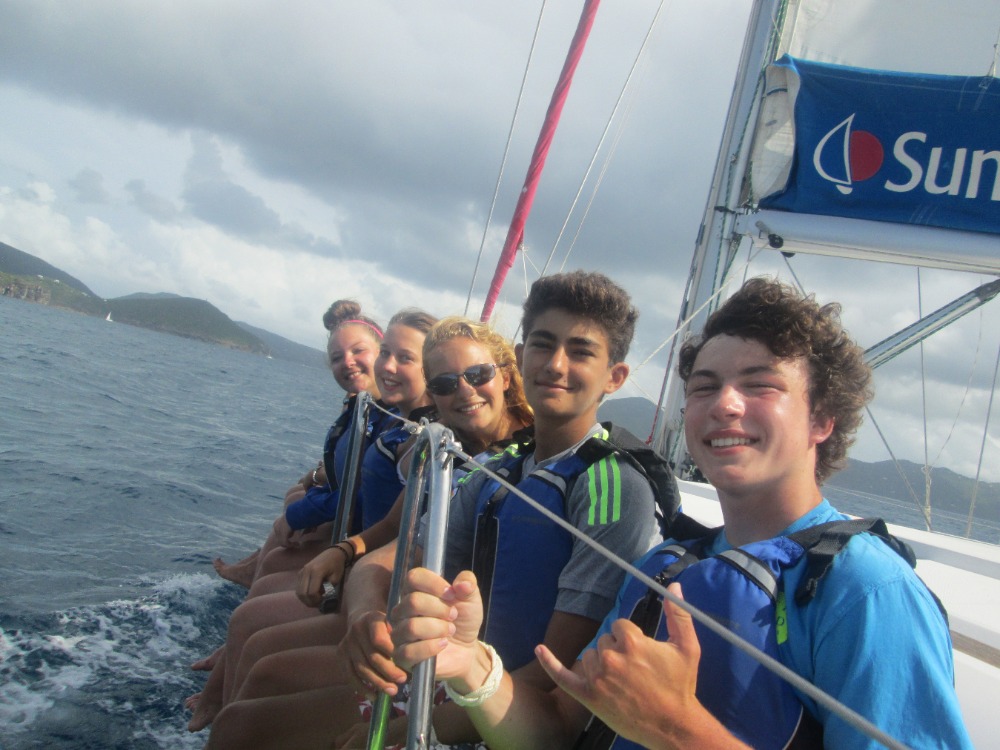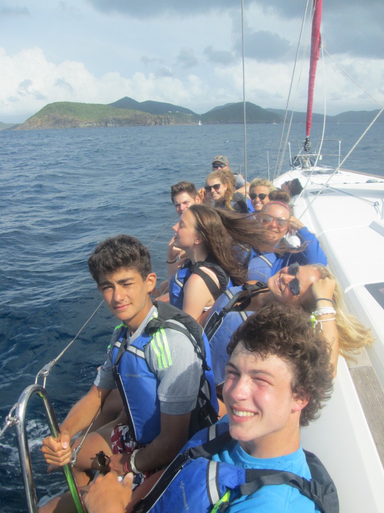 Oggi e stato il giorno dell’esame pratico di vela tanto atteso dal nostro skipper Patino. Ci siamo svegliati attraccati al piccolo porto di Sydney’s Bay vicino alle altre barche dopo il barbecue di ieri sera, abbiamo fatto colaione con French Toasts e frutta, e abbiamo avuto una mattinata piuttosto tranquilla. Aizzate le vele, abbiamo inziato il nostro esame pratico in un canale di fronte alla parte meridonale di Tortola. Qui chiamano l’esercitazione “Man Over Board” essendo la simulazione del ripescaggio di un uomo in mare (nel nostro caso un parabordo) e quasi tutti noi sono riusciti a fare la manovra giusta alla prima botta. E stato divertente anche pranzare in movimento con il pilota automatico… Arrivati alla nuova baia siamo andati con i gommoni sulla spiaggia dell’ isoletta di fronte e abbiamo passato il pomeriggio li tra sole ed onde. Abbiamo appena cenato con hot dogs e fagioli e dopo cena ci asfetta un interessante forum con Mike il direttore del camp. Parleremo della vita, delle nostre aspettative, delusioni e sogni e come sempre ne usaremo soddisfatti.