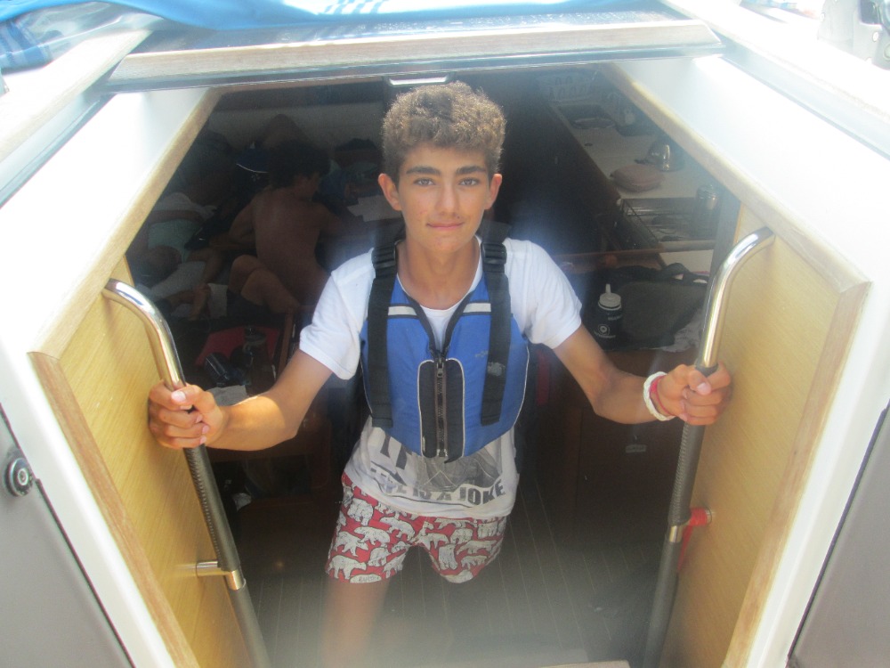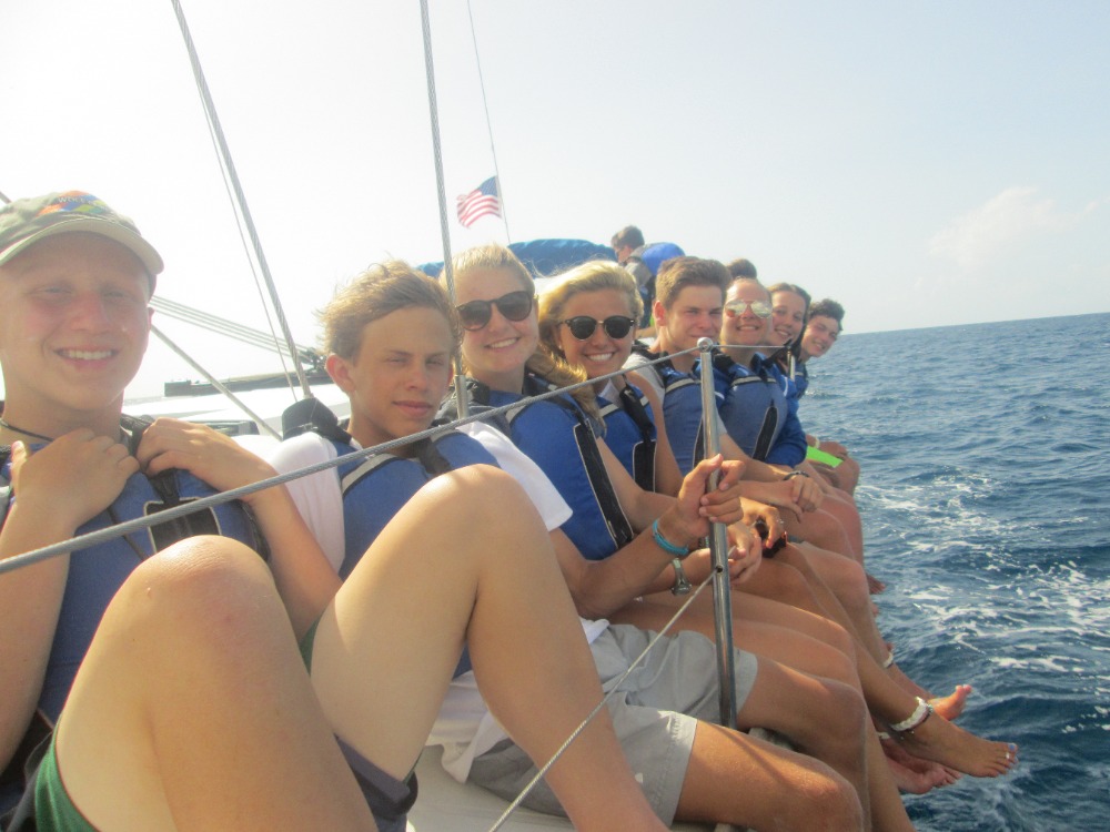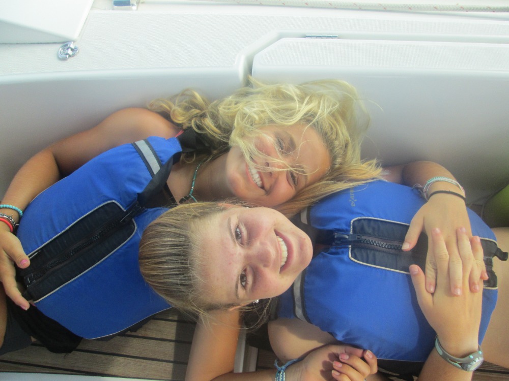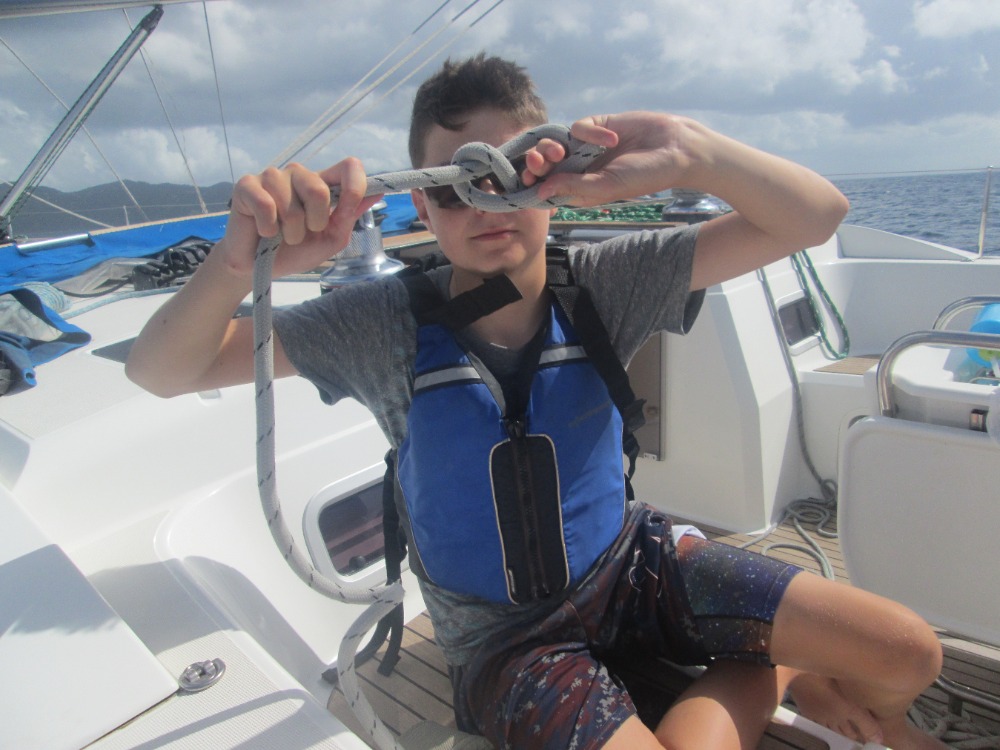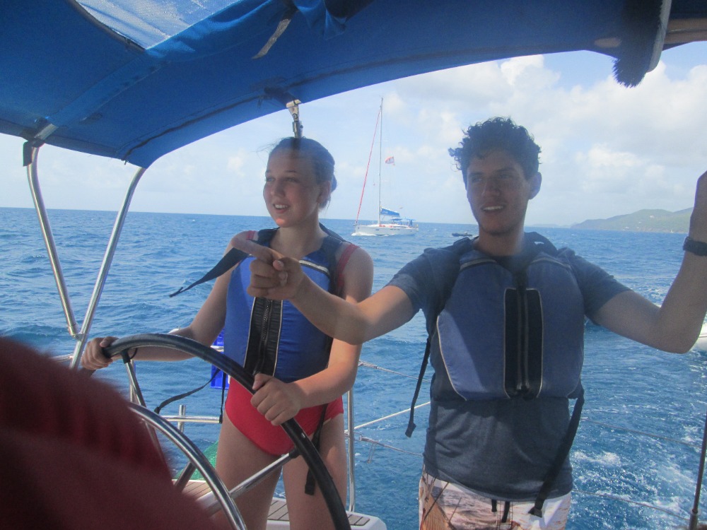 Oggi e stato il giorno dell’esame pratico di vela tanto atteso dal nostro skipper Patino. Ci siamo svegliati attraccati al piccolo porto di Sydney’s Bay vicino alle altre barche dopo il barbecue di ieri sera, abbiamo fatto colaione con French Toasts e frutta, e abbiamo avuto una mattinata piuttosto tranquilla. Aizzate le vele, abbiamo inziato il nostro esame pratico in un canale di fronte alla parte meridonale di Tortola. Qui chiamano l’esercitazione “Man Over Board” essendo la simulazione del ripescaggio di un uomo in mare (nel nostro caso un parabordo) e quasi tutti noi sono riusciti a fare la manovra giusta alla prima botta. E stato divertente anche pranzare in movimento con il pilota automatico… Arrivati alla nuova baia siamo andati con i gommoni sulla spiaggia dell’ isoletta di fronte e abbiamo passato il pomeriggio li tra sole ed onde. Abbiamo appena cenato con hot dogs e fagioli e dopo cena ci asfetta un interessante forum con Mike il direttore del camp. Parleremo della vita, delle nostre aspettative, delusioni e sogni e come sempre ne usaremo soddisfatti.