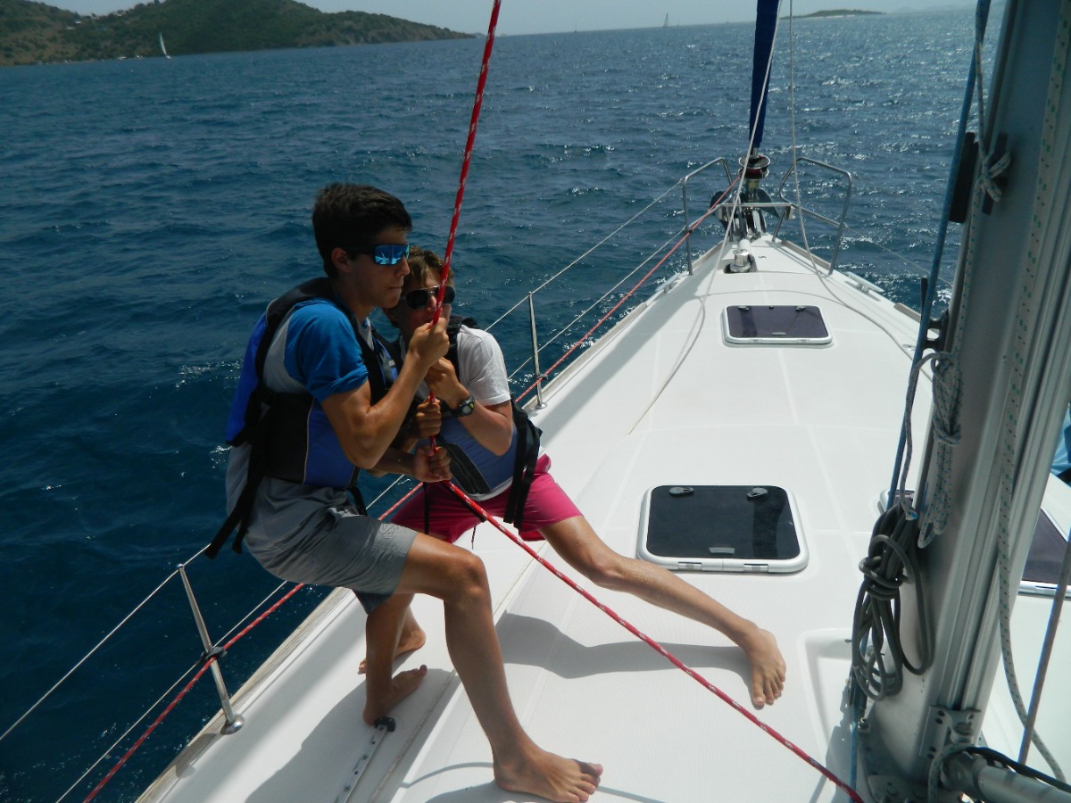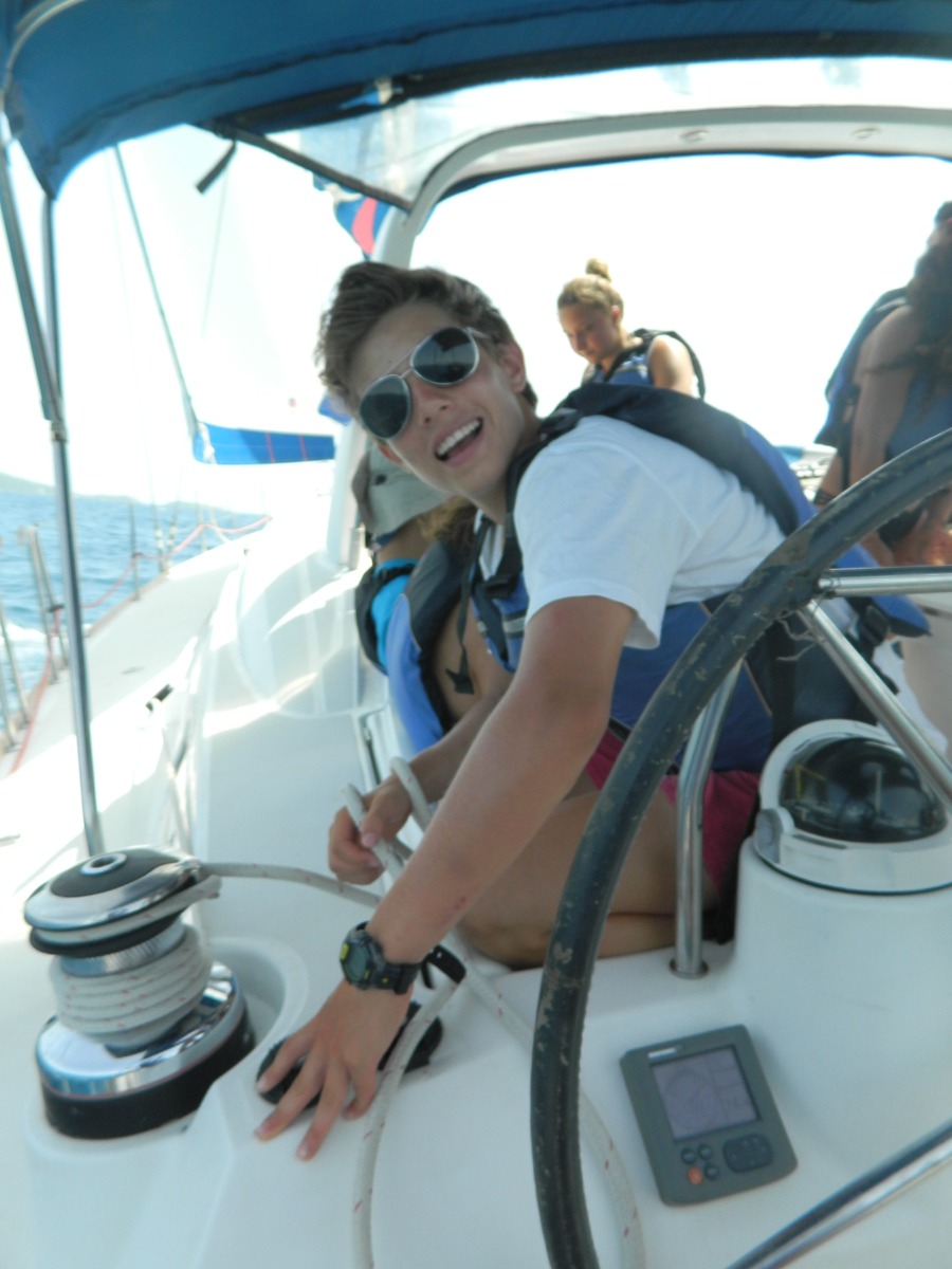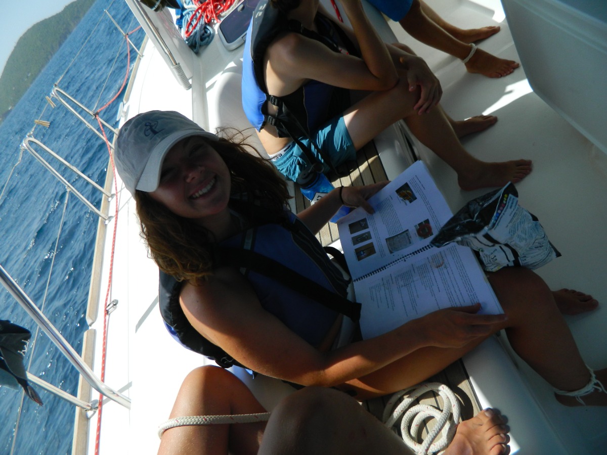 We woke up in Sydney’s Peace and Love and as soon as we finished breakfast, we started sailing towards Sandy Spit. While sailing, our practical sailing test began. We had to do sailing circles, some knots, and man overboard drills. So, we were doing our job but then the jib shackle broke so we had to stop to fix it. By the time it was being repaired, we ate lunch and cleaned the cockpit. Once we were done, we continued our test for about two hours. Later then we went to a beautiful beach where we met another boat. We all really enjoyed and it and had a lot of fun. After that we went back to the boat to shower and eat dinner before hopping back on a dinghy which brought us to a catamaran for a Lifeworks Forum with Sam, which was really interesting and taught us a lot of things. Then we went back to the boat and fell asleep. We can all agree that this was a very well spent day and can’t wait to see what’s going to happen tomorrow.