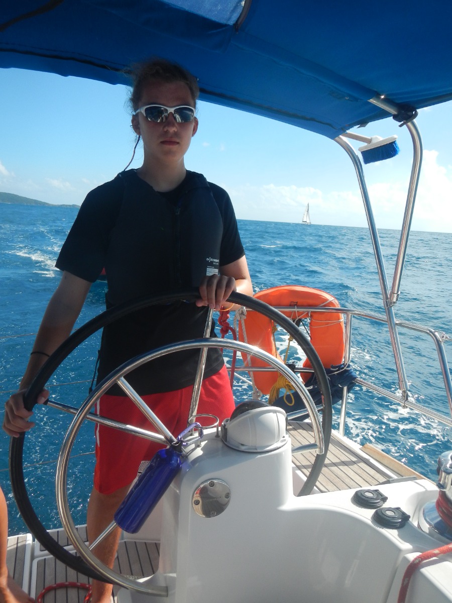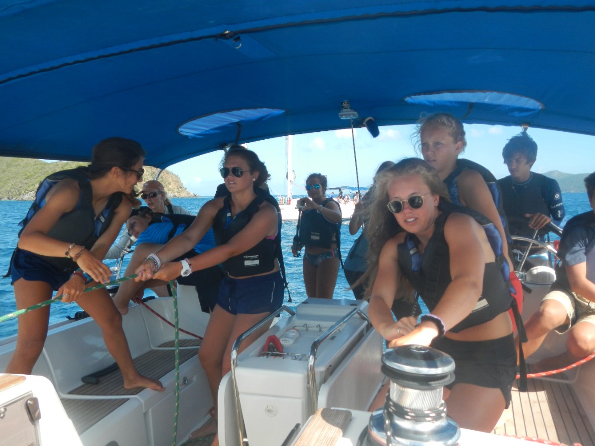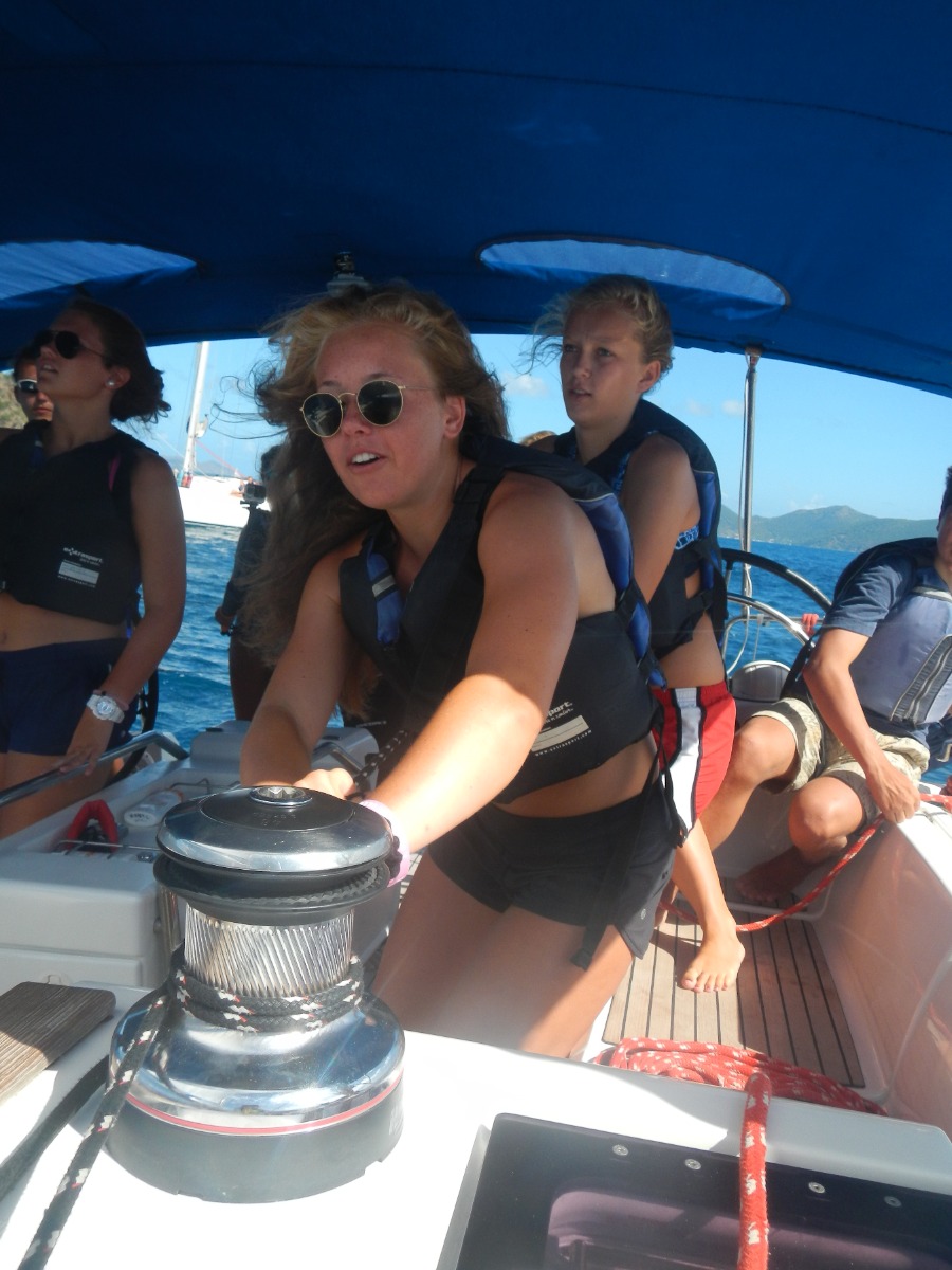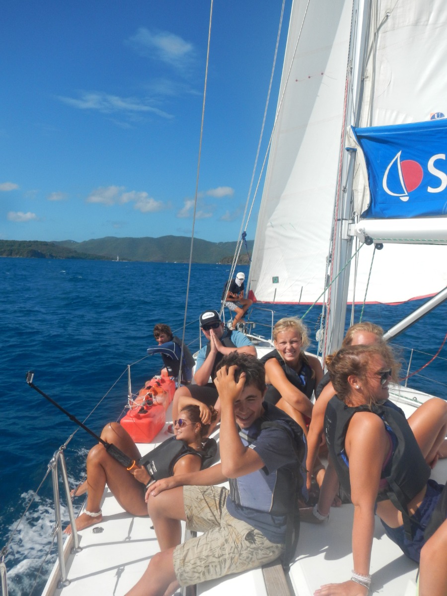 Day 17 was one of the biggest sailing days for Bella Vita’s crew. As skipper, I started as everybody did, with a cereal and oatmeal breakfast. Then, everybody else cleared up the boat and readied themselves for the race. I attending a skipper’s meeting on know how the race would be: the destination, our place on the line, and what we should do afterwards. We then each drew a random number from 1 to 8. The one who had the number one was on the windward side of the starting line, and was advantaged compared to the others. Bella Vita was placed in four but it did not handicap us that much. After the meeting we then all raced from Sandy Cay to West End on Tortola, exactly where we had started the session 17 days go, and where Bella proudly arrived first due to an excellent steering and handling of the sails by its crew. After a nice, relaxing shore time on West End, where everybody had lunch and I attended another skipper’s meeting. For the second race, this time we didn’t stay on one tack as the morning. Instead, we beat upwind toward Peter Island. As for the morning, Bella was randomly placed in 4th position, and its crew wore their PFDs inside out once more- except the skipper of the day, since we need a special detail to recognize the captain. The second race was a lot more complex and a lot longer than the first one: going in close haul, tacking through the wind, making the boat heel much… Thanks to Bella’s crew racing was a real joy and we arrived third, but had led the racing during a long time. Then Bella’s crew rested and ate in front of a beautiful sunset, preparing for day 18.
