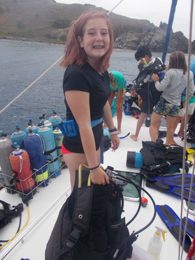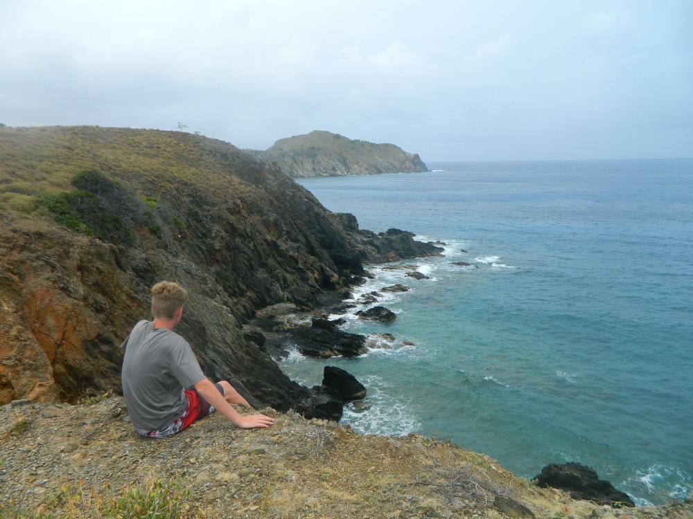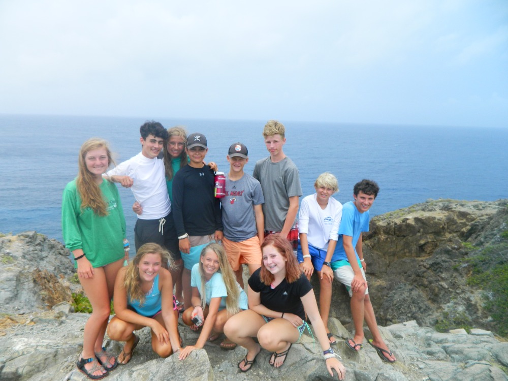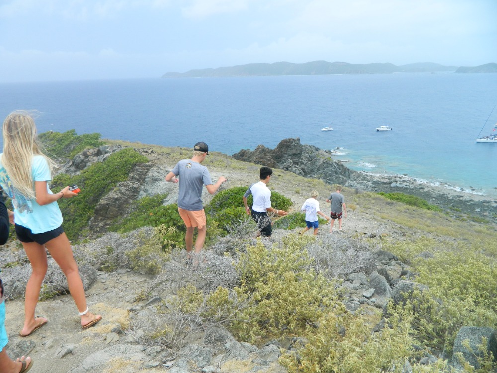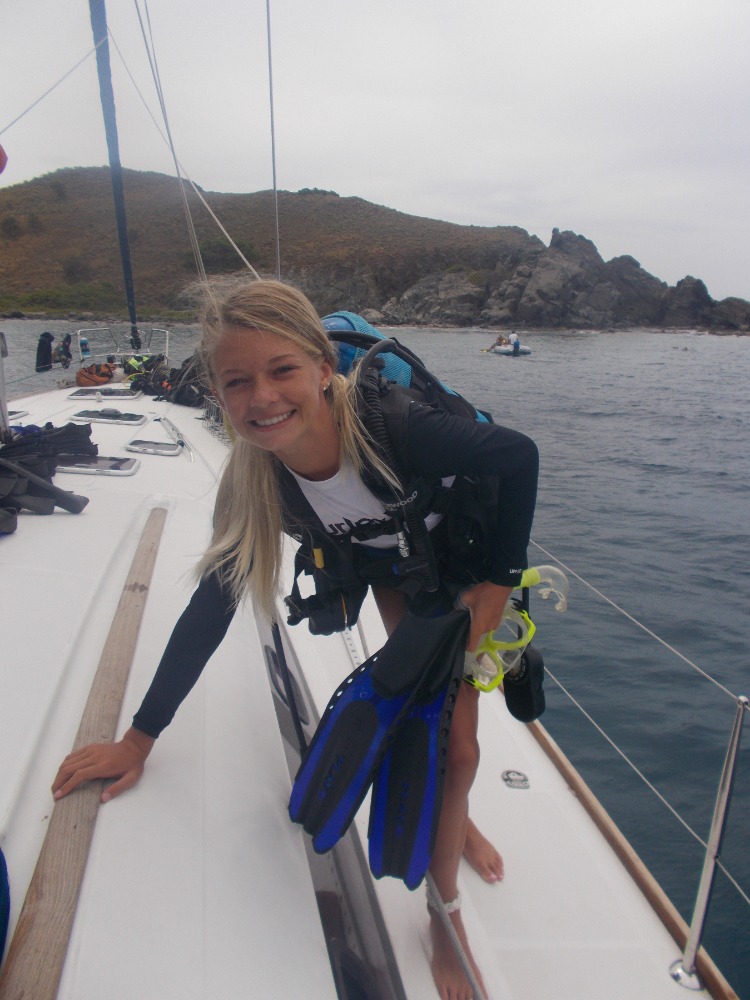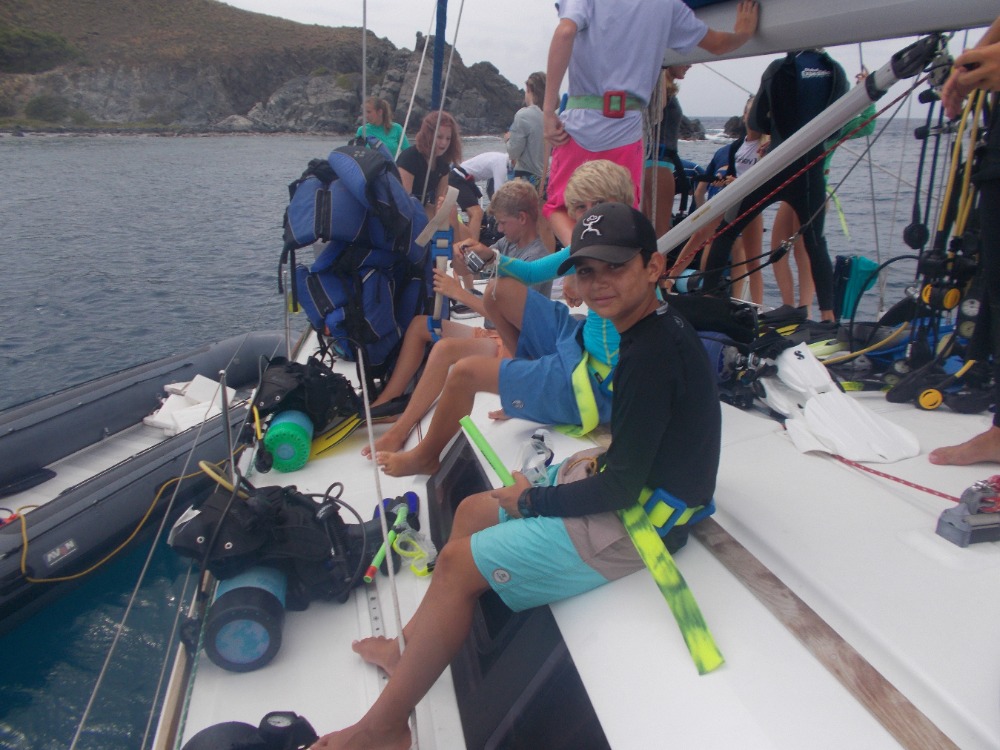 We started yet another beautiful day of our adventure off after spending the night in Great Harbor. The main activity for the day was diving the shipwreck of the Rhone. The boat sunk in 1867 after a giant storm hit unexpectedly. Many died during the wreck, which gave off a slightly eerie vibe to the whole dive. The most impressive part of the dive would be when we swam through the remaining propeller. After the dive, we went back to our lovely boat and had a giant snack time. We were accompanied by Danielle, Will and Paul from the media team. Once snack time was over we dinghied over to the island of Salt Island for a brief hike and some beach time. The small hike led to a stunning cliff that overlooked some breaking waves. We found our way over to a graveyard dedicated to all those that died on the Rhone and all paid our respects. It was kind of overcast, but we all still went into the water on the beach. Once that was over, we motored back to our boat and had a bit of swimming time off the back of the boat. We successfully created a boom swing, which is a rope attached to the boom. Following that we sailed back to Peter Island to end off the night. Aiden and Molly cooked breakfast for dinner for all of us, which was a great end to an even greater day.