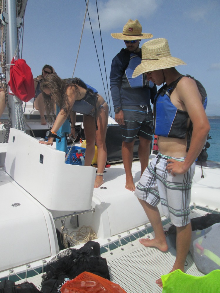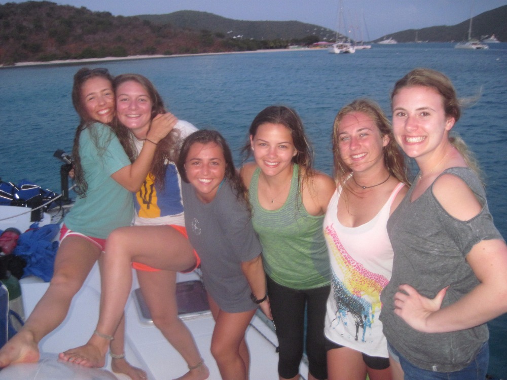 This morning started out great as I woke up to Disney music and the smell of pancakes. After breakfast we reviewed our divemaster exam with Simon, surprise, everyone passed! My shipmates and I celebrated with lunch and Gelato in Road Town. Upon returning to our boat, Chance surprised us with a dive on the Fearless! Emily and I had a blast exploring the wreck and posing on the toilet that still sits on the top of the deck. JJ pointed out two arrow crabs and we saw lots of sergeant majors, sea cucumbers and my personal favorite; feather duster worms! Griffin even found a huge lobster. Once we all returned to Surprise we anchored in Peter Island, where Chance hosted an epic belly flop contest. While many valiant competitors gave it their all, Connor prevailed. He is currently icing his chest and basking in the feeling of his victory. Tonight, we will enjoy breakfast for dinner and a movie as we near the end of our trip. Sail Cat Surprise standing by, seven-two.