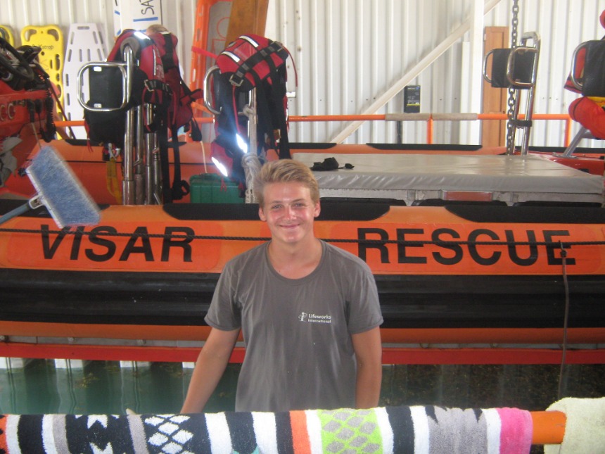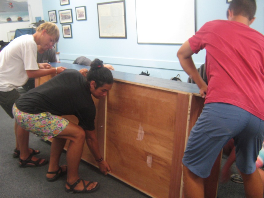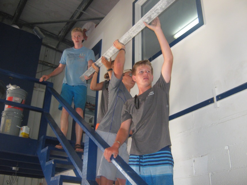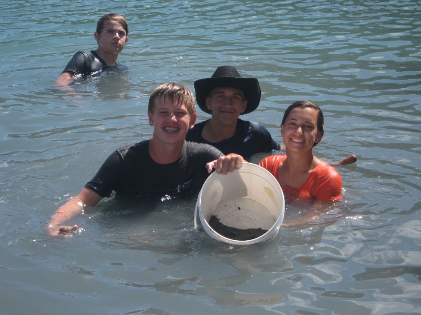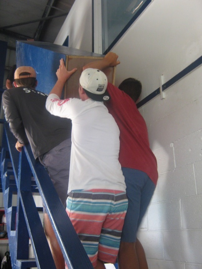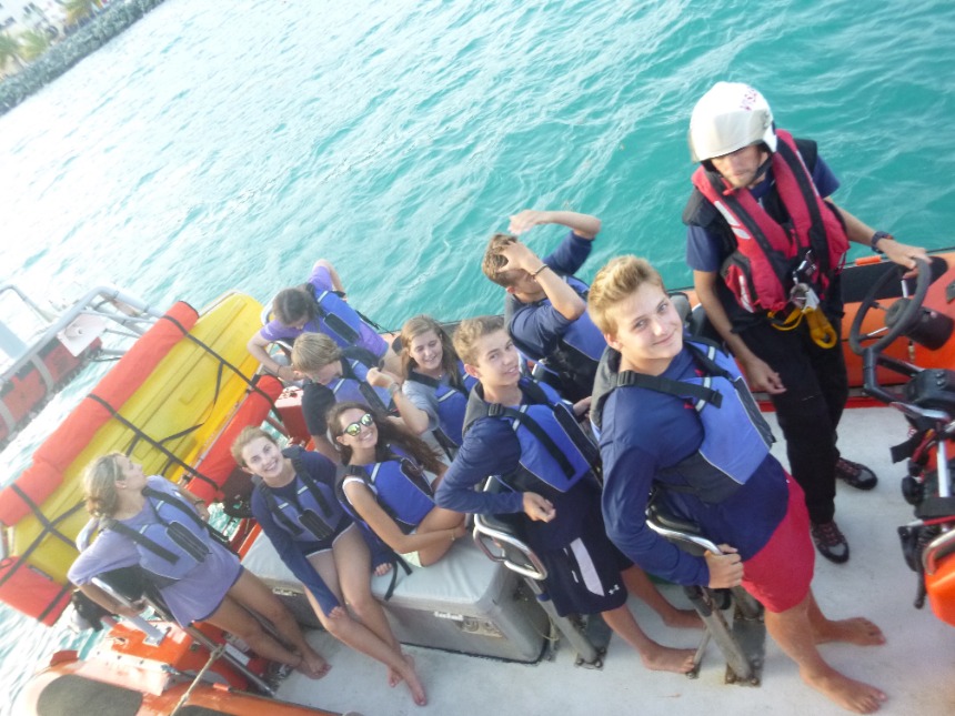 Today started at a relaxed pace with a french toast breakfast en route to Road Town. Once in Road Town, we headed over to the Virgin Islands Search and Rescue Headquarters. At the VISAR HQ, Nigel informed us about the various operations and jobs that VISAR does. We then spent the rest of the day working at the VISAR HQ, helping at the non-profit volunteer organization. We cleaned the boat garage and the boat, moved furniture and metal beams around, sorted merchandise, and dredged the boat launch. After a quick Ramen noodle lunch, everyone got back to work cleaning the place up, moving things around, organizing, and dredging. After working at VISAR for most of the day, we docked at the Moorings Charters headquarters and took a real shower for the first time in three weeks. After we showered, everyone from both boats gathered on Kes Kat, where Elliot announced that we were going to be a part of a VISAR training mission. Elliot chose Caroline to be the injured victim for VISAR. Jamie did an incredible job drawing bruises and scratches on Caroline’s leg that was “broken,” while Claire and I made a fake passport and threw together a day pack for the VISAR training. VISAR then took us out on their boat and drove us around at speeds up to 45 miles per hour, which was really fun. After the VISAR training, David and Elliot picked up pizza for dinner. We ate on the way to the anchorage on Peter Island and moored the boats in the dark.