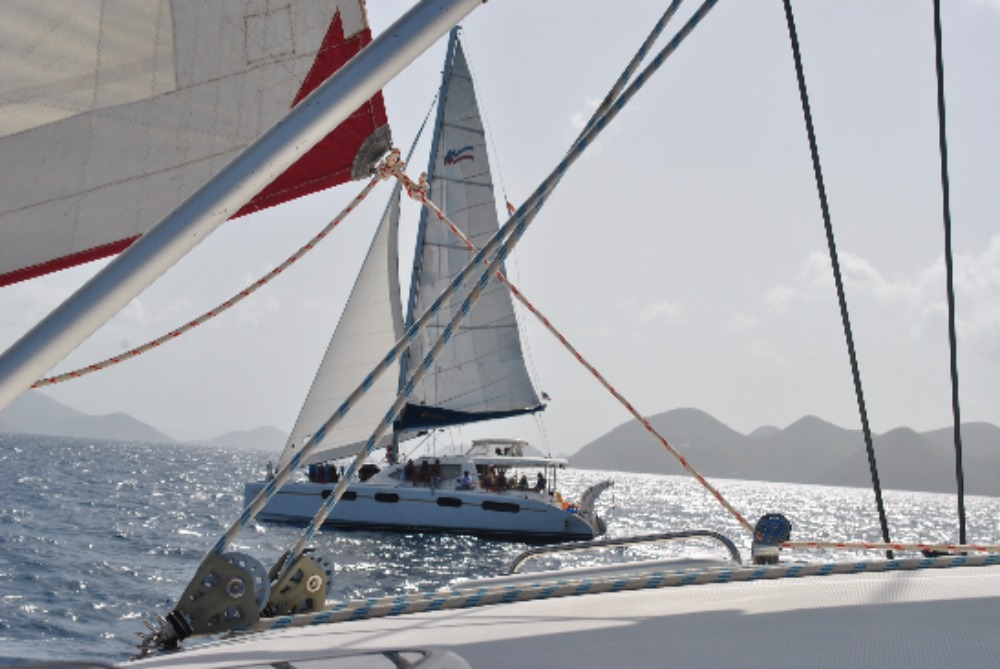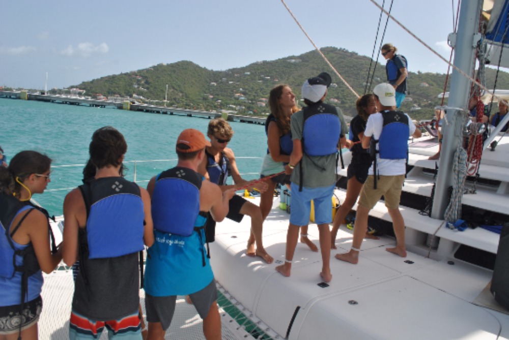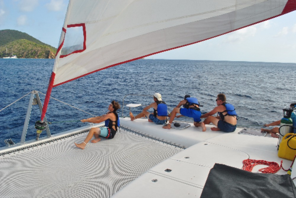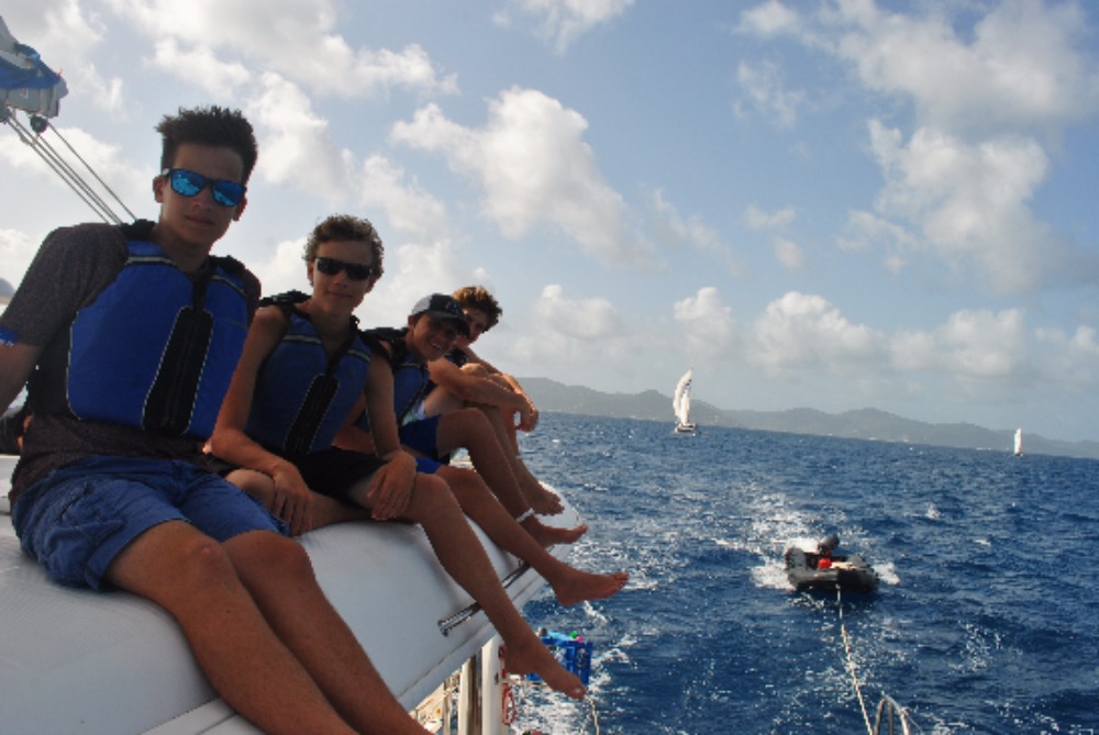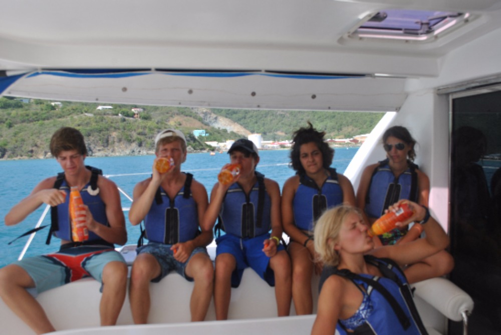 This morning I woke up to the smell of wonderful pancakes cooked by the best chefs on the boat, Doug and Hannah. As we ate breakfast, we had a laugh. We realized that Lydia and her twin sister, who lives on the boat Shazam, had switched the night before! After we cleaned up, we reunited the twins and went turtle tagging. We almost caught a turtle, but sadly, it got away. We returned to the boat and waited for the Neptune’s who did a fun dive while we were turtle tagging. After everyone was onboard, we sailed to Road Town. We enjoyed some nice ice cream and some food before it was time to race! We grabbed Paul from the media team to join us in our battle for first place. The boat Catalinaville tried to intimidate us by holding up an inflatable flip-flop that they took from our stern the night before. We showed no fear and responded with an intimidation “Haka” dance. I think it worked since we were victorious in the dive side race.