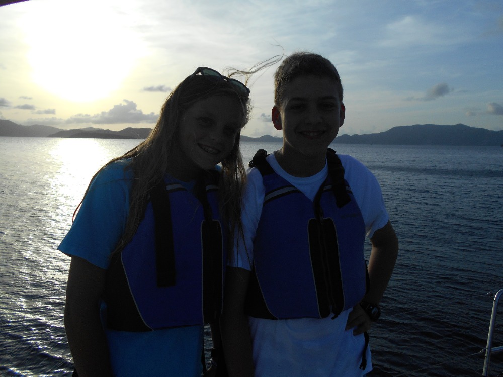 Today was great! It was our first day off the dock. For breakfast we had cereal, fruit, and pink lemonade. When we finished breakfast everyone in ActionQuest had a meeting with the director, then we set sail for Norman Island. When we got there we took our swim test and went swimming. Then for lunch we had deli sandwiches that were made by Clayton and Alex F. When we were eating lunch we saw two sea turtles, then we all decided to swim near our boat. Soon after we went snorkeling.There were caves, and we saw an eel. Then we went over to where we moored the boat. For dinner Clayton and Alex made Sloppy Joe’s, corn, and mashed potatoes. Today I think we all got to know each other better and we can’t wait for tomorrow!
