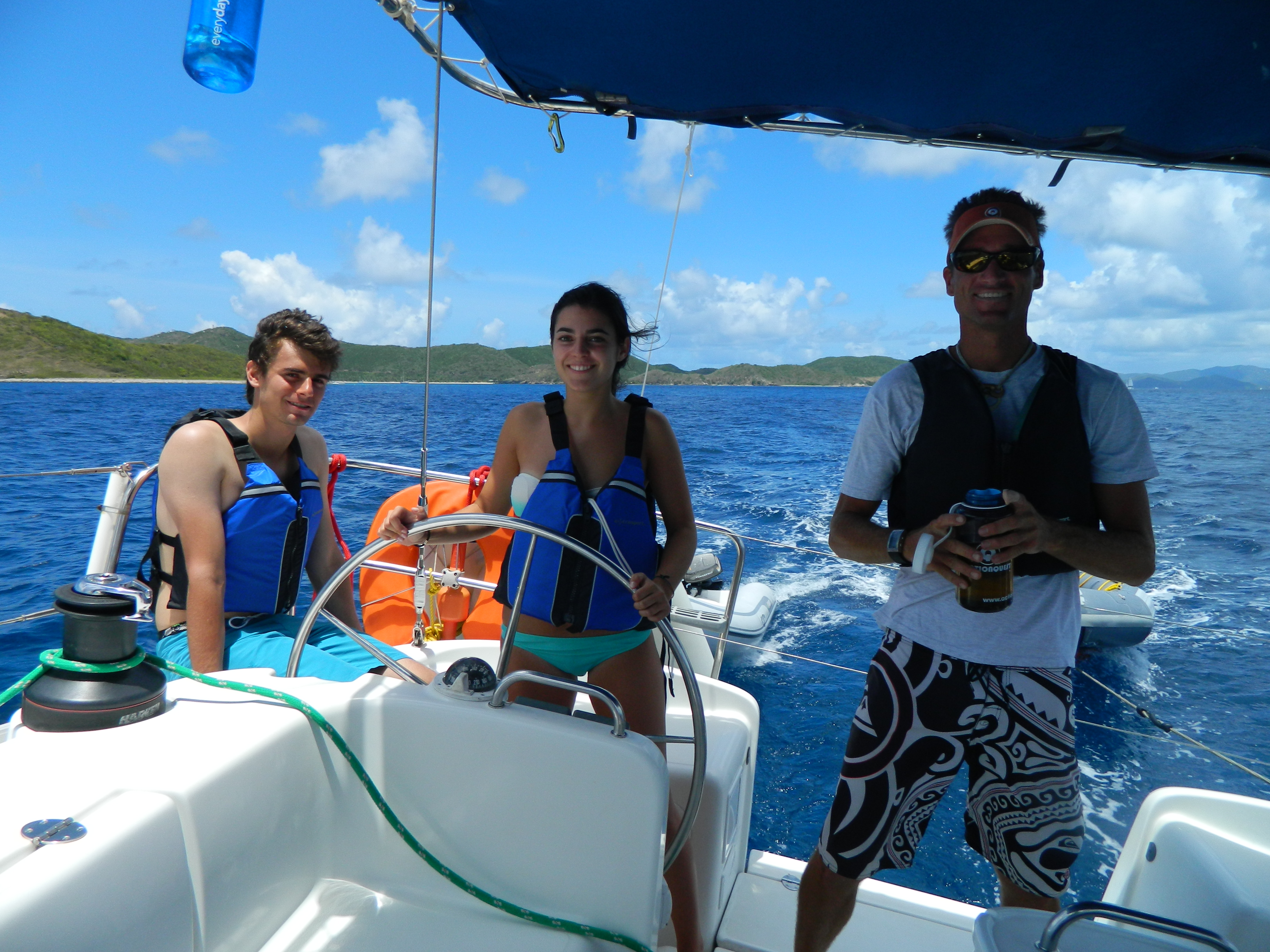 Today was very tiring because we were sailing for nearly 6 hours. We learned a variety of new skills and useful techniques for when handling the boat. I was skipper for the day, so I had the privilege of steering the boat! We eventually reached where we needed to be and anchored. Everyone was jumping off the boat, showing their best moves. Showering in the sea is always a highlight of my day because to me it is so unusual. To finish off the day, we had a lovely dinner of pasta and white sauce.