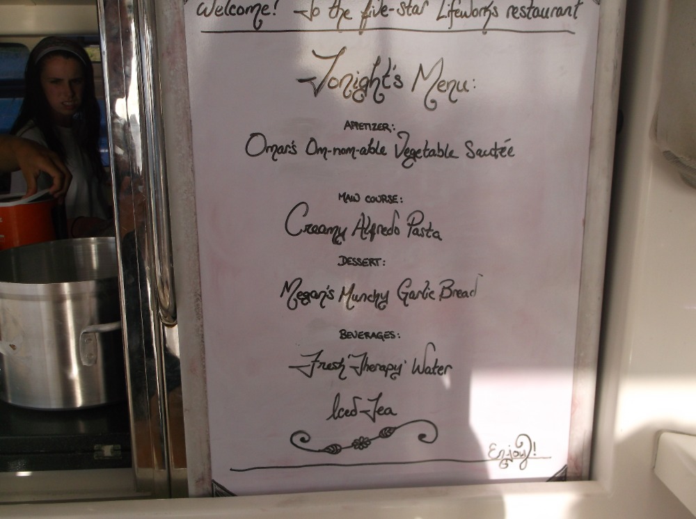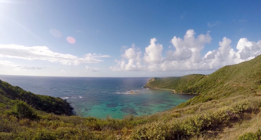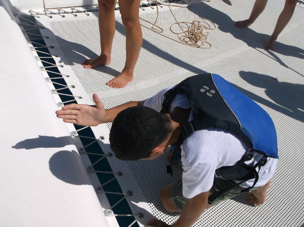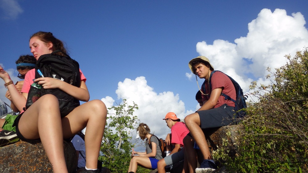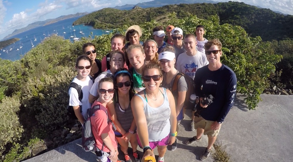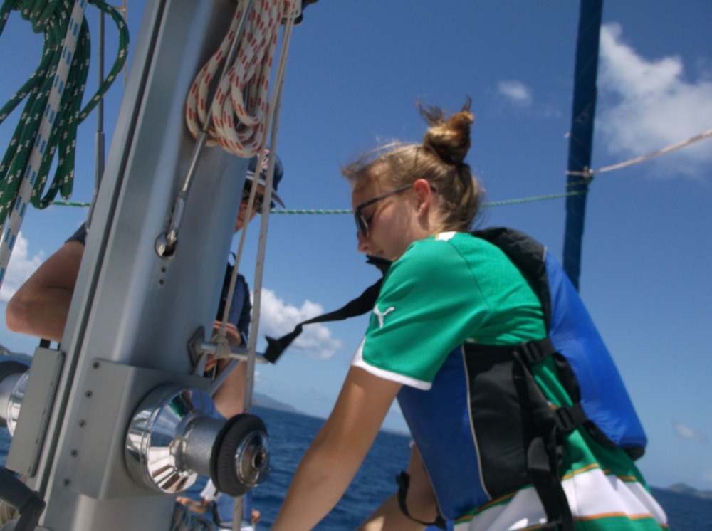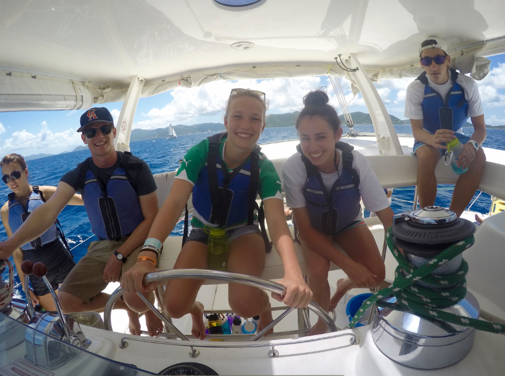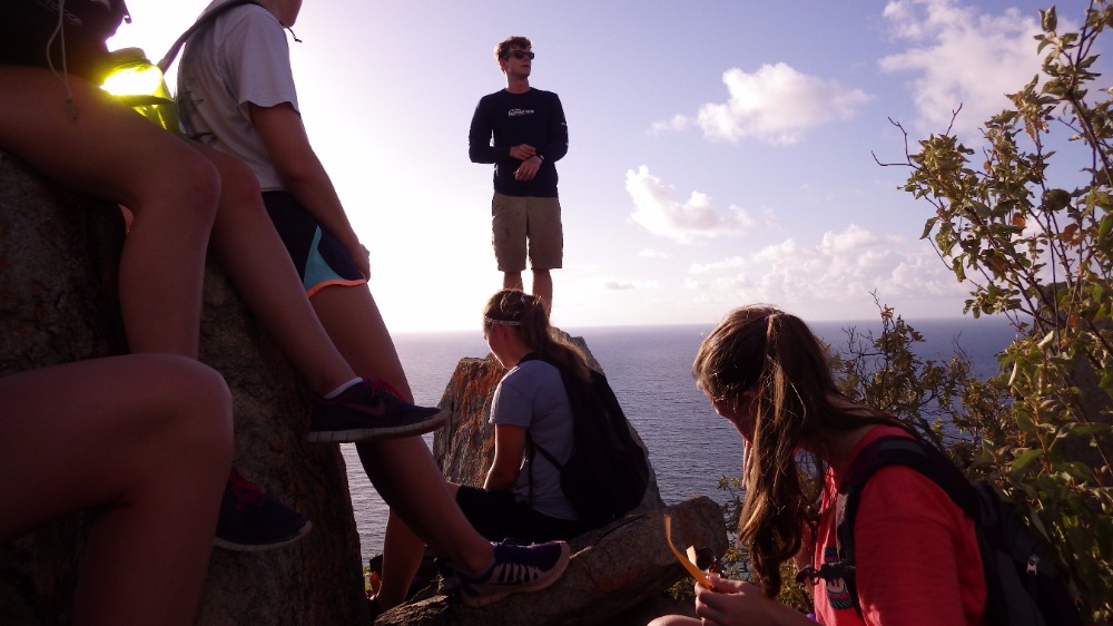 The day started out early with a 5:45 wake-up call. With huge yawns and somewhat grumpy complaints the group made their way into the dinghy and boated to the mainland. After making two rounds to pick up everybody from the boat we docked the dinghy and made our way to the first activity of the day; a hike up spyglass mountain. After 15 minutes of exhausting non-stop climbing, our early waking and tiring hike was rewarded with a breathtaking 360 view of the BVIs and USVIs.This marked the official start of the Lifeworks program, and as we hiked back down the trail everybody talked excitedly about what the next three weeks had in store for us. After a quick breakfast of scrambled eggs, and fruit salad we started motoring to Tortola to get a refill on some supplies. Upon reaching the docks we had a quick break on the mainland to purchase some snacks and connect briefly with friends and family through our phones. After our quick pit stop we made our way to open water and finally put up the sails. The wind was ideal and our top speed was 8.4 knots. After a couple of hours we finally reached Savannah Bay and anchored, exhausted and sunburned from the long journey. The day was concluded with showers, which in the BVI’s consist of jumping in the ocean, and a delicious dinner of Alfredo pasta, with sausage and salad. With heavy eyes we sat through a interactive lesson on knot making, and then finally after a long day we finally went to bed, filled with anticipation for for the next day.