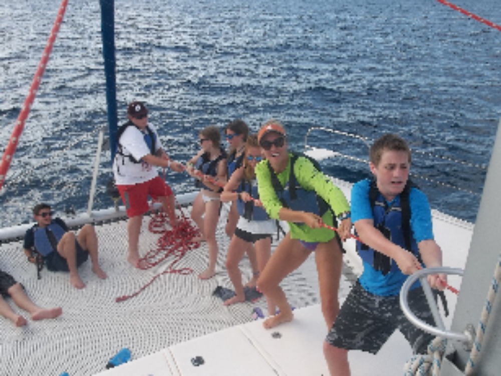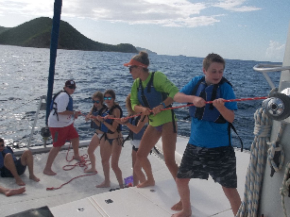 Today we woke up at 7:30. It was nice to “sleep in”. Next we had a fun dive. We saw many different fish and coral. It was incredible. For lunch we had PB+J and turkey sandwiches. They were pretty good. After a quick study session for our advanced certifications we sailed over to Savannah Bay. We took a saltwater shower. It was fun, and some of us back flipped off the boat. After that we had Alfredo pasta for dinner and the director, Mike, joined us. We chatted and had fun. After dinner we went to our first of 3 Lifeworks forums. There we spoke about focusing on the positive things in life rather than the negatives. Before we knew it, it was time to hit the hay. What a day in the beautiful BVI’s!