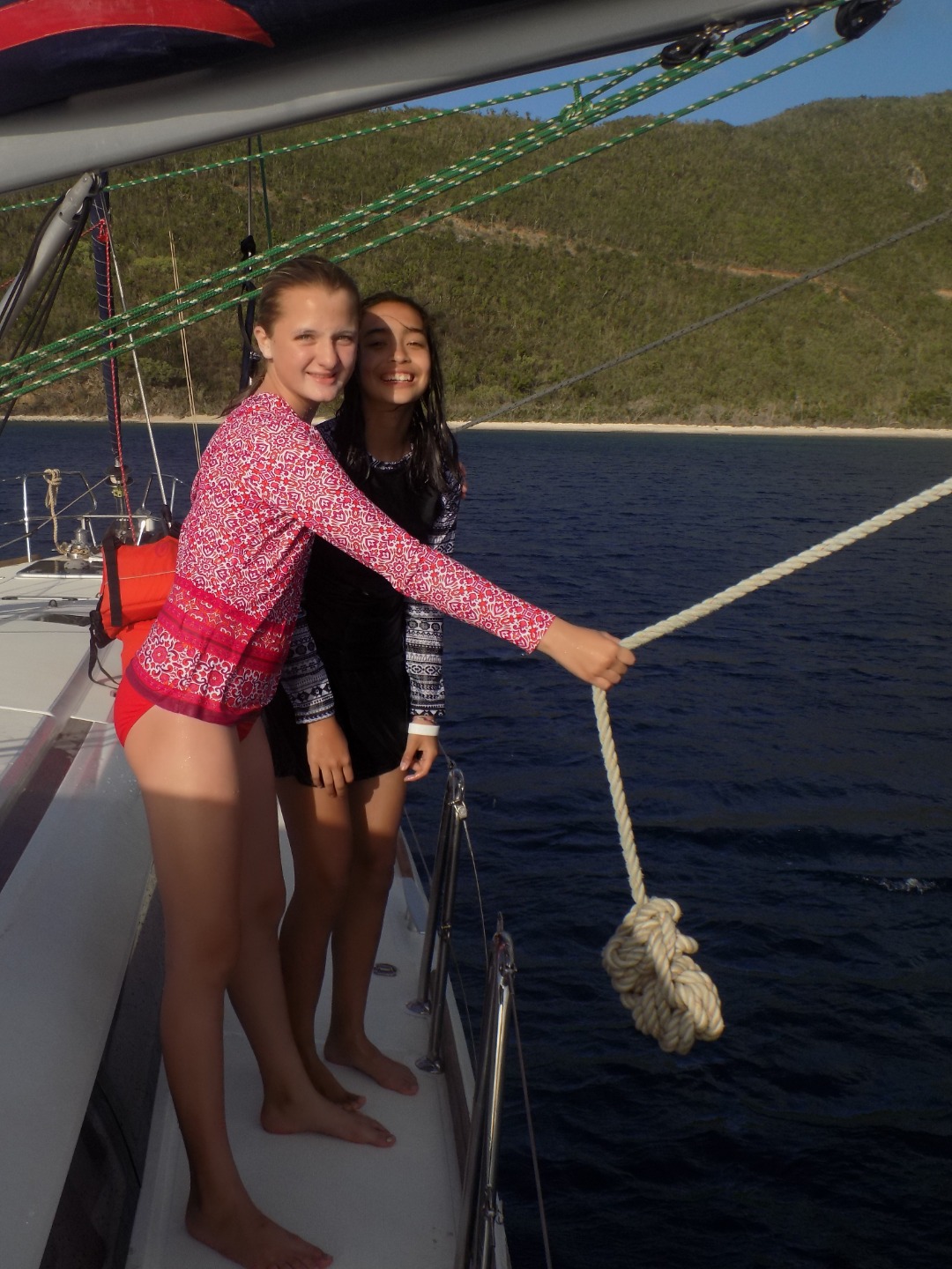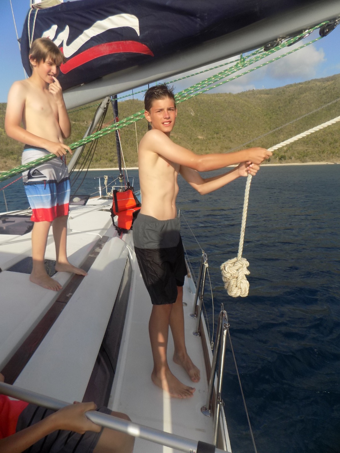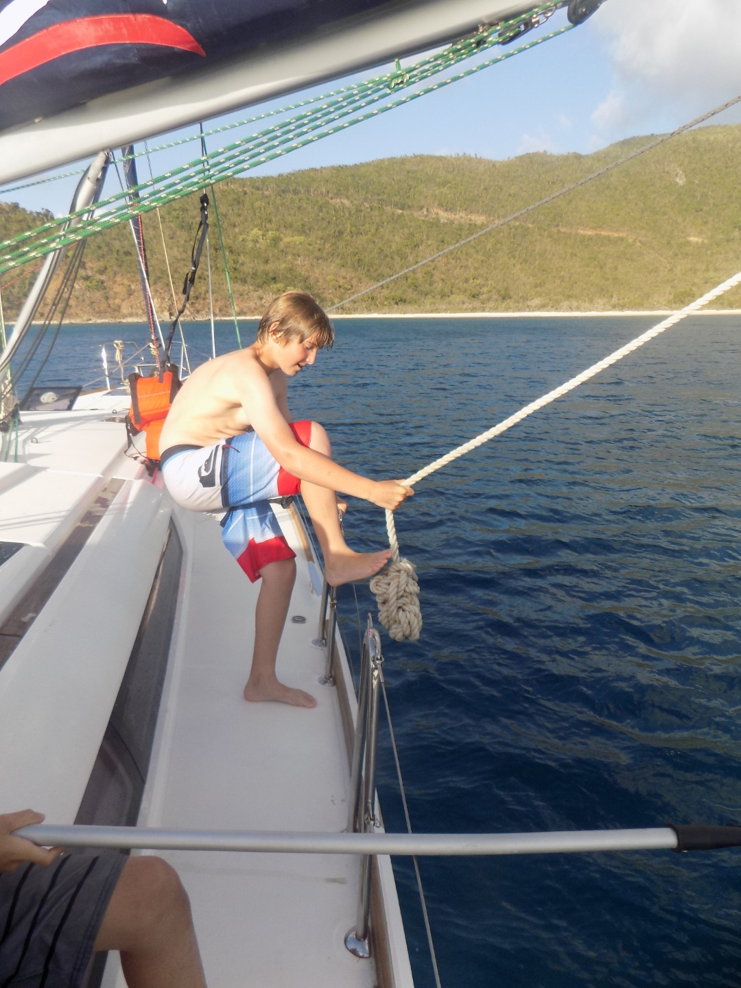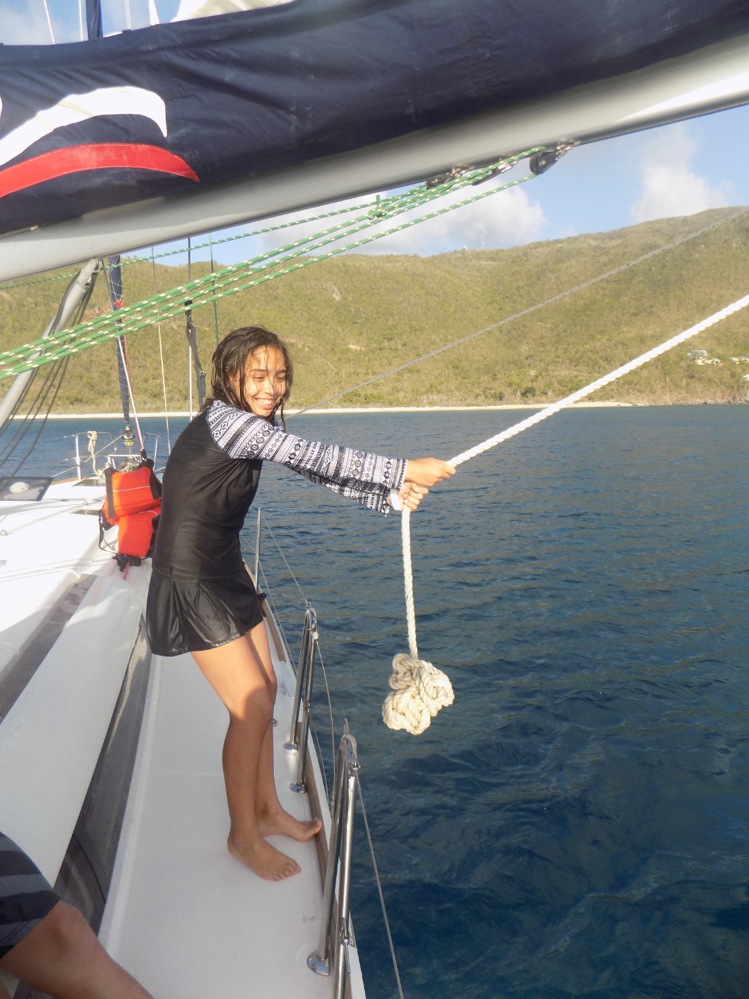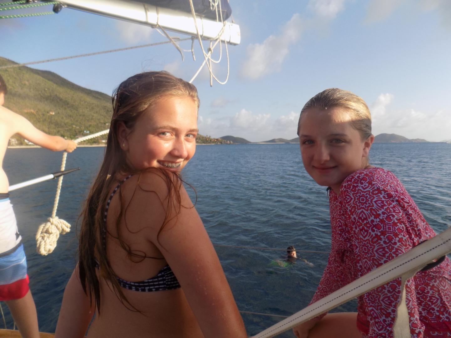 Today was yet another amazing day! We woke up, ate breakfast, and then we got ready to go to The Baths. We stayed at The Baths for two hours, we explored and had loads of fun. After The Baths we sailed to Spanishtown and ate lunch and walked around. After Spanishtown we sailed to Mountain Point. We then jumped off of the boom swing and swam around. After we played in the water we jumped off the boom swing and swam around. After we played in the water we showered off and changed clothes. We ate chili and rice for dinner. We are going to the end of the day with a dive chat! Today was so much fun and the trip is going way too fast. I never want this trip to end!