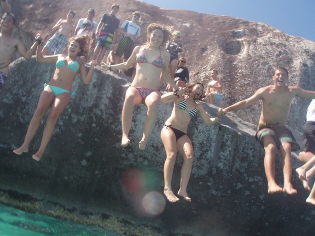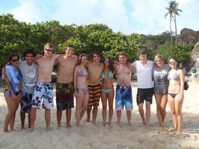 Today we woke up at 6 am to motor over to the Baths. Our boat had a great time jumping off the rocks and went exploring in Devil’s Bay. Almost everyone went in the hollow rock, but Brook and I were too scared to go through the swim through. We spent a couple of hours in Spanishtown. Lunch was full of delicious smoothies, burgers, cold drinks, and ice cream. We took full advantage of any store who had air conditioning. Once we left, we sailed over to Vixen Point, where our boat helped raft all the other sailboats together. Dinner was full of beans and veggie burgers. We cooked enough beans for a small village. Tonight the DMs have 90 pages of reading due (yikes!!) The sunset was a stunning pink-orange. Right now we are cleaning dishes and listening to the younger boat dance and sing! I had a great day, can’t wait to go diving tomorrow!