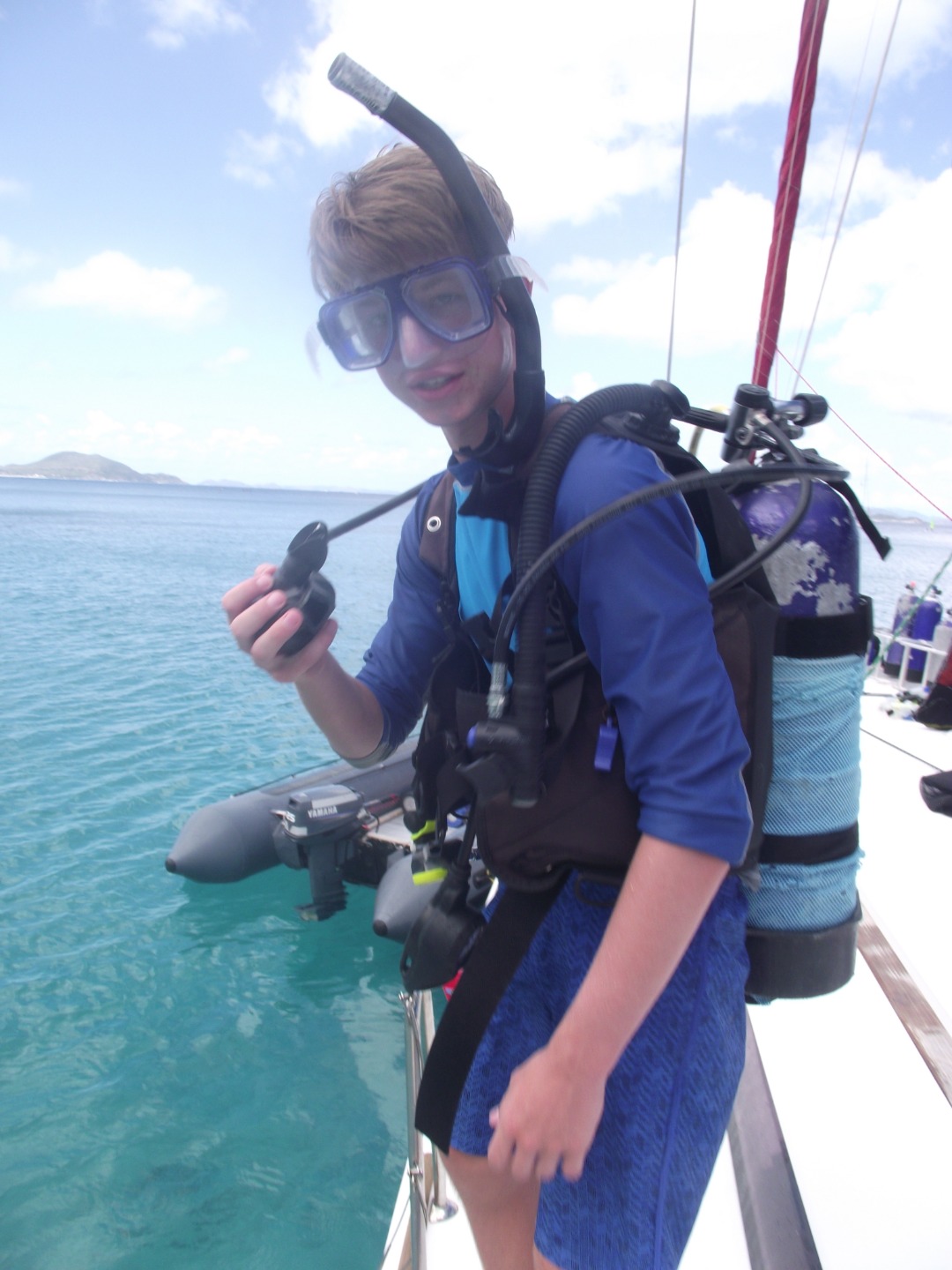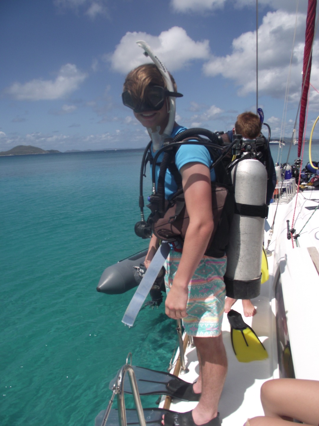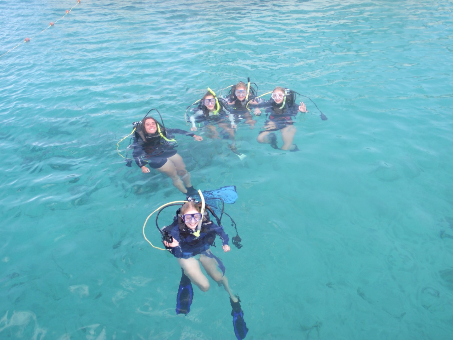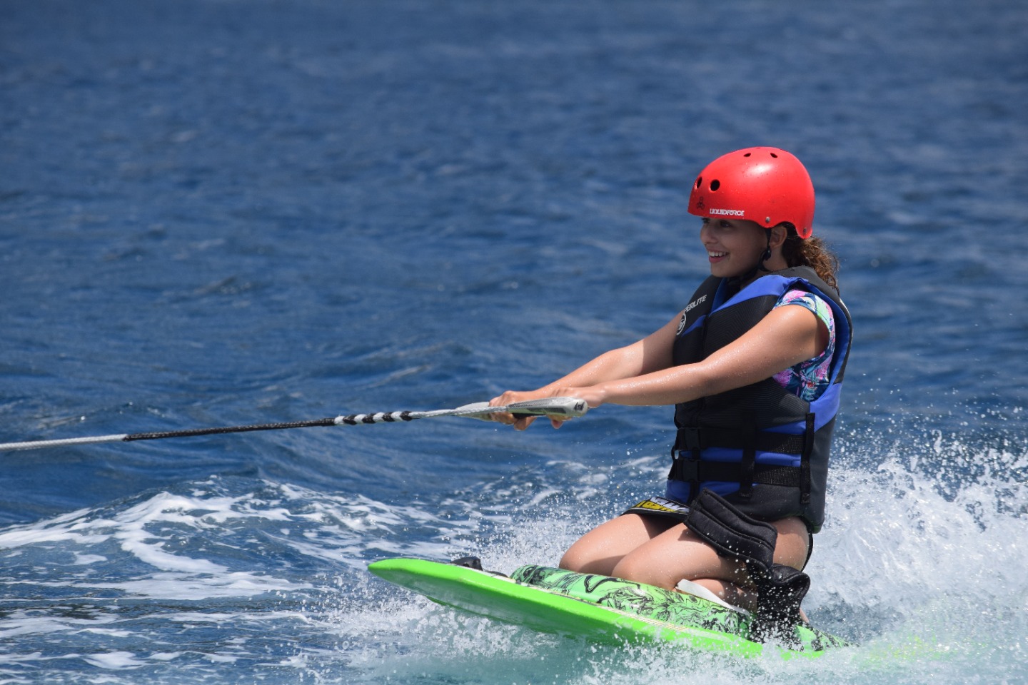 Last night I got a lot of sleep, it was the best I have ever hard. Looking at the stars is really amazing and being on the water is a cool experience. This morning we had a rotation day where we Zested, kneeboarded, tied knots, and went scuba diving. My favorite was the knot tying because its fun to challenge yourself by tying fun knots. Scuba diving was also very fun. The first time I tried it I was not bad, but today I was a bit better. I think it was because the instructors are very informative and patient with you. It was really fun hanging out with my boat family. All of the instructors and kids are really fun to talk to and hang out with. Zesting was really fun also. My friend Lauren and I switched jobs, so it was a new and fun experience just like the first time I Zested. All of the kids and instructors on my boat are very close. All of the other boats are close as well, which I think is great, but not as close as my crew. The scenery here is the most beautiful. The sunsets, underwater, and rock formations are very intriguing. Our squeeze today was also one of the best parts. Getting to know everyone and share/talk was very fun (because I am such an introvert). I know I am not very far into my trip yet but I would definitely want to come back next year.
