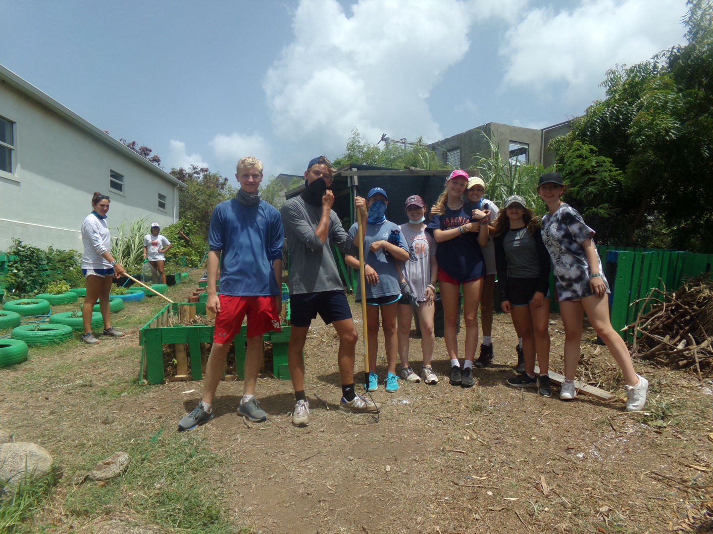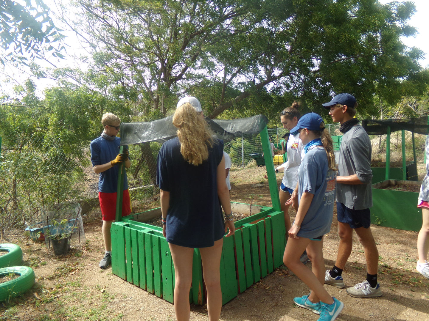 We made mulch and cleaned up gardens. At lunch, we ate lots of PBandJ and had cold water from the school. I had some more coffee with dinner, and Ari taught me how to make bracelets with yarn; it’s very fun. I’m excited to shop and have my phone tomorrow 🙂