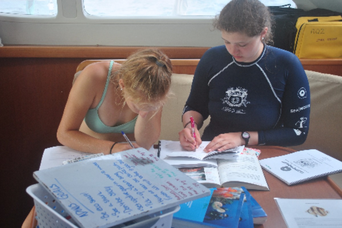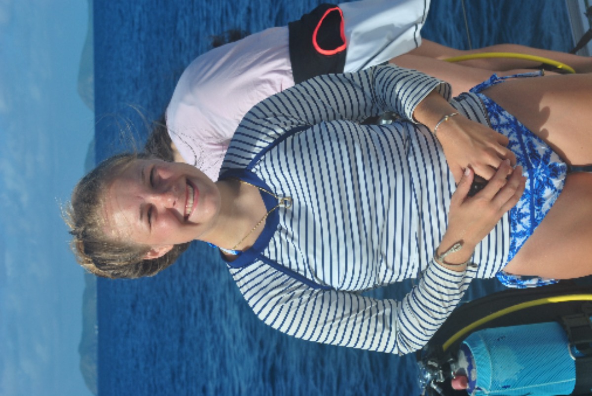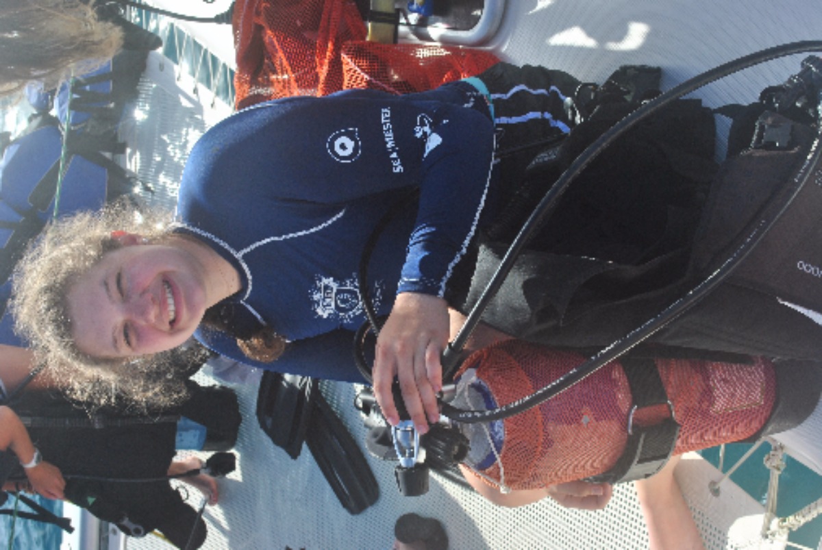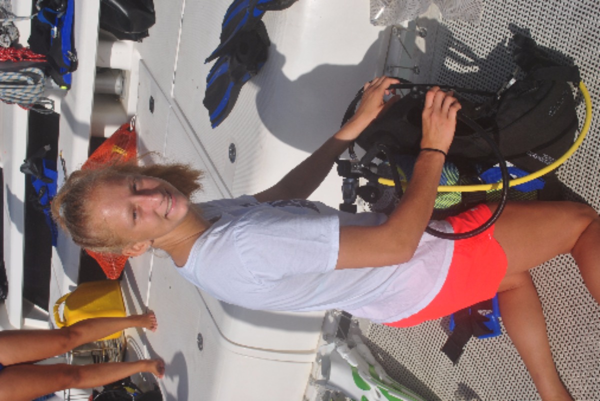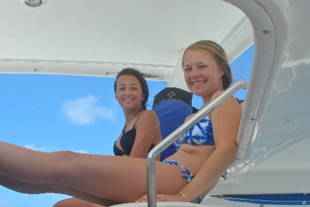 Man, today was crazy. We started with an early 7:00 wake up by Marina, one of our three amazing staff aboard our boat. After this morning’s breakfast of cereal, we geared up and started our earliest dive of the trip so far at 8:30am! We were at 40 feet for about 30 minutes, it was awesome! Then we proceed to sail to Great Dog island and chilled for an hour or two then geared up once again for our second dive at the Chimney’s reef for 45 minutes at 45 feet. There we swam through two sick trenches. Honestly, I forgot how much I missed my family until now… Good thing I have my second family on Adonis!