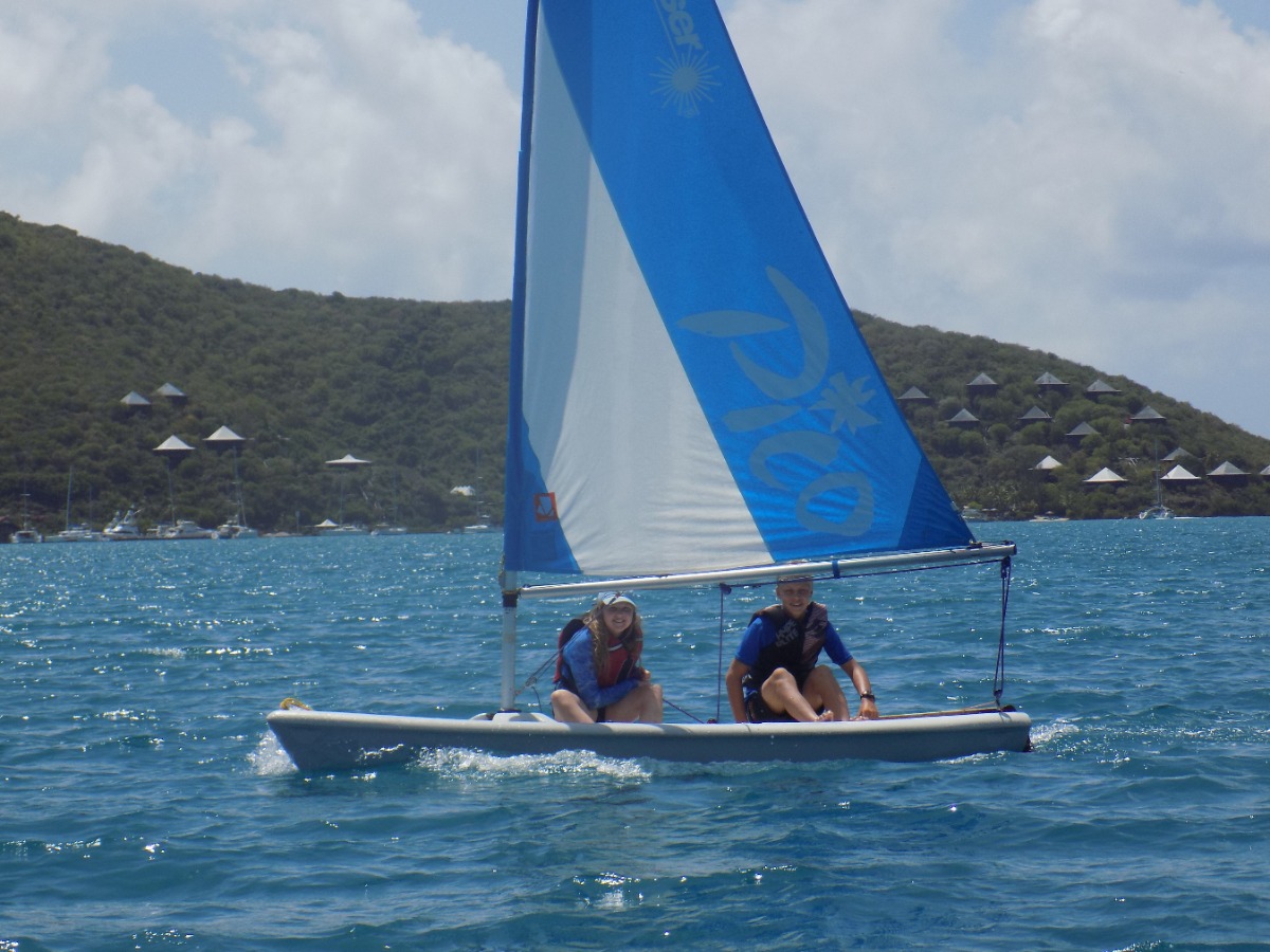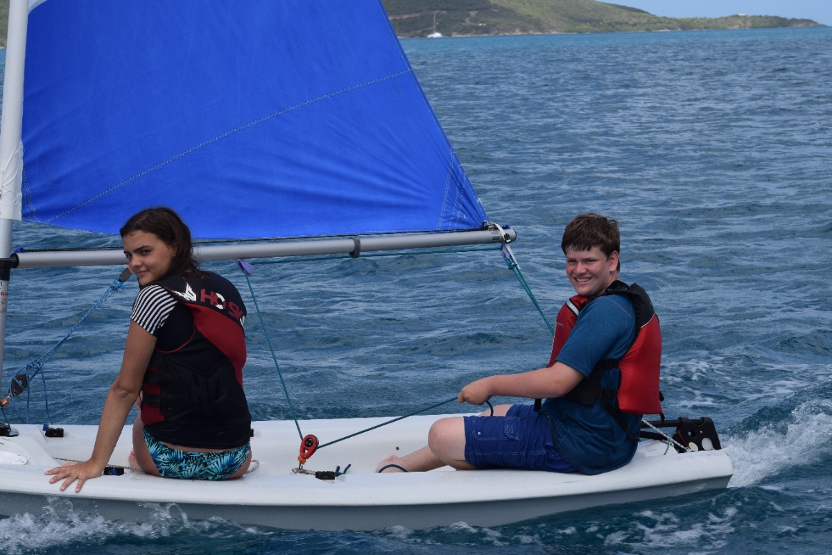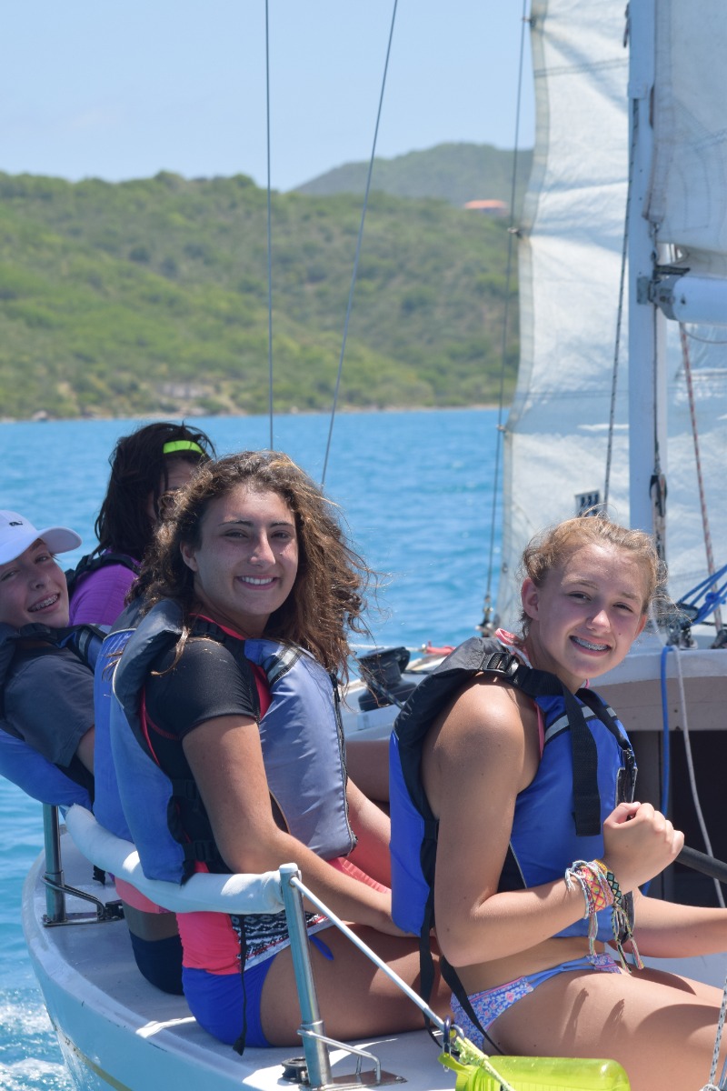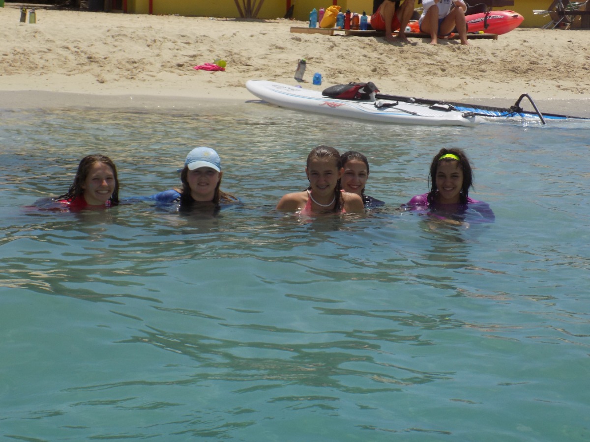 Today was definitely one of the best ones yet! We started the day with a breakfast of cereal, and learned how to use a recreational dive planner. Everyone on our boat was excited to get back on the water and continue to windsurf, waterski, and sail the Picos. After lunch, we tried sailing on the Rhodes 19s and IC 24s, and it was really cool being able to sail on some smaller boats. Our last activity was snorkeling in the mangroves. This was my favorite because we had a chance to explore and see wildlife we had never seen before. Our boat sat down and played cards together as we waited for the signal to get ready for the big beach BBQ. Even after an exciting but long day, we were ready to dance on the beach and hang out with people from other boats. I can’t wait to find out what exciting things we will do tomorrow!