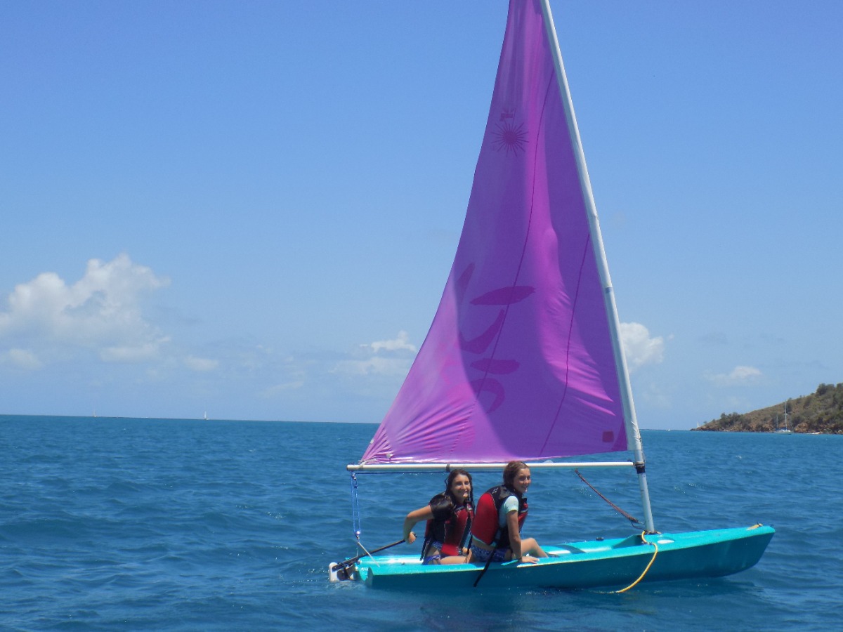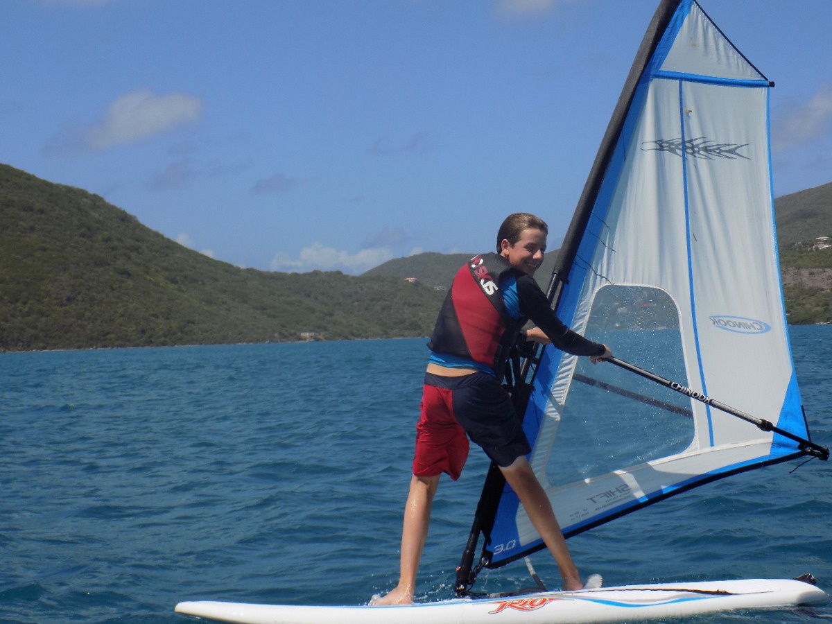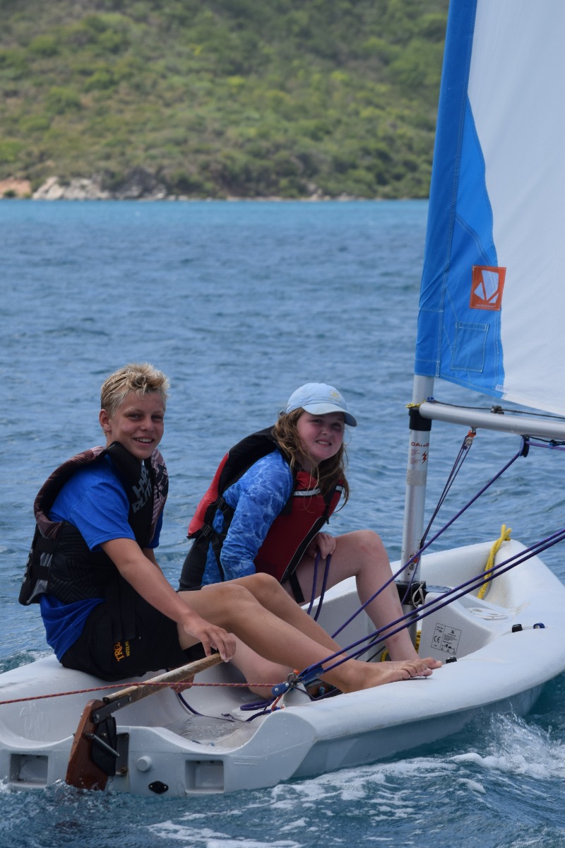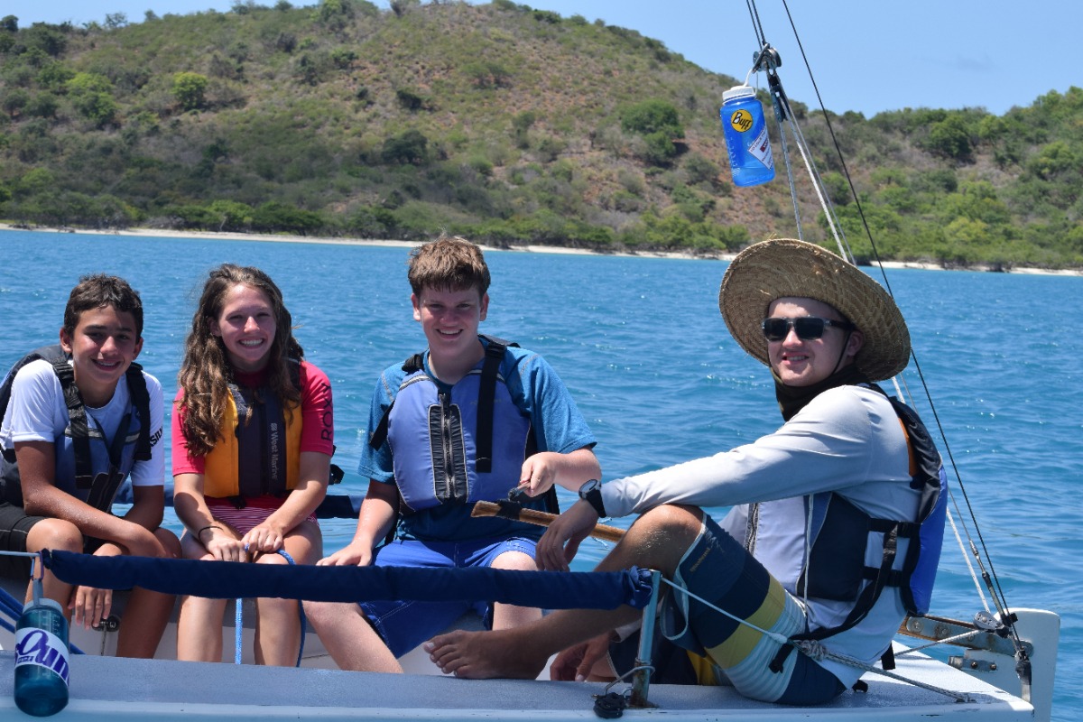 Today was definitely one of the best ones yet! We started the day with a breakfast of cereal, and learned how to use a recreational dive planner. Everyone on our boat was excited to get back on the water and continue to windsurf, waterski, and sail the Picos. After lunch, we tried sailing on the Rhodes 19s and IC 24s, and it was really cool being able to sail on some smaller boats. Our last activity was snorkeling in the mangroves. This was my favorite because we had a chance to explore and see wildlife we had never seen before. Our boat sat down and played cards together as we waited for the signal to get ready for the big beach BBQ. Even after an exciting but long day, we were ready to dance on the beach and hang out with people from other boats. I can’t wait to find out what exciting things we will do tomorrow!