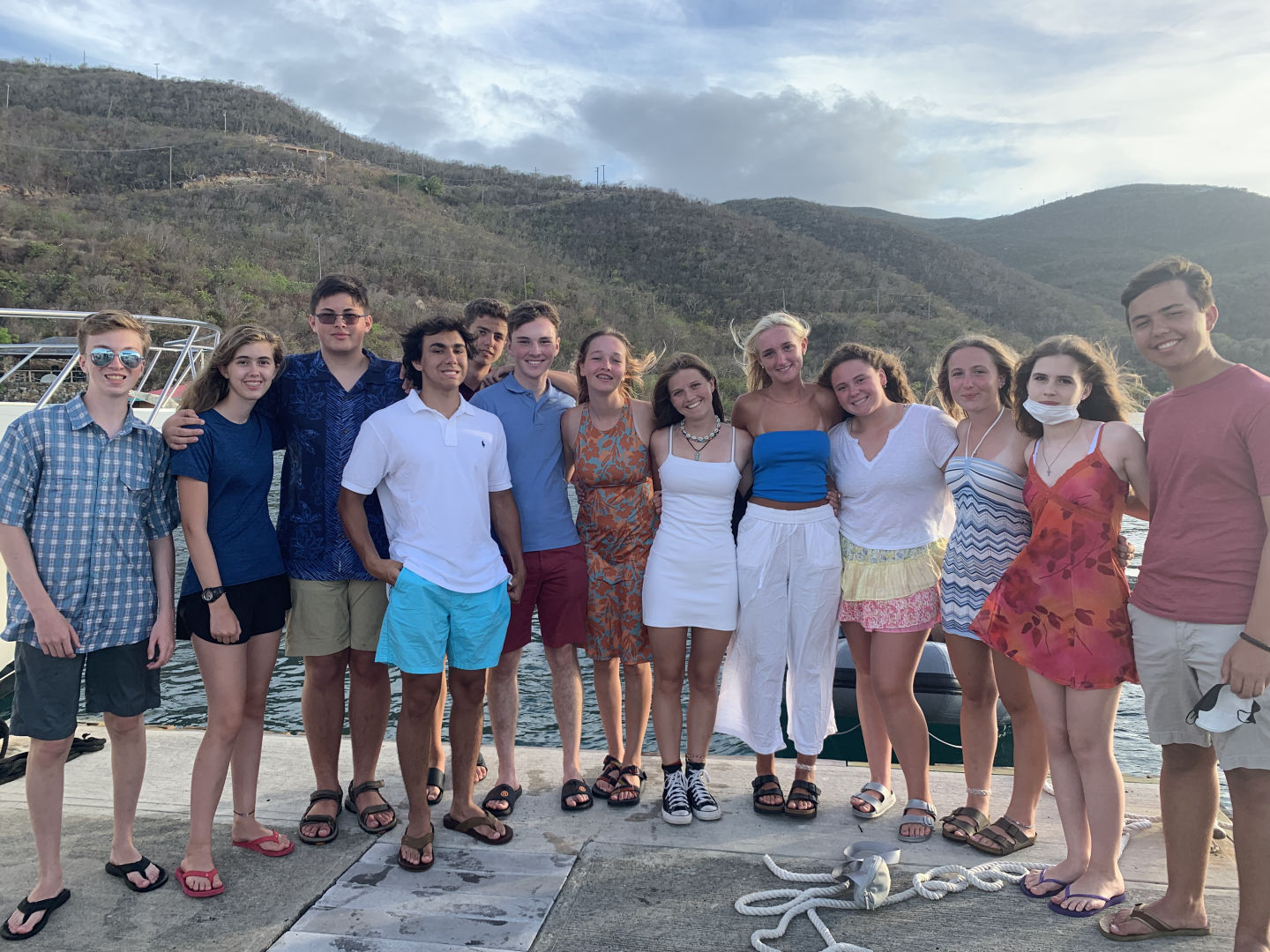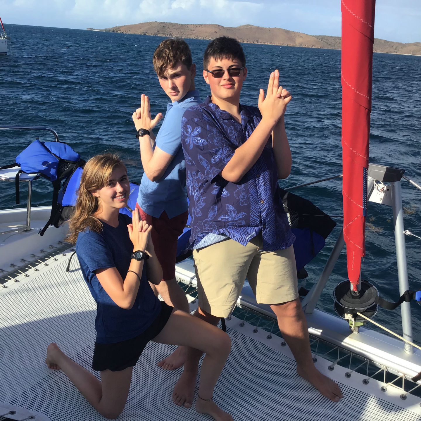 Today we woke up at 7 ish AM after a nice long relaxing, restful sleep on the blue lagoon. We were awoken with a Disney playlist; it was quite relaxing. Josh switched jobs with Megan so he could cook some french toast; it was immaculate because there was Nutella. We then took up our anchor and motored a couple of minutes away and hooked up to a mooring ball. We went to our moon pool and saw a cave while snorkeling with Sam; it was so much fun. After that snorkel, we motored to Leverick Bay and got our phones. And then, we also went shopping at a local grocery store and bought lots of snacks. Sorry, Mom and Dad. Then we had some PBandJ’s for lunch, yummy. Then we snorkeled in the mangroves and saw an octopus. After that, we showered and got ready for the BBQ; we were all super excited.