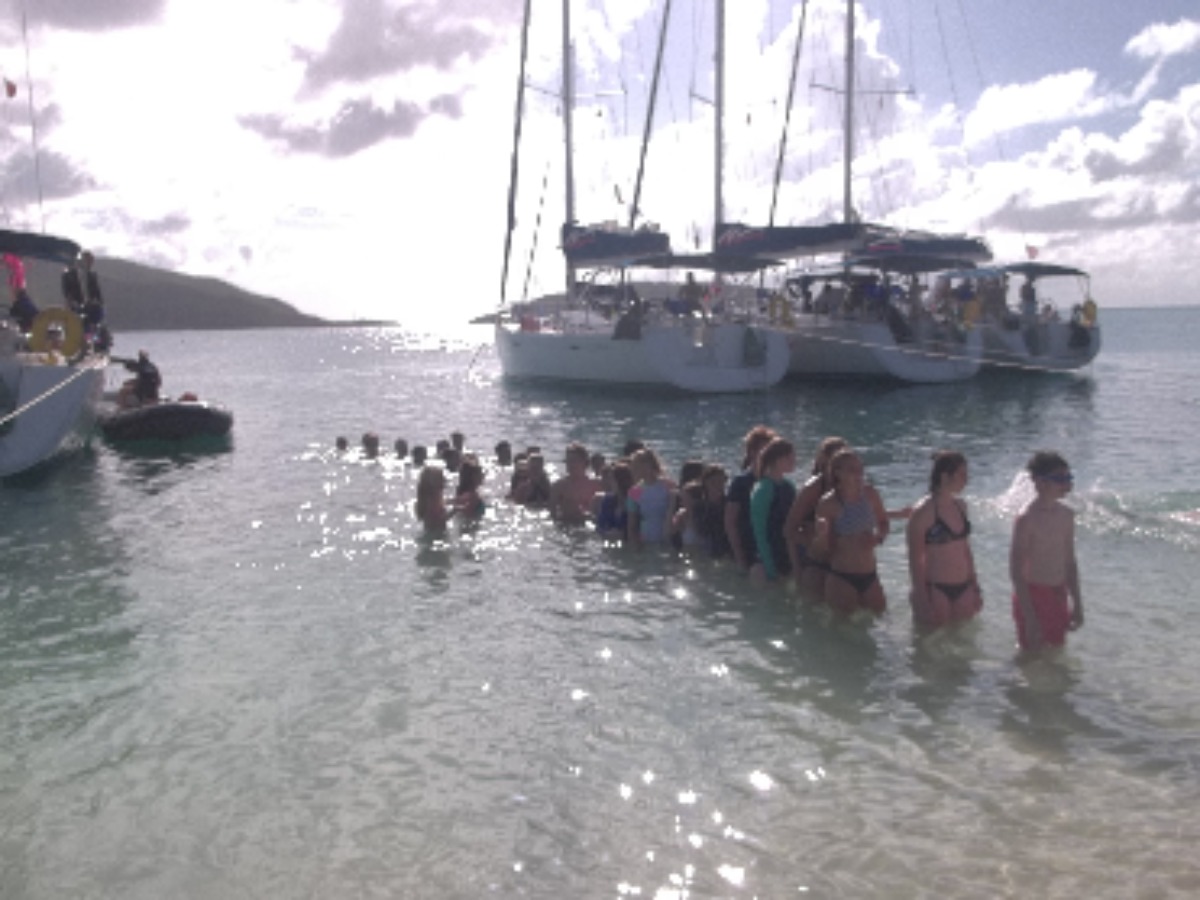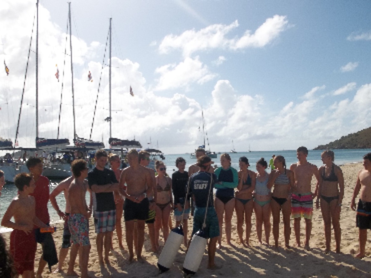 This is our 7th day on our ActionQuest trip, and today did not break our amazing streak of great days! Today started with a beautiful dive in Mountain Point and was followed by shore time in Leverick Bay. Leverick Bay is a beautiful, photogenic resort with a variety of shops and restaurants. After we sailed to Vixen Point, we dinghied to the beach and played games and swam. Today is going to end with the great and powerful DJ Heavy-beats who is the best and only DJ on the island. Today has been a great day and tomorrow will surely be better.