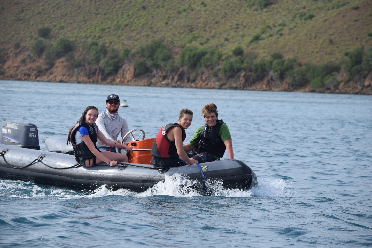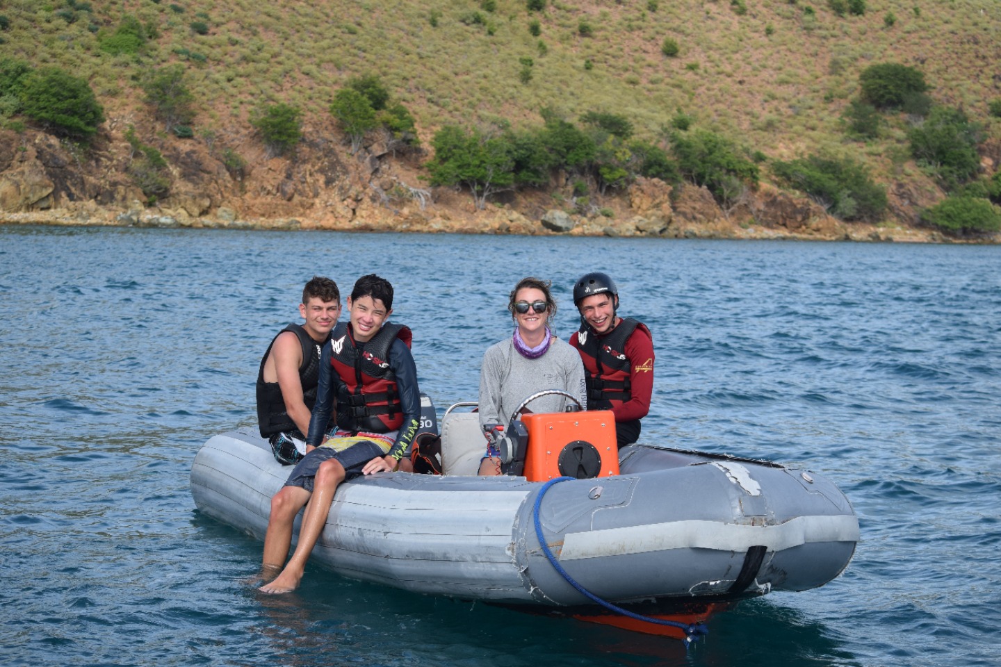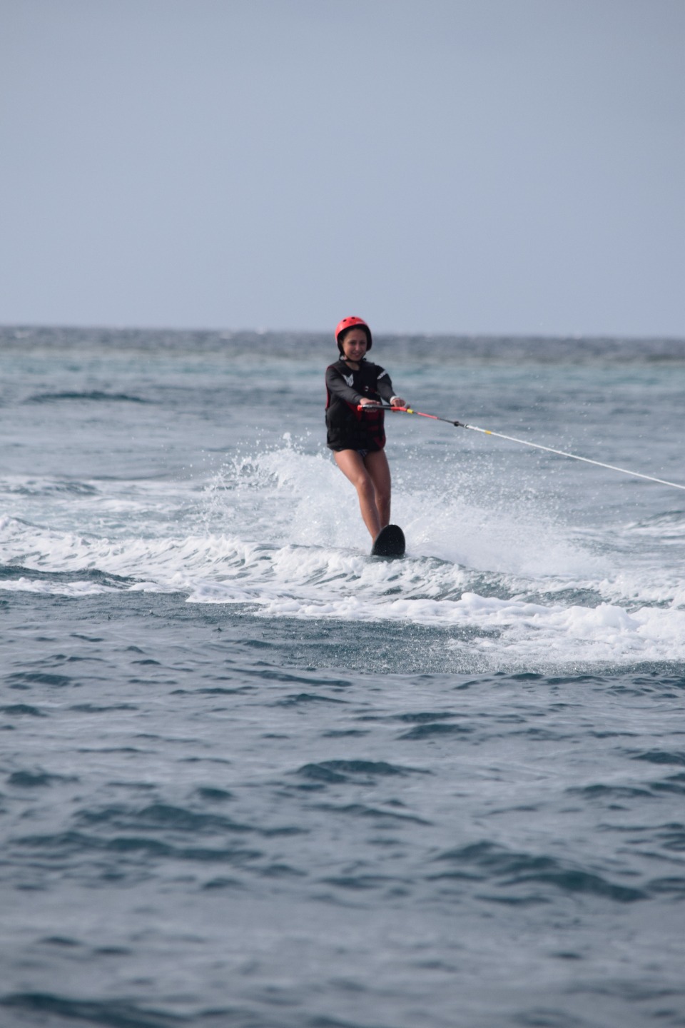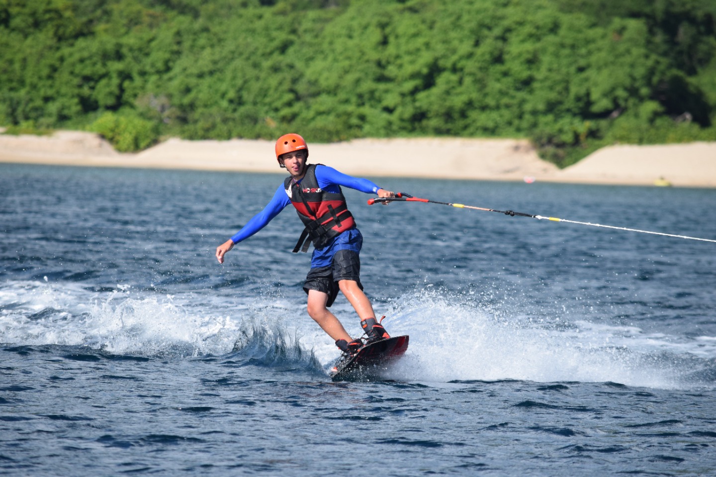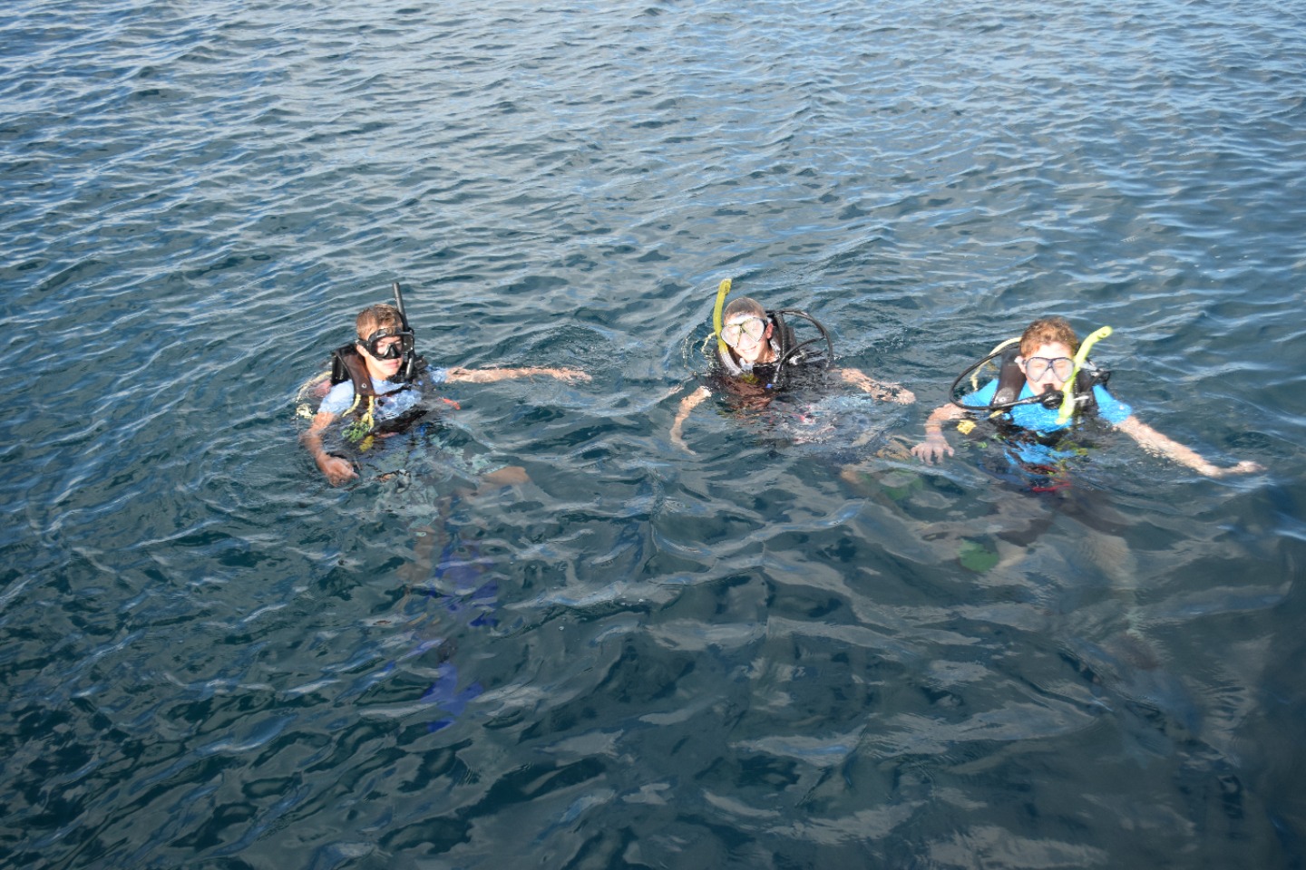 Hola, today the Curls woke up at 7 and had some bagels, muffins, and yogurt for breakfast. It tasted very delicious. After, the open water students took their tests and passed, while the advanced divers did some reviewing and watched a cool video. After both groups went on two dives. They were very rad dives. Then we came back and ate some lunch that I enjoyed. Then we went to Sambamba and went waterskiing! Now I’m a pro at wakeboarding. We played in the water and after took some refreshing showers and watched the most beautiful sunset I have ever seen in my life go down. Finally, we had a great dinner and I got to say it was a pretty all around good day. date: Aug 6, 2017