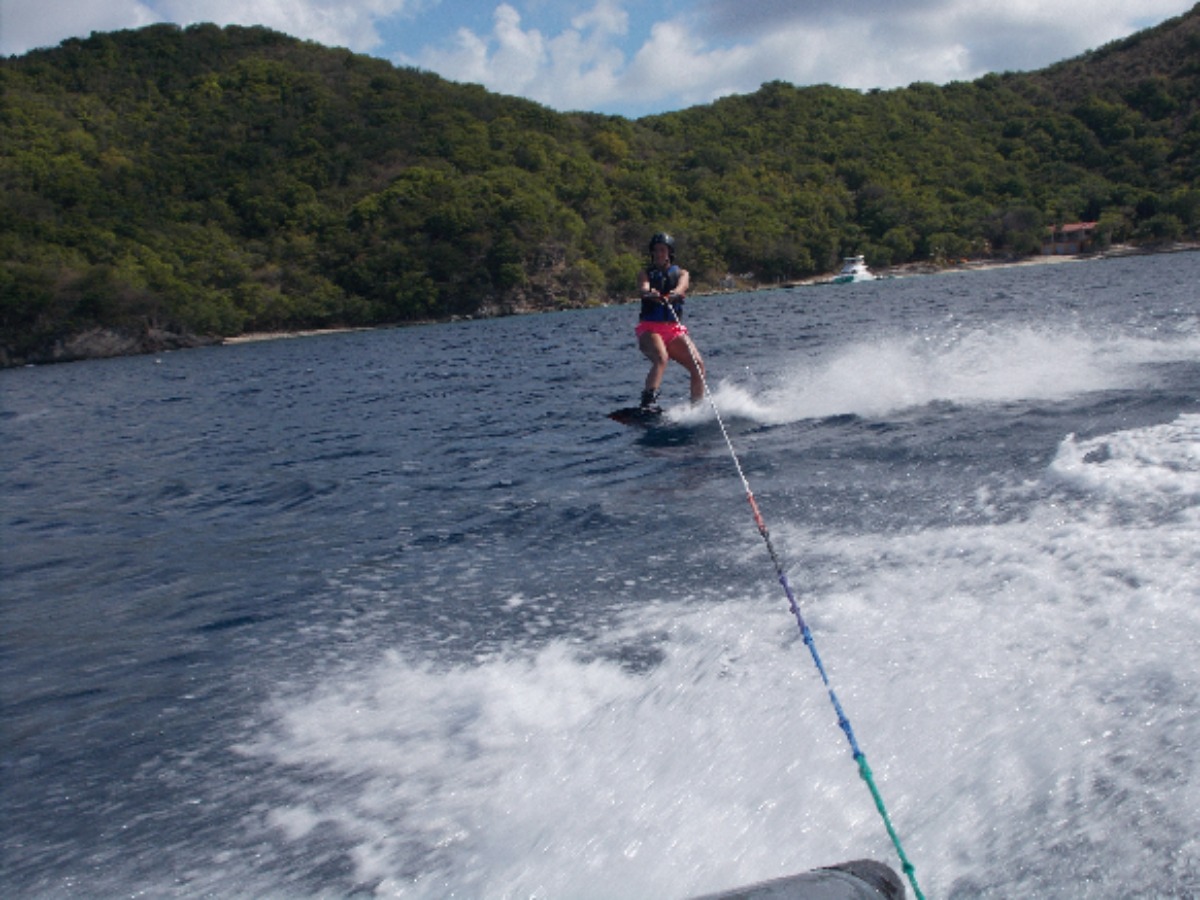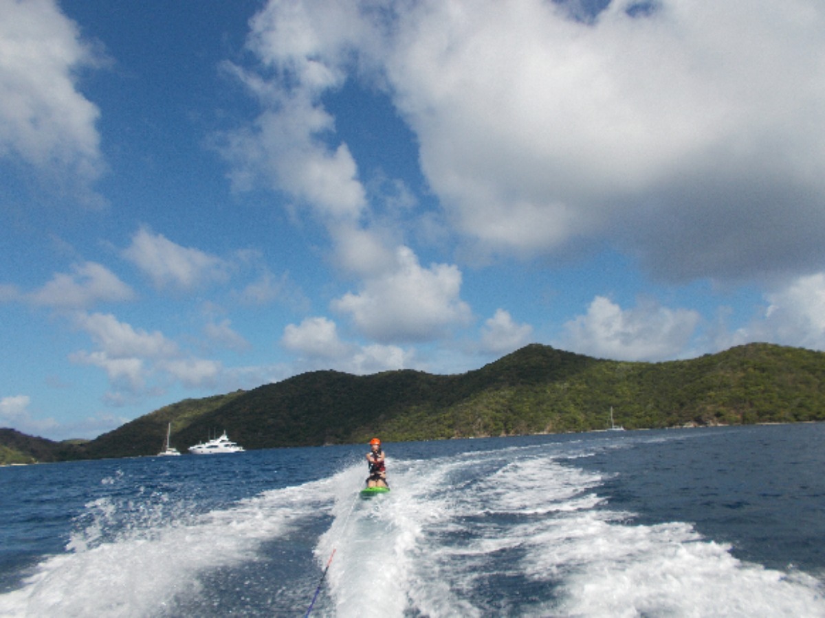 Today started off great. The best staff let us sleep in while we sailed over to Peter Island and did more dives, then we motored over to Great Harbor Peter where we did water sports and Isa, Jacob, Morgan, and Alex did the first rotation of wake boarding, then Luka went wake boarding and we all did great and finally we had the best dinner of the trip, burrito night! We all ate so much, and I know there were a couple of us in food comas. It was amazing!