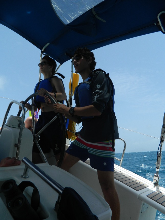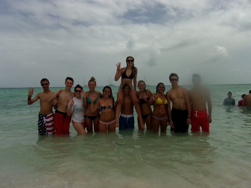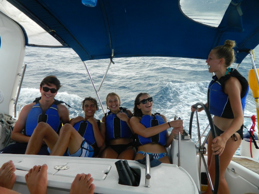 The morning started with Rossi refueling our dinghies and replenishing our water tanks. Our boat was able to walk around the Bitter End Yacht Club, and many of us caught up with our parents. After we took a three-hour voyage to Anegada to meet up with some of the fleets and enjoy a nice afternoon on the beach taking pictures and doing backflips. Once our beach day was off, we sailed to Mountain Point. On the way, we challenged one another with baffling riddles and some great throwbacks like Bohemian Rhapsody. Once we arrived at Mountain Point, the boat showered and got ready for dinner. Tonight McKenna and Kate made an amazing Mexican dinner, which the whole boat loved. The night concluded with our final scuba party preparing us for our first dive in two days. Good night.