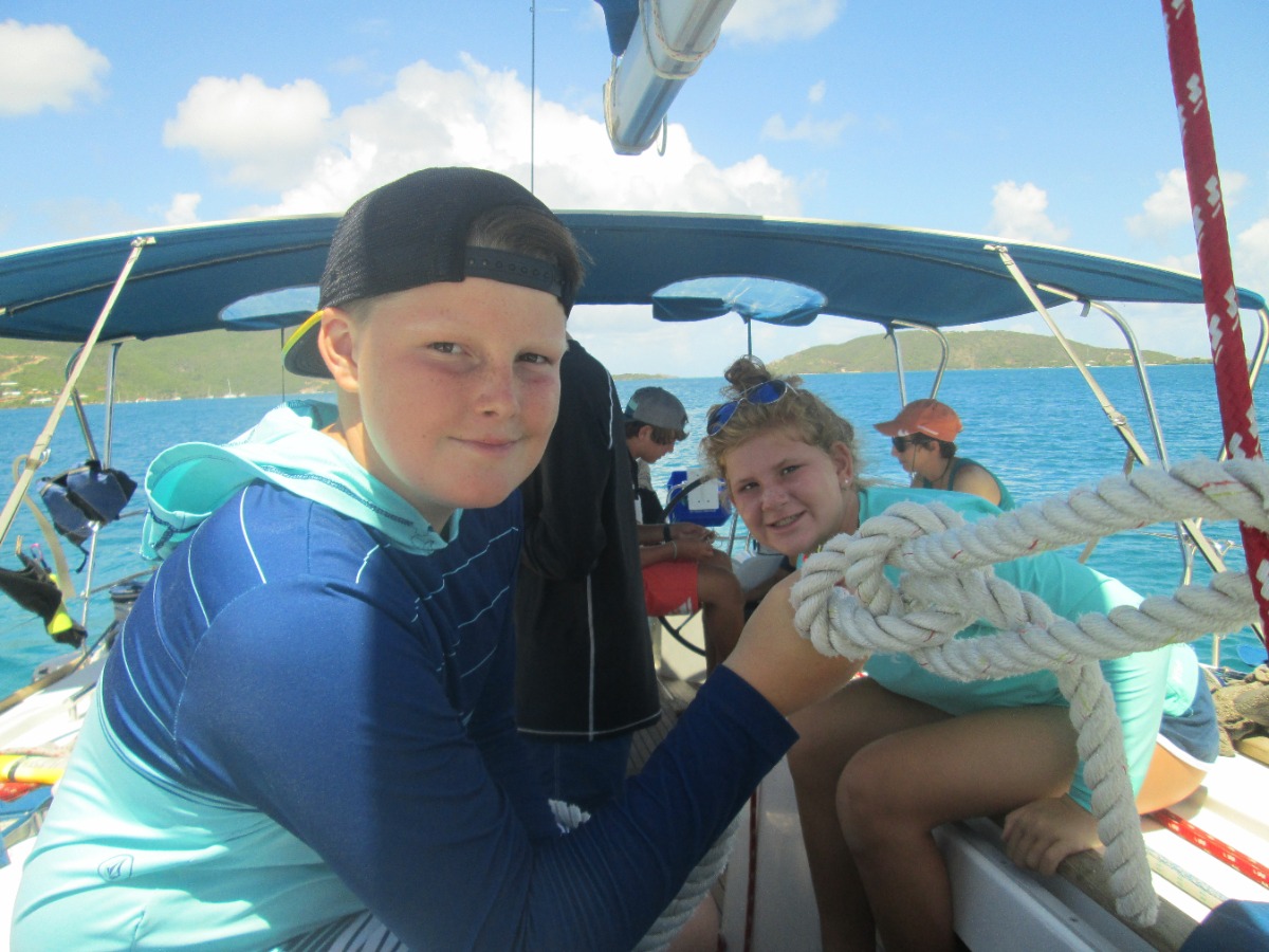 Today was another great and memorable day. This was our second rotation day at Vixen Point. We woke up and ate some oatmeal and then set up our dive gear. After a fun dive, we came back to Sailing Curls with time to chill until the next rotation. People were laying up on the bow or having a good time in the cockpit. The second rotation was learning new knots. We learned the cleat, half hitch, clove hitch and figure eight. We made our way into lunch by making some PB&Js and turkey sandwiches. We cleaned the dishes and made our way to sailing. We went out with a partner and got to sail Picos for 40 minutes. It was such a blast. Devin and I got to capsize two times and turtle the boat. Sadly, the day was coming to an end. We made our way to Rhodes and got to sail around the harbor for a little while. After making our trip back to Sailing Curls from Mike, we cleaned up and got ready for dinner. We then had a sail chat from Gwen. I hope tomorrow will be as fun as today was! P.S. It was Mexican night and it was amazing. Thanks to the chef, Alex!