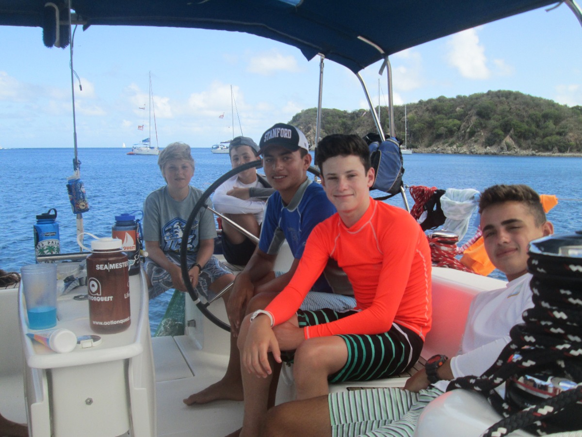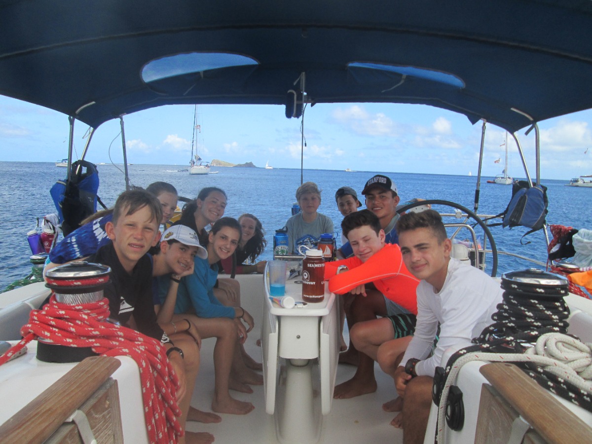 After an amazing night at the BBQ, the crew headed back to the boat. In the morning, we had a rude awakening; someone had stolen all of our silverware. Therefore, we had no spoons for oatmeal! Luckily, Taylor came up with a great solution; we used serving spoons, Brian tried to use a knife. After that, we piled on our dinghy, Workboat, to go to perfect our sailing techniques on the Rhodes. The crew split between two, some saw turtles (our crush count is now 16). When the rotation ended, we ate deli sandwiches and PB&Js. While we were getting ready for lunch, Alex realized that someone took two water jugs!! The rest of the day was filled with knot tying and Pico sailing. We wrapped up the day with Mexican food made by Brian and Taylor. Sincerely, Clark.