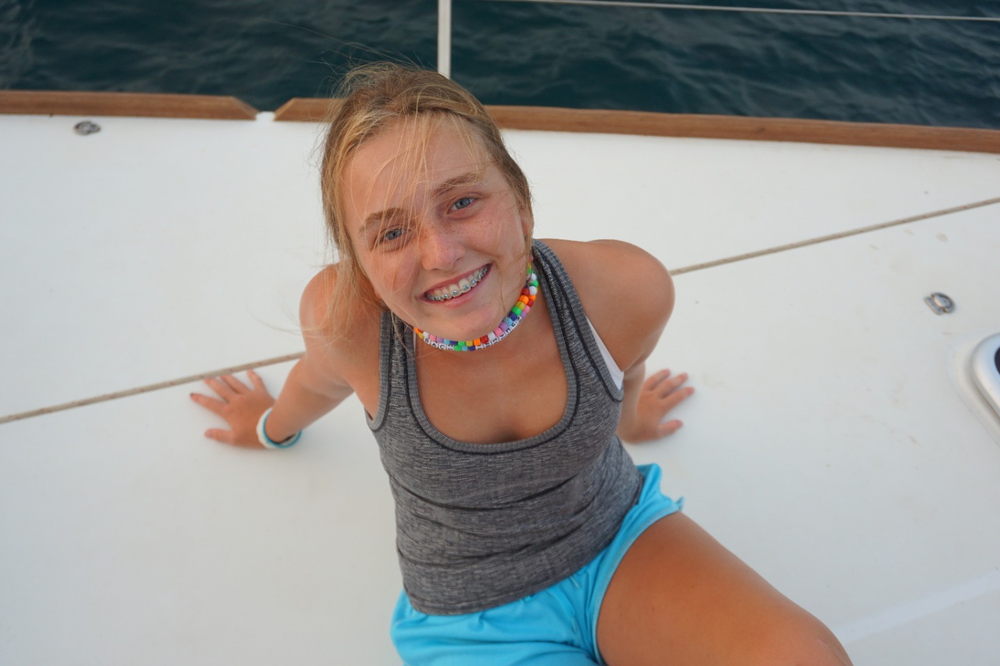 Today was awesome! We woke up early and ate cereal, cleaned the dishes, and got ready to start the day. Then we sailed to our next stop, practicing jibes with a different person on the helm and mainsheet every time. After a little break of changing into our swimsuits and putting on sunscreen, we took a dinghy onto a boat named Tropical Oasis. We sorted into our groups and assembled our scuba gear, putting the BCD strap on the scuba tank, and getting the regulator on as well. We then took a giant stride off the side of the boat, and started a 30-minute dive, practicing skills and swimming through the coral reef. Some of the groups saw lobsters, baby nurse sharks, tons of jellyfish, lionfish, sea urchins, puffer fish, and lots of coral. After we concluded our dive with a three-minute safety stop at 15 feet underwater, we got our gear disassembled and got shuttled back to our boat. After, when we sailed to get fresh water, we freshwater showered. When we finished filling the boat up with water, we moved to another place and anchored there for the night. We ate pasta for dinner, had a Lifeworks chat, and listened to a speech by Jim Tuman and got ready for bed, hanging the hammocks up and setting up the blue lagoon. Everyone talked for a few minutes and fell asleep. I can’t believe we are halfway through! I’m so excited for what tomorrow brings!