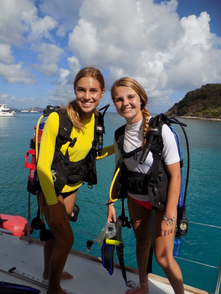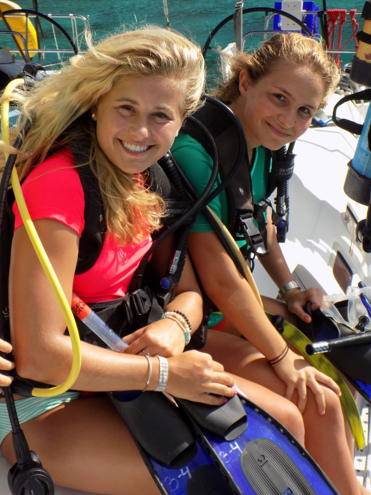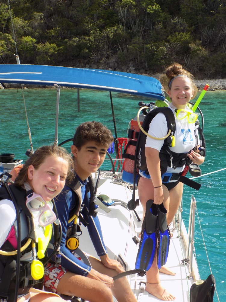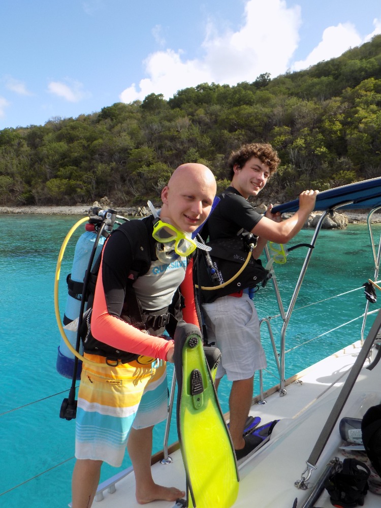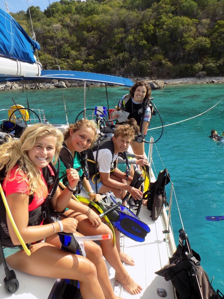 Today is Wednesday June 23rd, the 9th day of our adventure. It’s hard to believe how fast the time is going. Seems like only a day or two ago we were sitting awkwardly around the cockpit introducing ourselves and scouting out the situation. Little did we know just one week later we would be some of the closest of friends. It makes me a little sad to think the we are more than a third of the way done with our trip, but when I look back at how much we did in the first 9 days I realize I still have all the time in the world to learn new things, make new friends and create priceless memories with the friends I’ve already made. But lets take things one step at a time. The skipper yesterday may gave written about this, but I will briefly sum up our misadventure. After a quick stop at Leverick Bay, Virgin Gorda; we sailed about 10 knots to the Northwest in the island of Anegada. We had a nice picnic on the beach, then raised anchor at about 4 pm. The water was a little choppy, but aside from that it appeared we would have smooth sailing all the way to Mountain Point. It wasn’t to be however as when we went to longline the dinghies the tow line got caught in the propeller. Our staff members attempted to untangle the propeller, but after a few unsuccessful attempts, we decided to leave it until we could dive on it with SCUBA tanks. At this point it was a little after 6 pm and the sun goes down at 7. Seeing as we were barely off the shore at Anegada and it was a 2 hour sail we realized we were in for the first night sail of our lives. We turned on the navigation lights, played some music, and got ready to party. We talked, danced, and laughed all night and it was great fun. We finally made it to Mountain Point about an hour and a half after the sun went down, did our scuba chat, and went to bed. Morning came quick, as we had to move the boat at 7 am and work up at 6. Mike came over and fixed our propeller, we moved the boat, and started getting ready for a long day After a quick breakfast of bagels and yogurt, we rode over to the dive boat and completed out confined water dive. We came back to our boat for a brief navigation lesson, then had a power lunch of chicken Caesar salad and risotto. It was a quick turnaround because we got out on the boats for some water-sports and capped our day off with some small boat Pico sailing. Our boat settled down for a quick nap before showering and starting to make dinner. Then, we got a surprise call, Mike, the Director of AQ, was going to have dinner on our boat. We made Squeaky brat look squeaky clean and had an amazing dinner of Mexican food with Mike. We sat around and chatted for a little, then the highlight of the day began. It started when Mike pulled out these old postcards. We were pretty lost, but he gave simple enough instructions. Pick one that symbolizes something you’re proud of and one that symbolizes something you want to change. Finally, pick one that symbolizes what true friendship means to you. It was so amazing to see how my shipmates thought of themselves and their friendships. My friend Marissa showed incredible courage by telling the group some really personal stuff and letting a lot of weight off her chest. In all, it was awesome to see everyone open up like that. Unfortunately this had come to an end and we said our goodbyes to Mike. We washed up, swabbed the decks and settled in for our final SCUBA chat. Our Instructor, Annie (aka Mom), explained dive compasses and underwater navigation before giving us the final quiz. The tension is in the air as tomorrow is the big day, the final test. Right now it is about 11:15 PM but it feels much later after the big day. I will wrap up this entry the same way I began it. The fact that 9 days of our trip have already passed is so bittersweet. Not only because we are almost halfway done, but also because we have plenty more time for great experiences.
