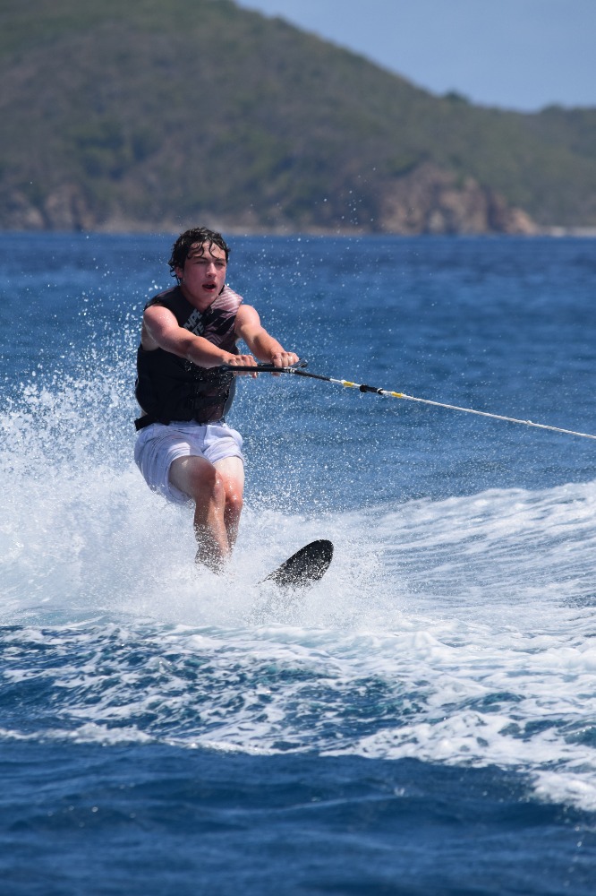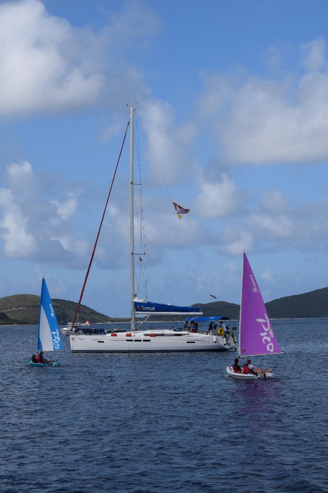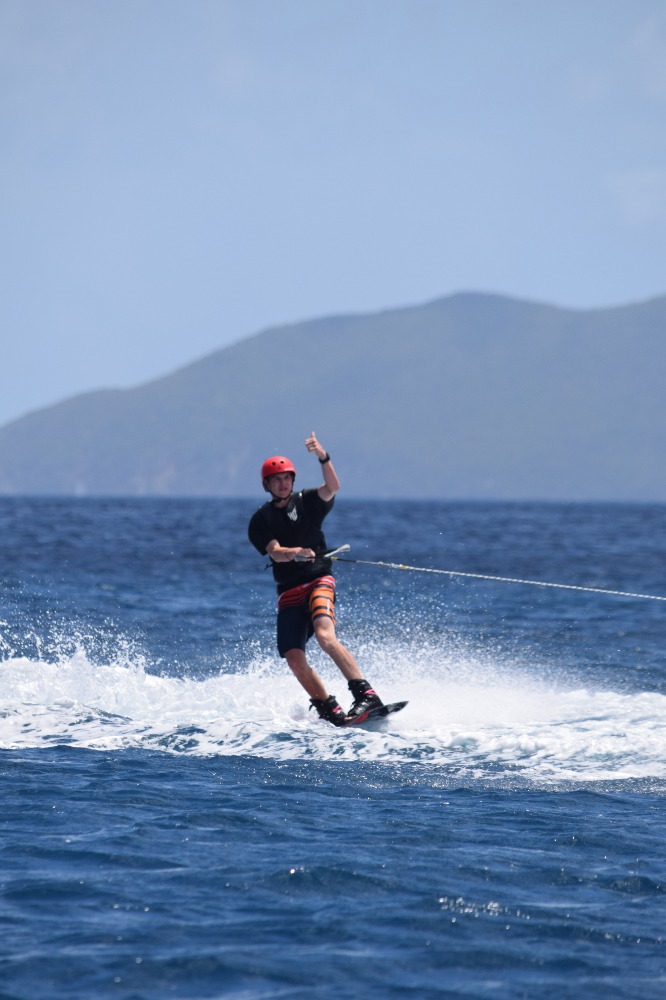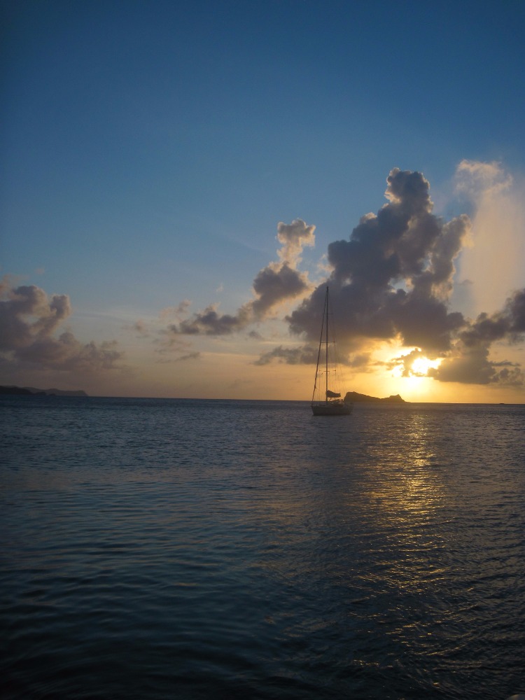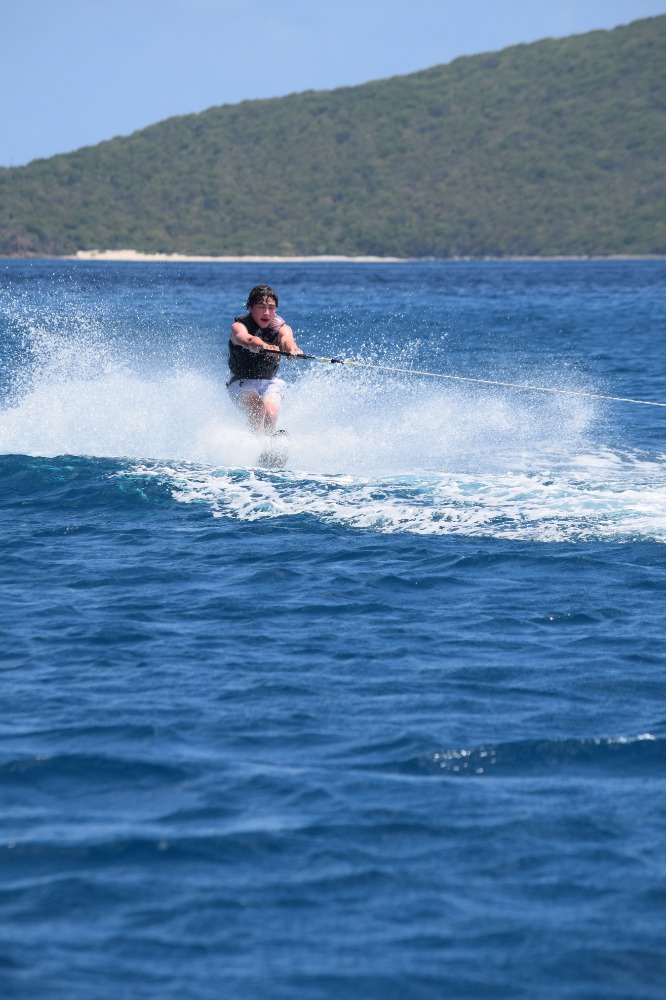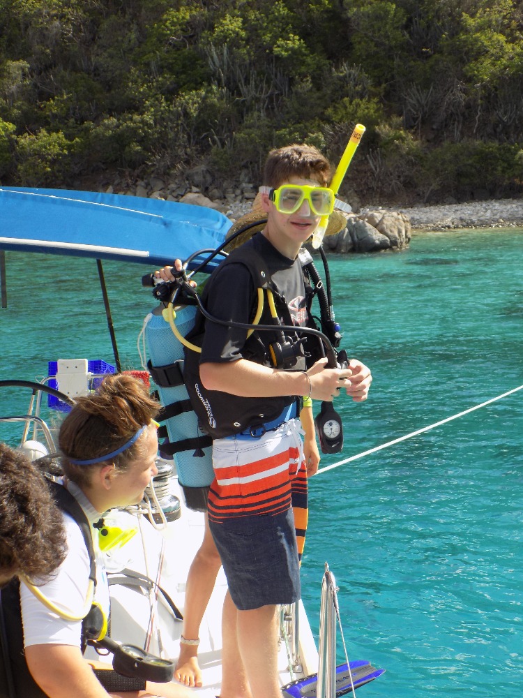 Today is Wednesday June 23rd, the 9th day of our adventure. It’s hard to believe how fast the time is going. Seems like only a day or two ago we were sitting awkwardly around the cockpit introducing ourselves and scouting out the situation. Little did we know just one week later we would be some of the closest of friends. It makes me a little sad to think the we are more than a third of the way done with our trip, but when I look back at how much we did in the first 9 days I realize I still have all the time in the world to learn new things, make new friends and create priceless memories with the friends I’ve already made. But lets take things one step at a time. The skipper yesterday may gave written about this, but I will briefly sum up our misadventure. After a quick stop at Leverick Bay, Virgin Gorda; we sailed about 10 knots to the Northwest in the island of Anegada. We had a nice picnic on the beach, then raised anchor at about 4 pm. The water was a little choppy, but aside from that it appeared we would have smooth sailing all the way to Mountain Point. It wasn’t to be however as when we went to longline the dinghies the tow line got caught in the propeller. Our staff members attempted to untangle the propeller, but after a few unsuccessful attempts, we decided to leave it until we could dive on it with SCUBA tanks. At this point it was a little after 6 pm and the sun goes down at 7. Seeing as we were barely off the shore at Anegada and it was a 2 hour sail we realized we were in for the first night sail of our lives. We turned on the navigation lights, played some music, and got ready to party. We talked, danced, and laughed all night and it was great fun. We finally made it to Mountain Point about an hour and a half after the sun went down, did our scuba chat, and went to bed. Morning came quick, as we had to move the boat at 7 am and work up at 6. Mike came over and fixed our propeller, we moved the boat, and started getting ready for a long day After a quick breakfast of bagels and yogurt, we rode over to the dive boat and completed out confined water dive. We came back to our boat for a brief navigation lesson, then had a power lunch of chicken Caesar salad and risotto. It was a quick turnaround because we got out on the boats for some water-sports and capped our day off with some small boat Pico sailing. Our boat settled down for a quick nap before showering and starting to make dinner. Then, we got a surprise call, Mike, the Director of AQ, was going to have dinner on our boat. We made Squeaky brat look squeaky clean and had an amazing dinner of Mexican food with Mike. We sat around and chatted for a little, then the highlight of the day began. It started when Mike pulled out these old postcards. We were pretty lost, but he gave simple enough instructions. Pick one that symbolizes something you’re proud of and one that symbolizes something you want to change. Finally, pick one that symbolizes what true friendship means to you. It was so amazing to see how my shipmates thought of themselves and their friendships. My friend Marissa showed incredible courage by telling the group some really personal stuff and letting a lot of weight off her chest. In all, it was awesome to see everyone open up like that. Unfortunately this had come to an end and we said our goodbyes to Mike. We washed up, swabbed the decks and settled in for our final SCUBA chat. Our Instructor, Annie (aka Mom), explained dive compasses and underwater navigation before giving us the final quiz. The tension is in the air as tomorrow is the big day, the final test. Right now it is about 11:15 PM but it feels much later after the big day. I will wrap up this entry the same way I began it. The fact that 9 days of our trip have already passed is so bittersweet. Not only because we are almost halfway done, but also because we have plenty more time for great experiences.