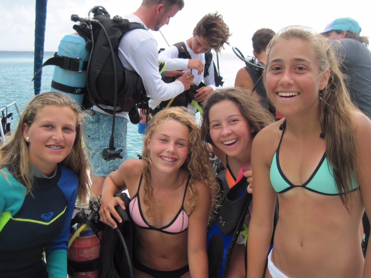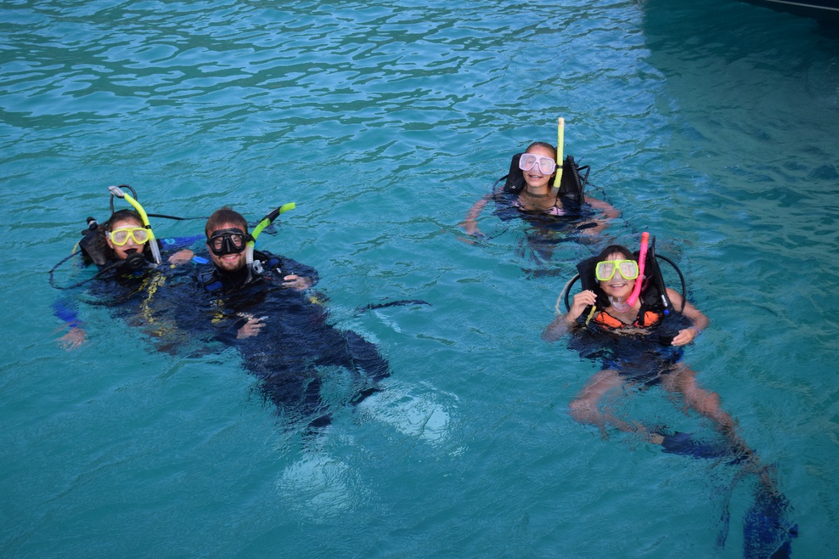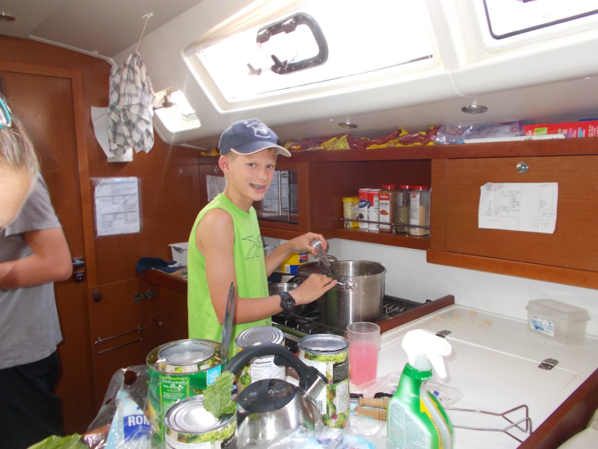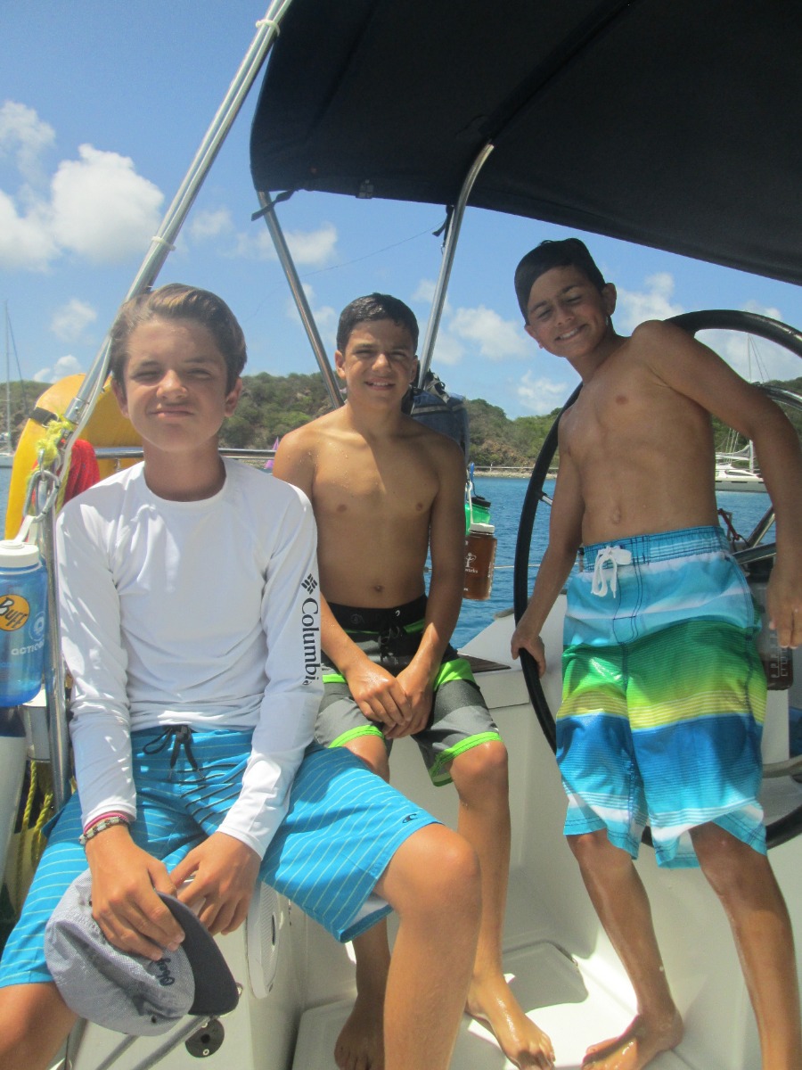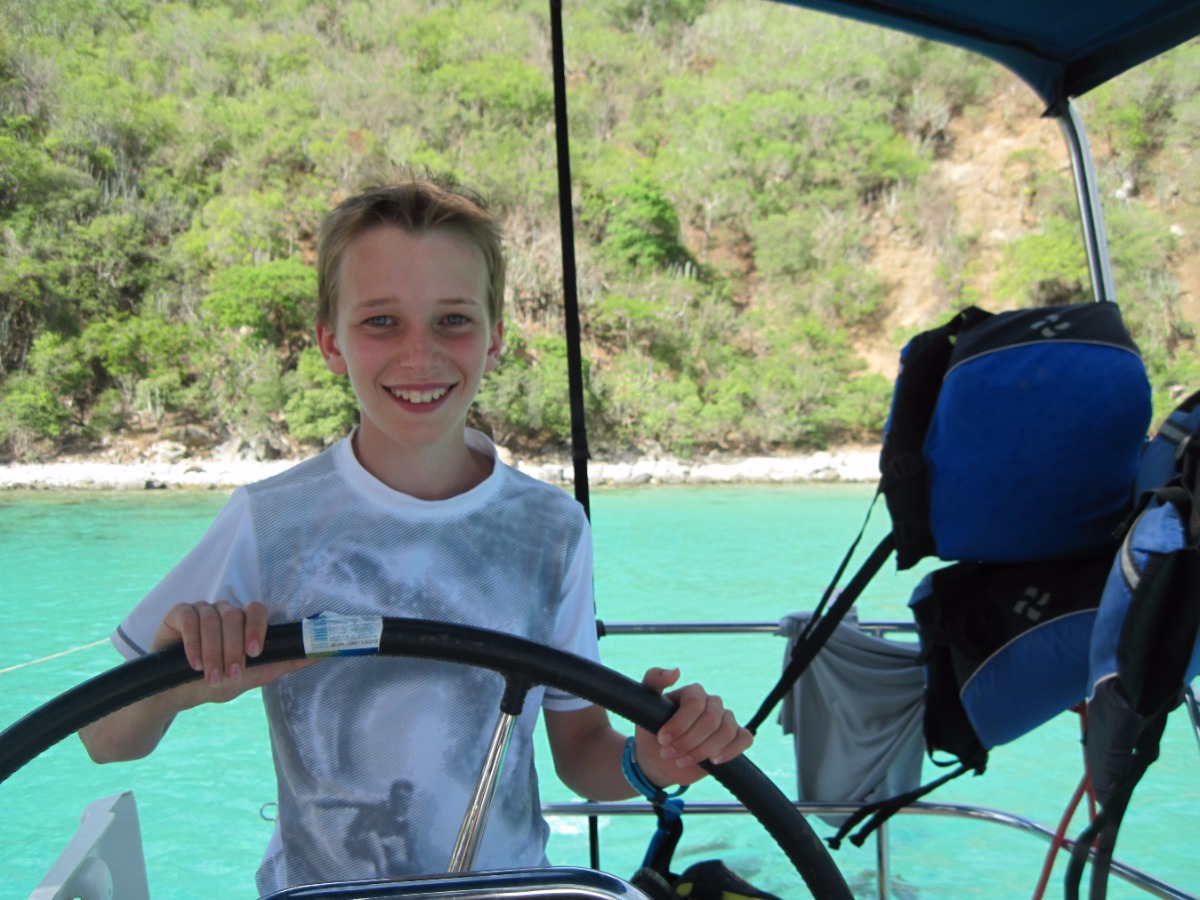 At 8:00 am, Jess and Fritz guided us on how to tack and jibe with the jib all by ourselves! Although we were an hour late for practicing this because of breakfast, we still had a lot of fun. After that, Jess taught us types if ships, formations of lights and what different types of buoys mean. Once we were done with that, we had Tuscan White bean soup for lunch. After lunch we went to go practice scuba diving, it was very fun. We learned many ways to assist divers when they’re distressed, how to help yourself when you’re in distress and how to put back on your gear if it falls off underwater. Once we were done with diving we came back to the boat to find out that we didn’t have to do any more sail chat! Instead of class we all got to sit out and go swimming and review knots that we have been learning for the past couple of days. After hanging out for two hours, we had chicken Caesar salad and rice for dinner. Wondy and Fritz made most of the dinner and it was delicious! After dinner we had the squeeze, which is an activity we do after dinner. The question I asked was ‘If you only had day to live, what would you do?’ In the squeeze, everyone holds hands and answers the questions. Overall was an extremely fun day, scuba diving was my favorite!