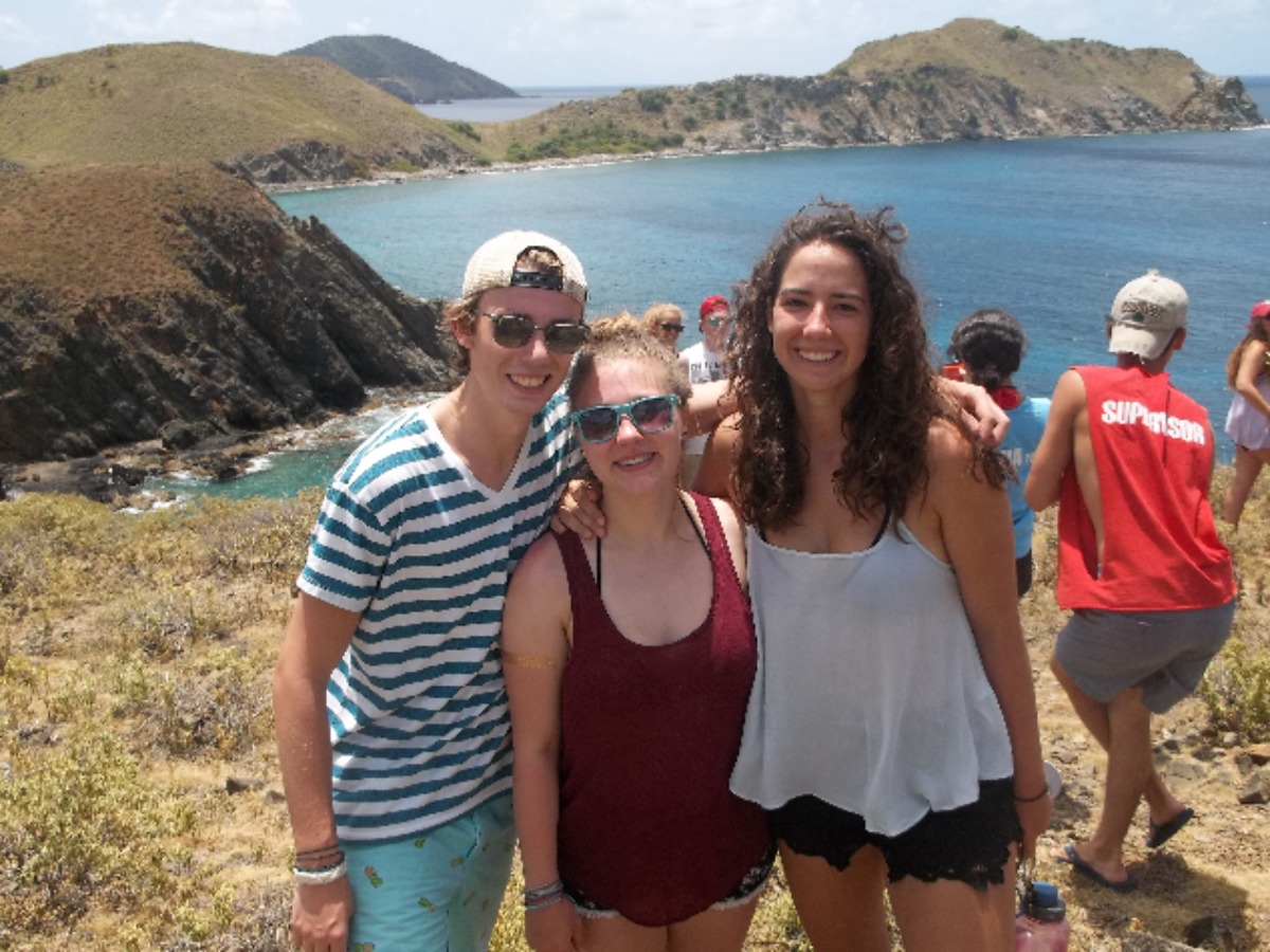 Today we did many things. Those things included diving on the Rhone, hiking, knee boarding and we are now about to go on a night dive. Only a couple of people went knee boarding because of the limited time, but it was really fun when standing up on your knees. The only time I fell was after I crossed the wake. Then we dived the Rhone. The Rhone was a boat that went down and now is a diving wreck. It was a great swim through with eels, squid, puffer fish and many others. It was also the only dive we are going on where people died. Some of the people were saved by citizens of Salt Island where we later hiked. During the hike with all of dive side, we learned that the Queen thanked the people by letting them live there nearly rent-free. The only rent they paid was a single bag of salt each year. The Queen uses that salt for her Christmas dinner each year. The hike also consisted of many pictures. After hiking we went turtle tagging, which was jumping our of a boat and chasing turtles to tag and then we catch them. We didn’t catch any of them, but it was a lot of fun. Later on tonight in about 10 minutes, we will be doing a night dive that we snorkeled earlier today and Cat made brownies. Today was a good day.