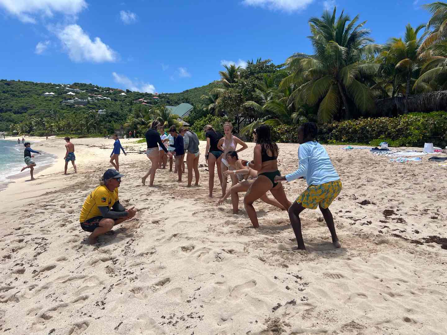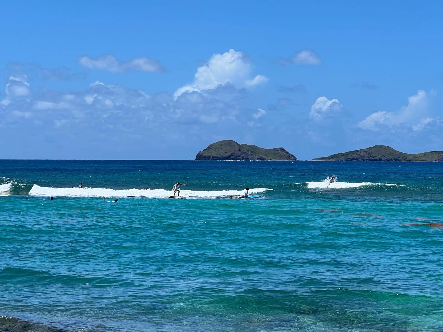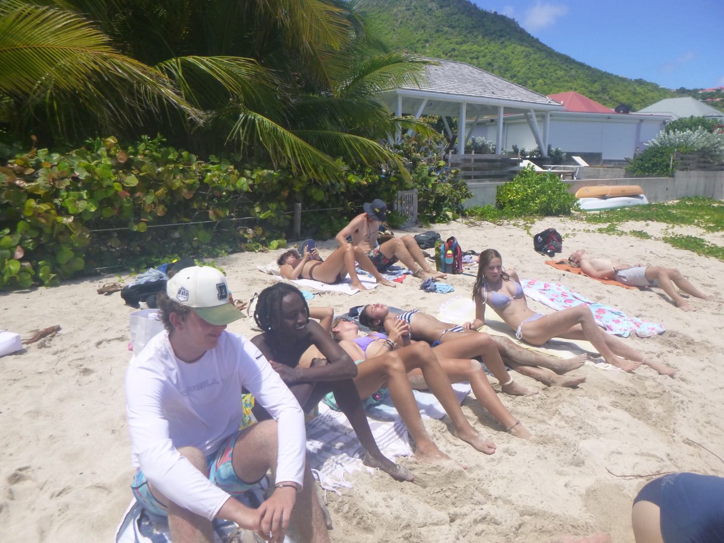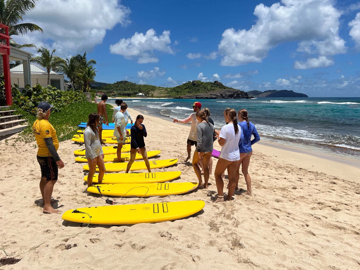 Around 9, it was time to head out and find our taxi that would take us and Frenchie to the beach, where we would be learning how to surf. As we had our 20-minute taxi over, we saw different parts of St. Barths, including the infamous Nikki Beach. Once we all arrived at the beach, we had about 45 minutes of chill time. Some people tanned and swam, and others went on a beach walk.