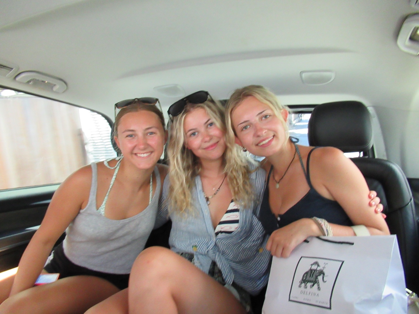 After some chill time, it was time for a group demonstration of the basics of surfing. This was done in the sand, so as you can imagine, there was sand everywhere. Once the instructor signed off on our basic form it was time for group one to start their session. Group one consisted of Sadie, Scarlett, Peyton, Evan, and Roman. During their session, everyone managed to catch a wave! While group one was surfing, the rest of us went to this French bakery down the road. We all ate some delicious food and enjoyed it in some nice air conditioning which is a luxury to us. We also got some baked goods, which consisted of some amazing tiramisu, beignet, and chocolate eclairs.