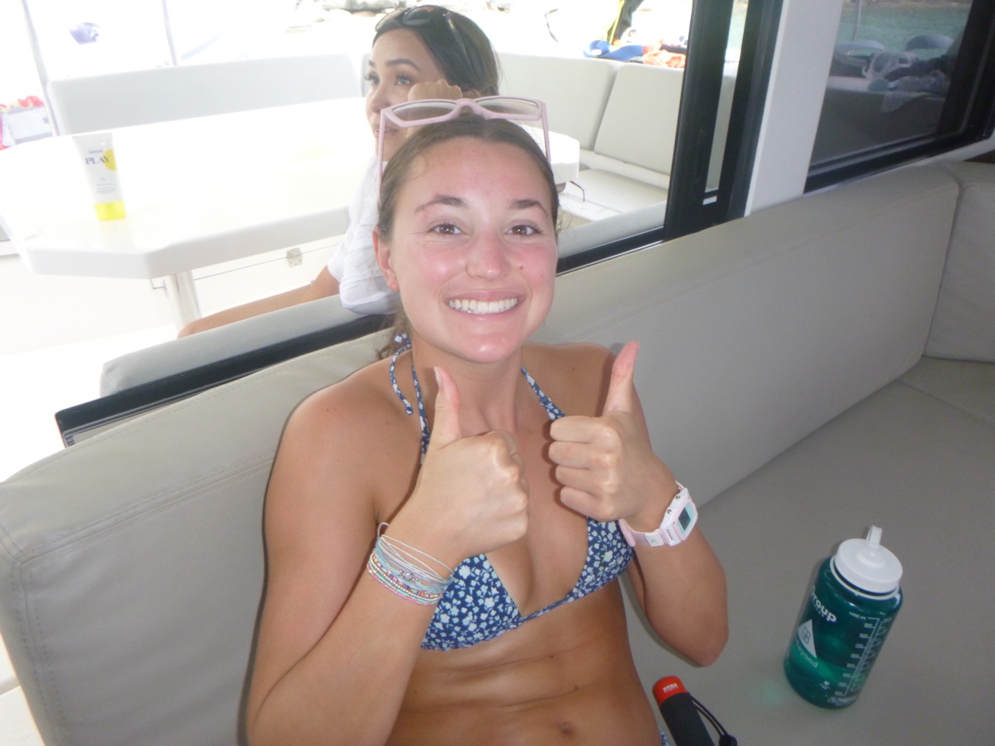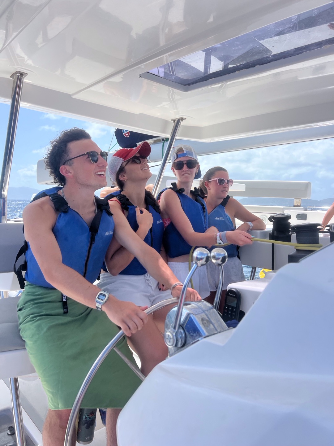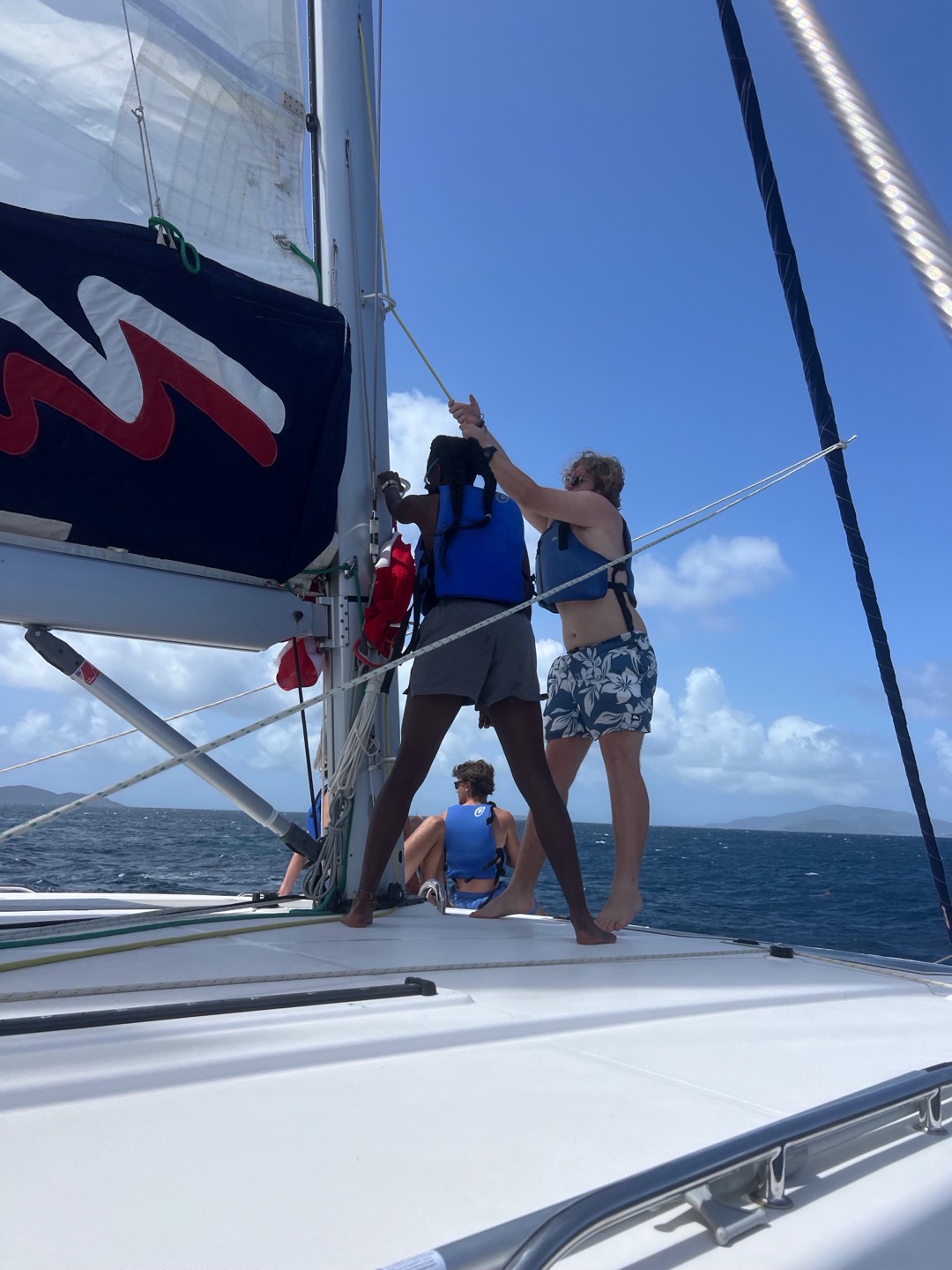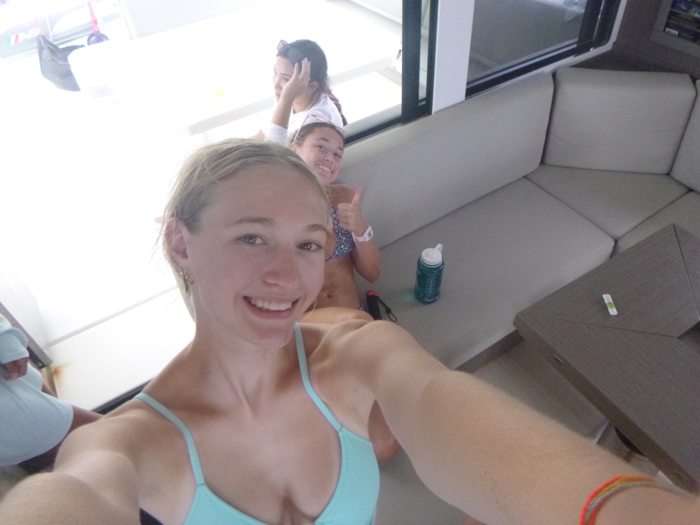 Meanwhile, Lily and Alli flipped the zest sailboats a couple of times but did great and learned a lot. Aggie kneeboarded and Juliette wakeboarded, and they both did some crazy tricks. After this, we came back to the boat and had some delectable chicken sandwiches and leftover pasta ๐ yummy. We rehydrated, and Tyler, Avi, Hayden, and Jake went on some tank runs to refill our diving tanks and bring fresh ones.