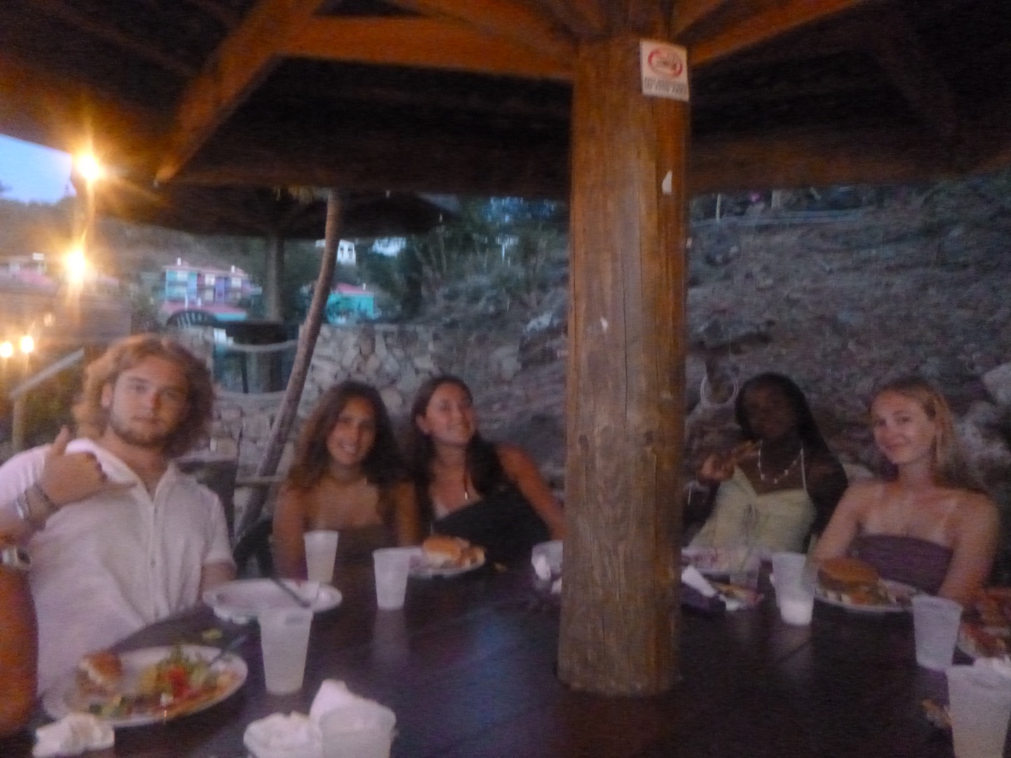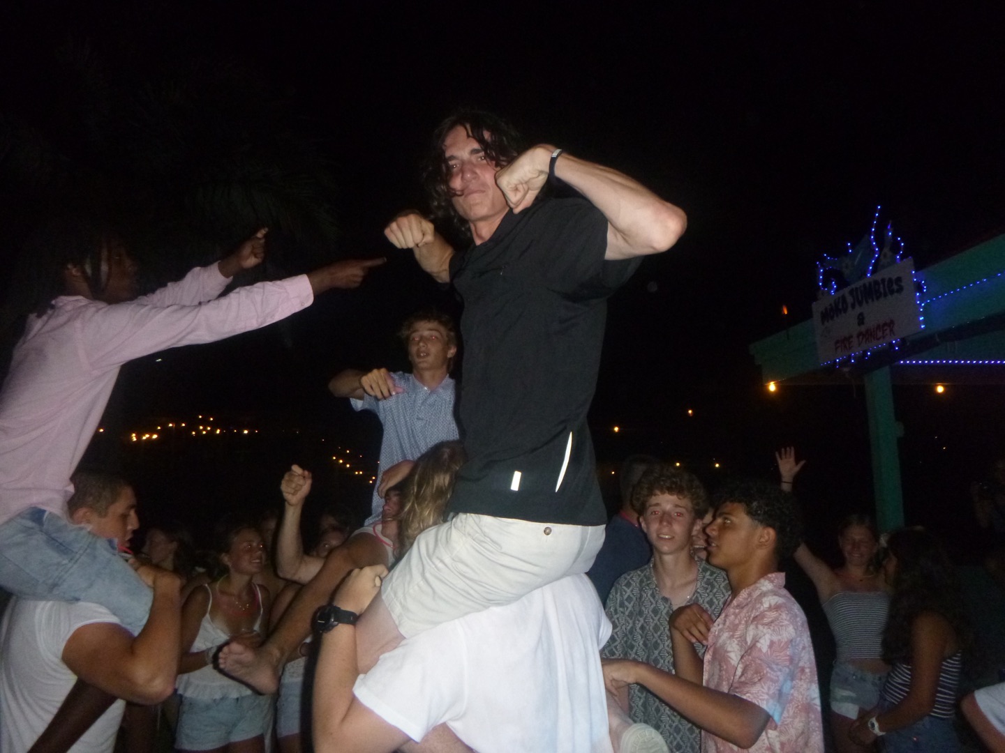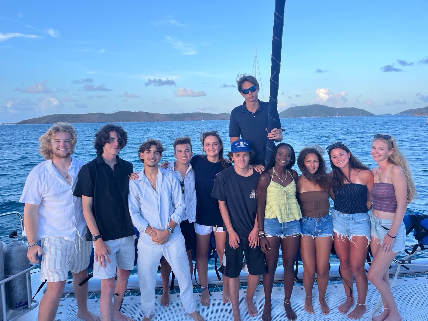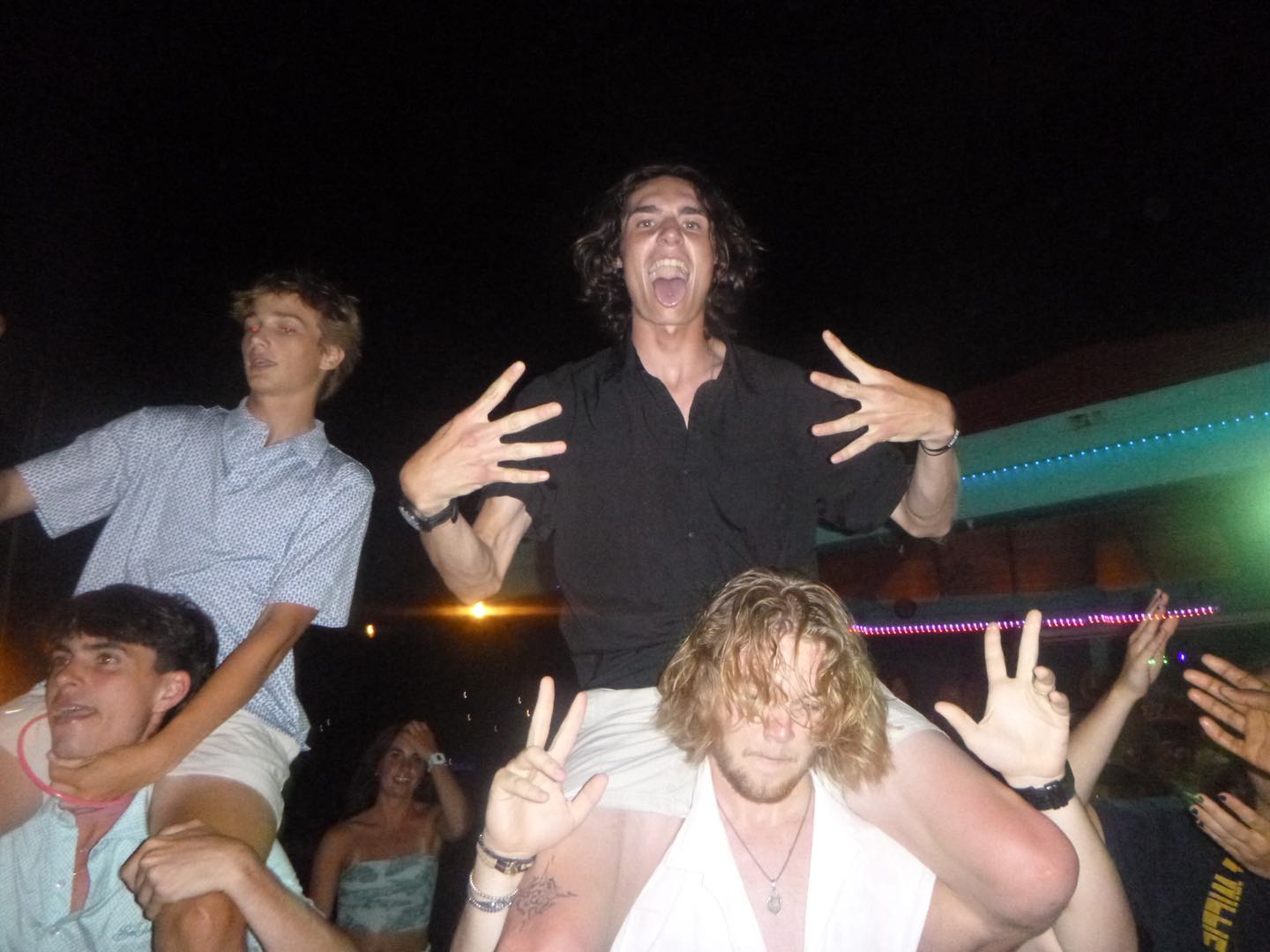 We then took Nacho out to anchor here and made our way down to the most insane BBQ rager of all time after our nightly squeeze. Tonight’s squeeze talked about our most meaningful memories on the trip so far, which was quite beautiful if I do say so myself. After five whole years of coming to AQ, I FINALLY got to get food first at the BBQ, stay blessed. I would like to note that Lilly was by far the most prepared shippie in the fleet by bringing her own personal packet of ranch. That fuel fired us all up to spread our fire to the dance floor, where we took over. In particular, Aggie and I were nominated for the Soulja Boy competition, where I walked off the stage with the coolest victory t-shirt ever seen. We continued to dance and eventually did limbo, where Tyler and Jaden borderline injured themselves, but luckily enough, we DMs are in tip-top physical shape after many swim tests. Once we had only a little fuel left in the tank, we began mingling with other boats before getting dinghied back to home sweet Nacho.